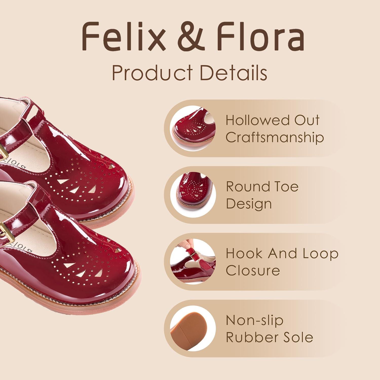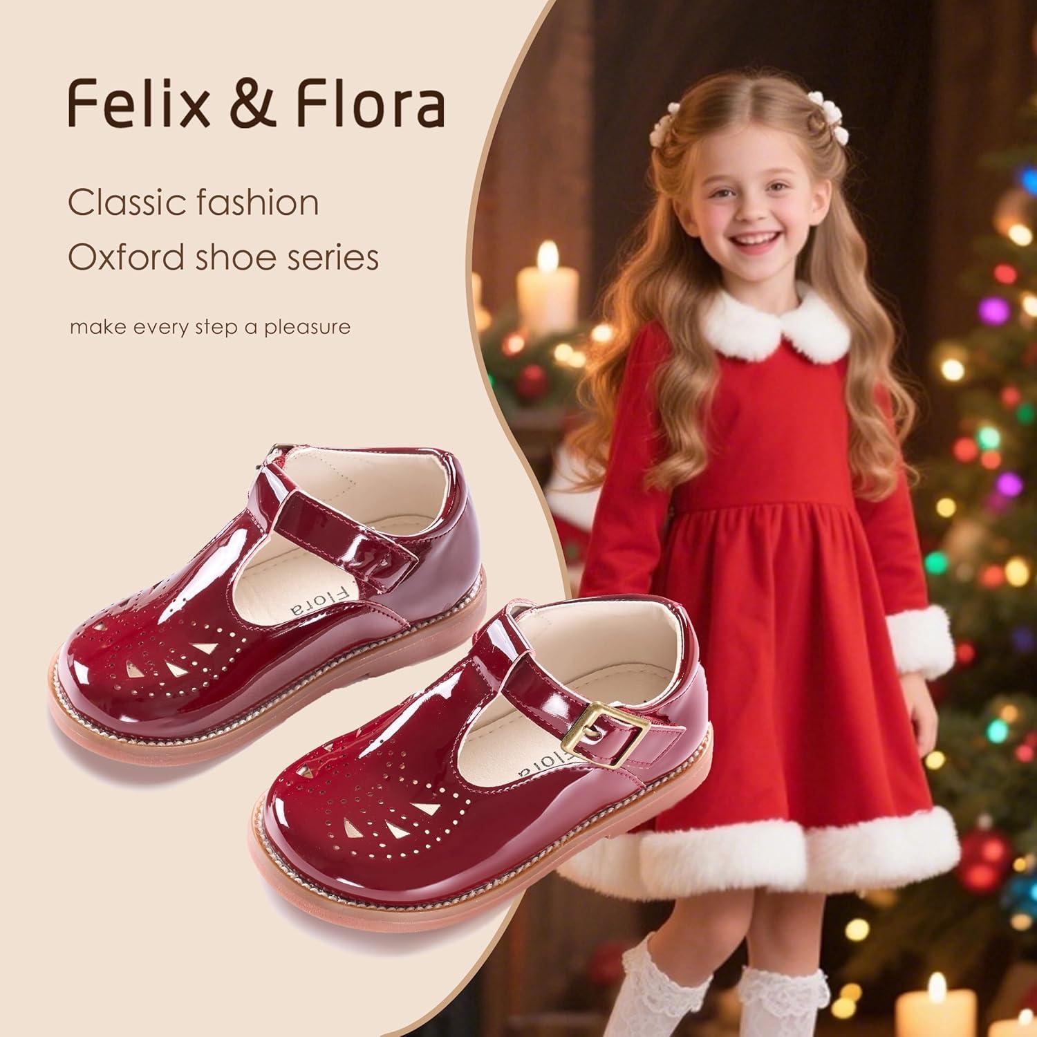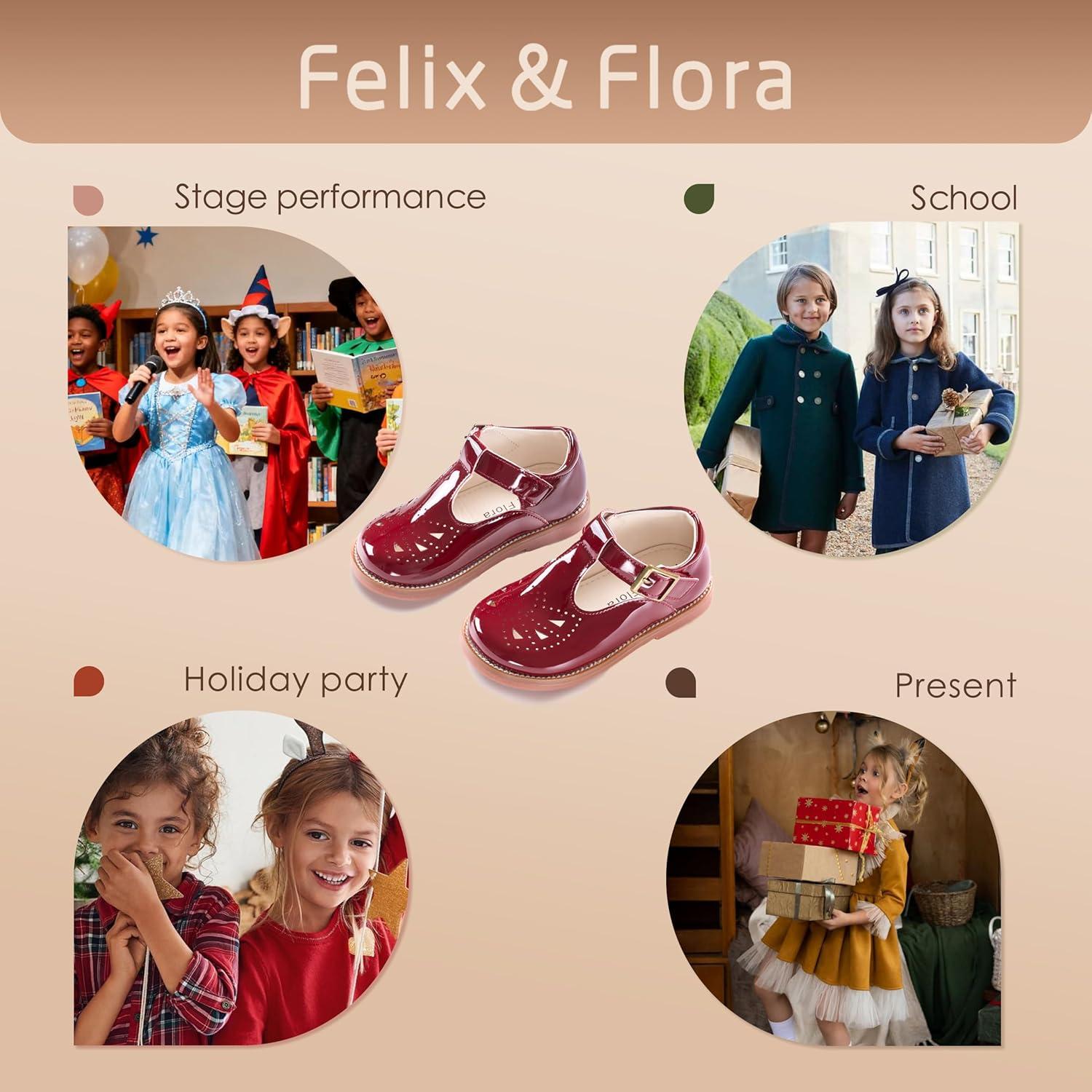 Felix & Flora Toddler Little Girl Mary Jane Dress Shoes – Ballet Flats for Easter Flower Girl Party School Shoes.(B345-burgundy)