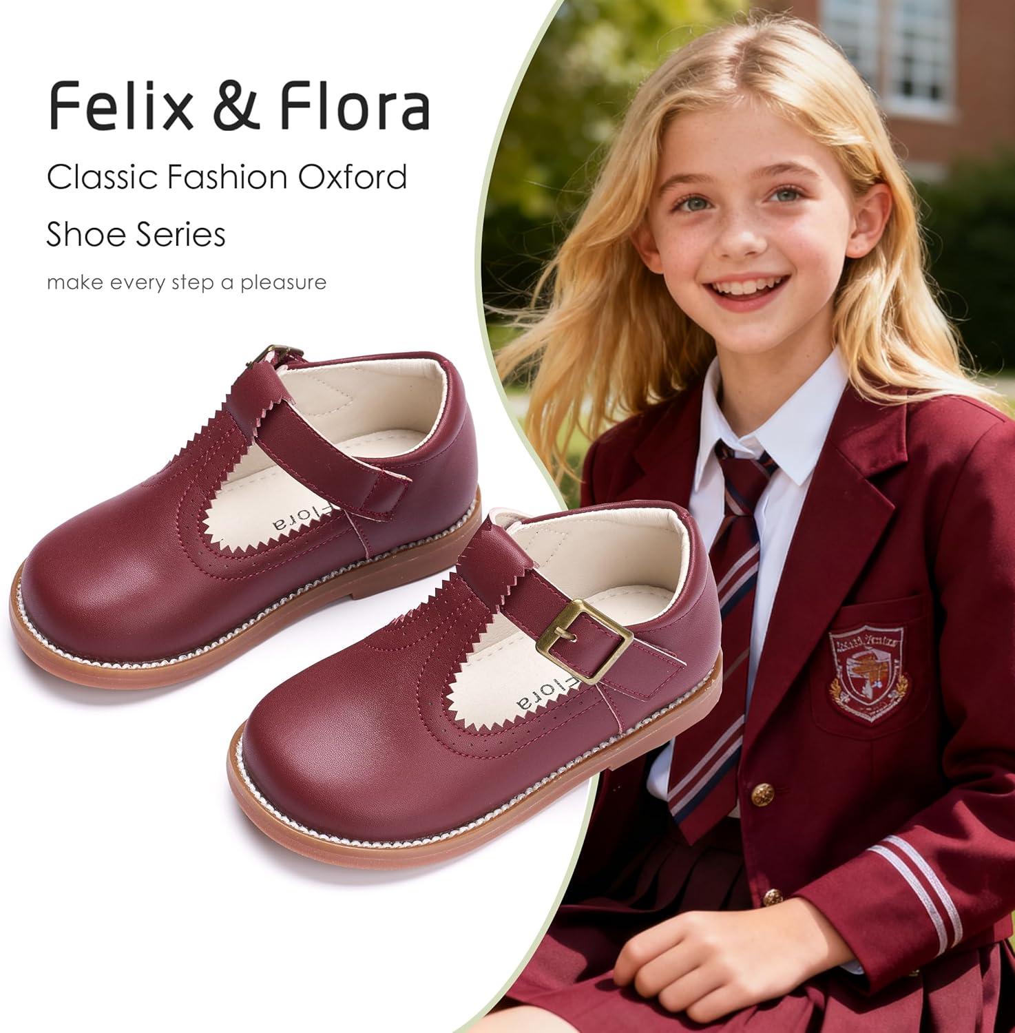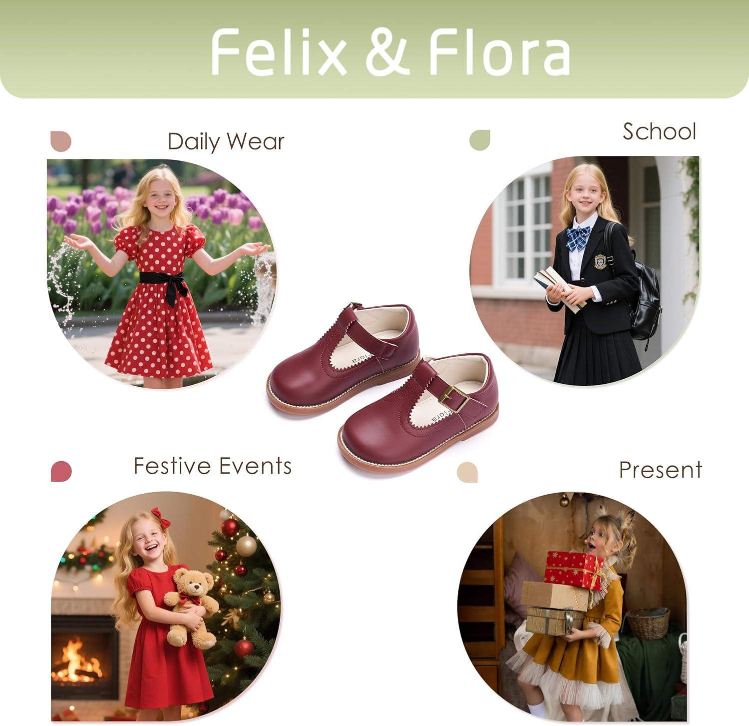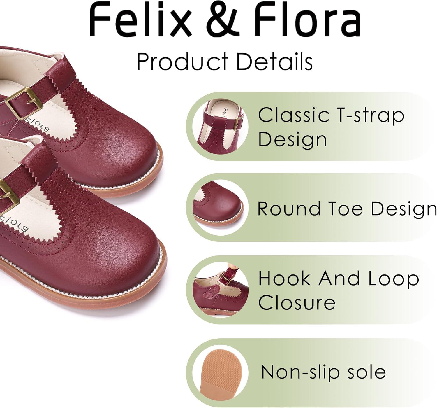 Felix & Flora Toddler Little Girl Mary Jane Dress Shoes – Ballet Flats for Easter Flower Girl Party School Shoes.(B348-burgundy)