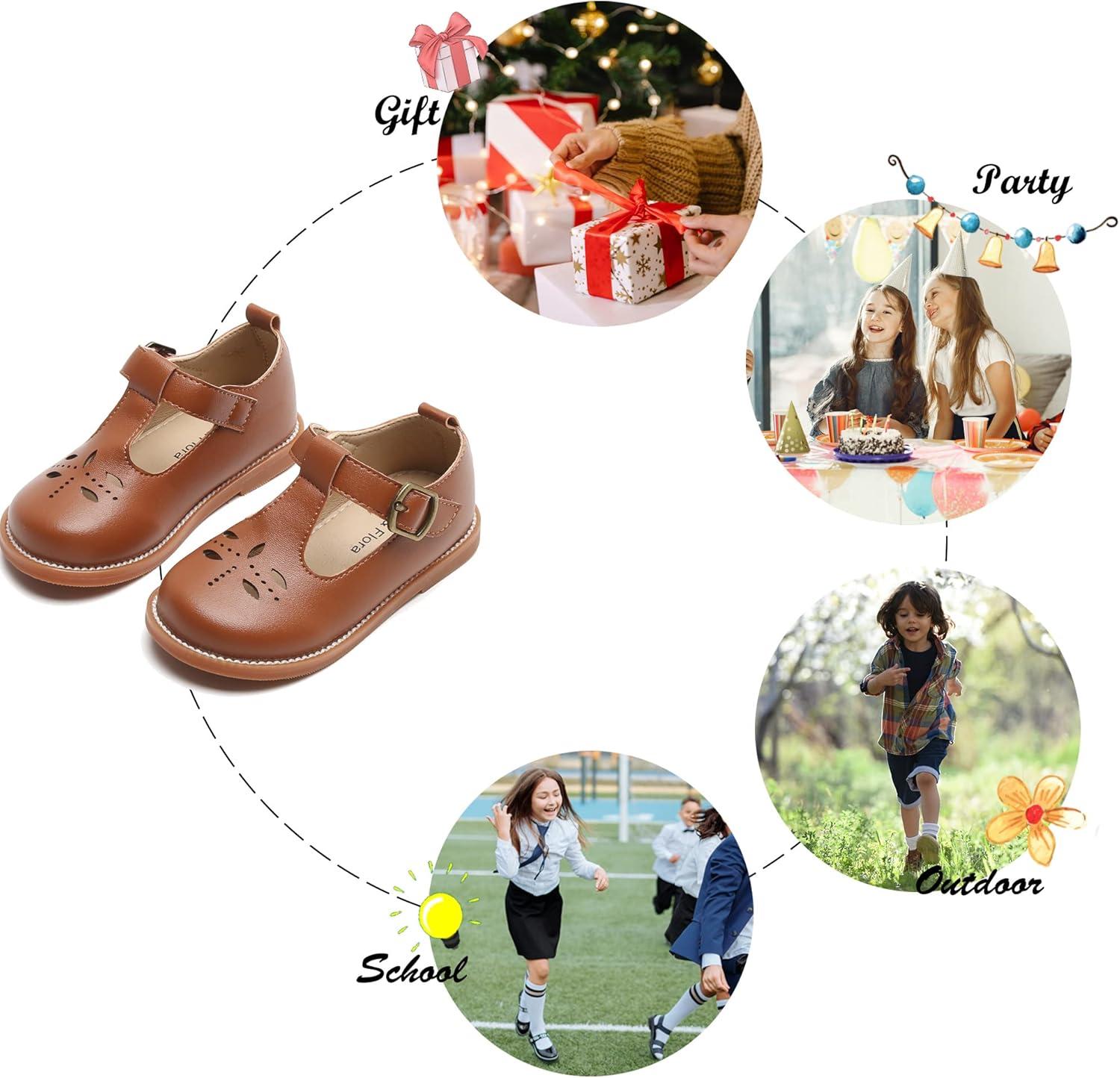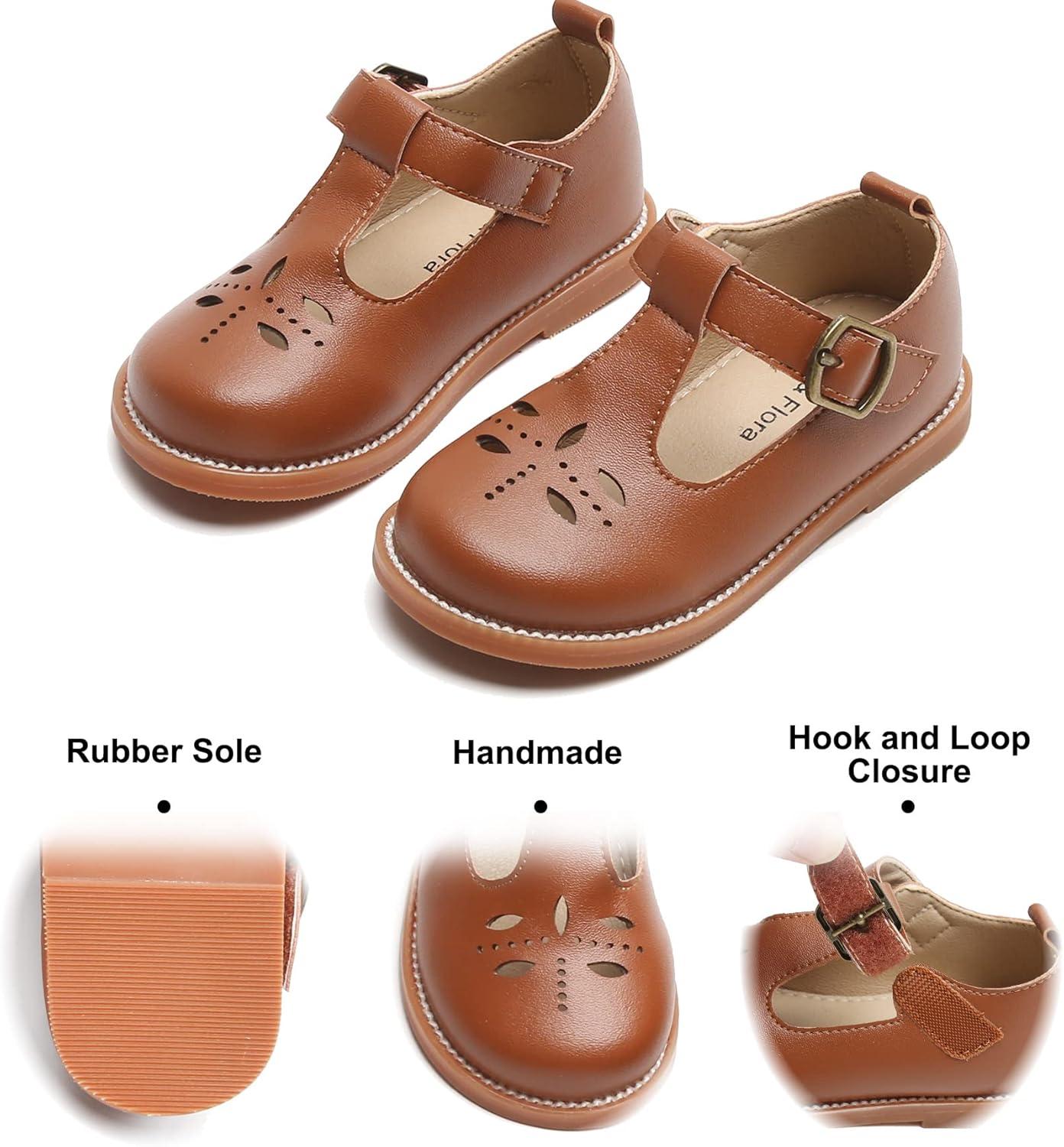 Felix & Flora Toddler Little Girl Mary Jane Dress Shoes – Ballet Flats for Easter Flower Girl Party School Shoes.(B395-brown)