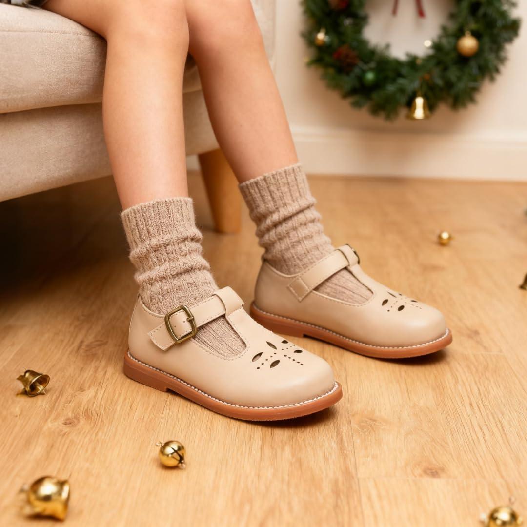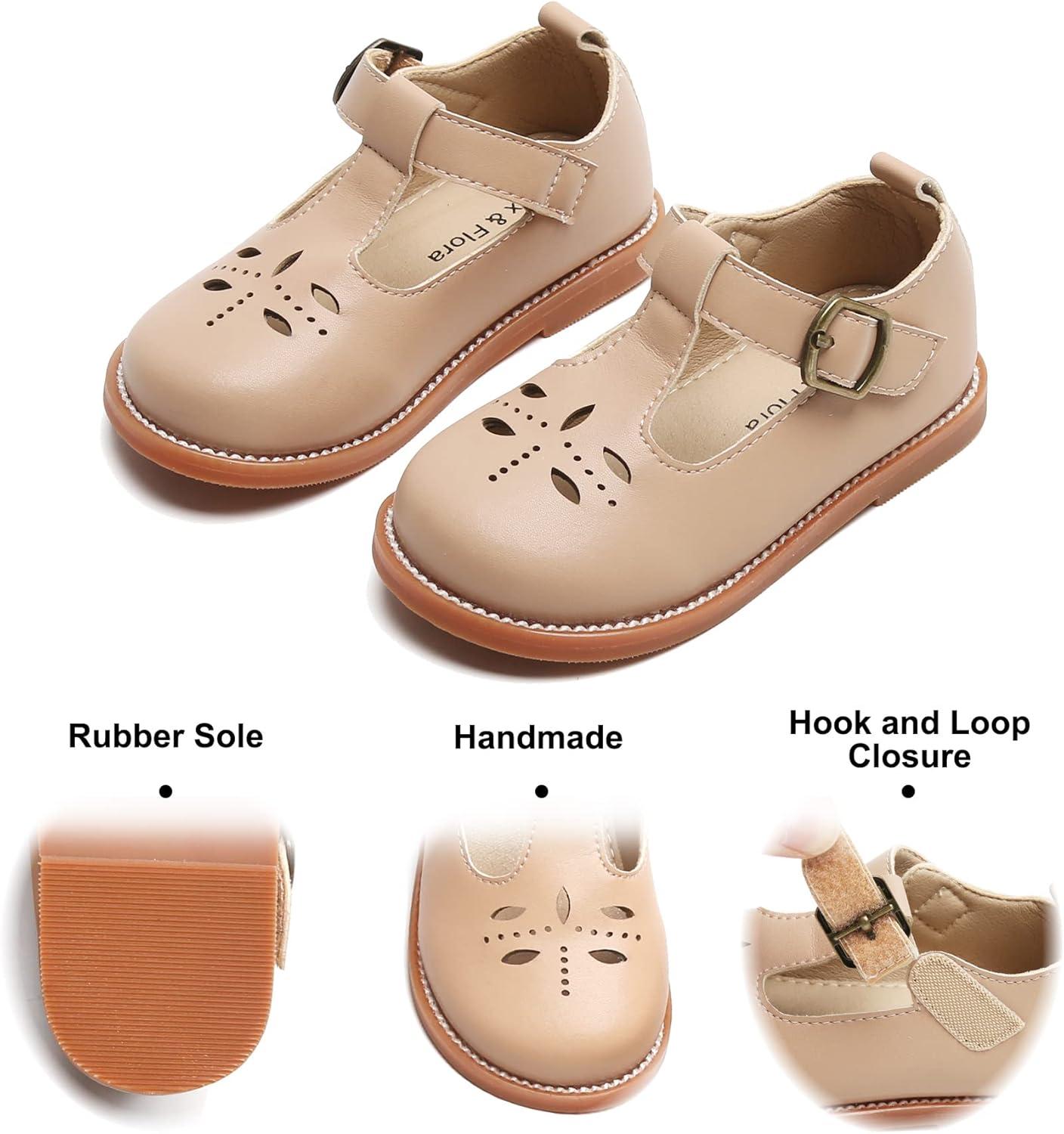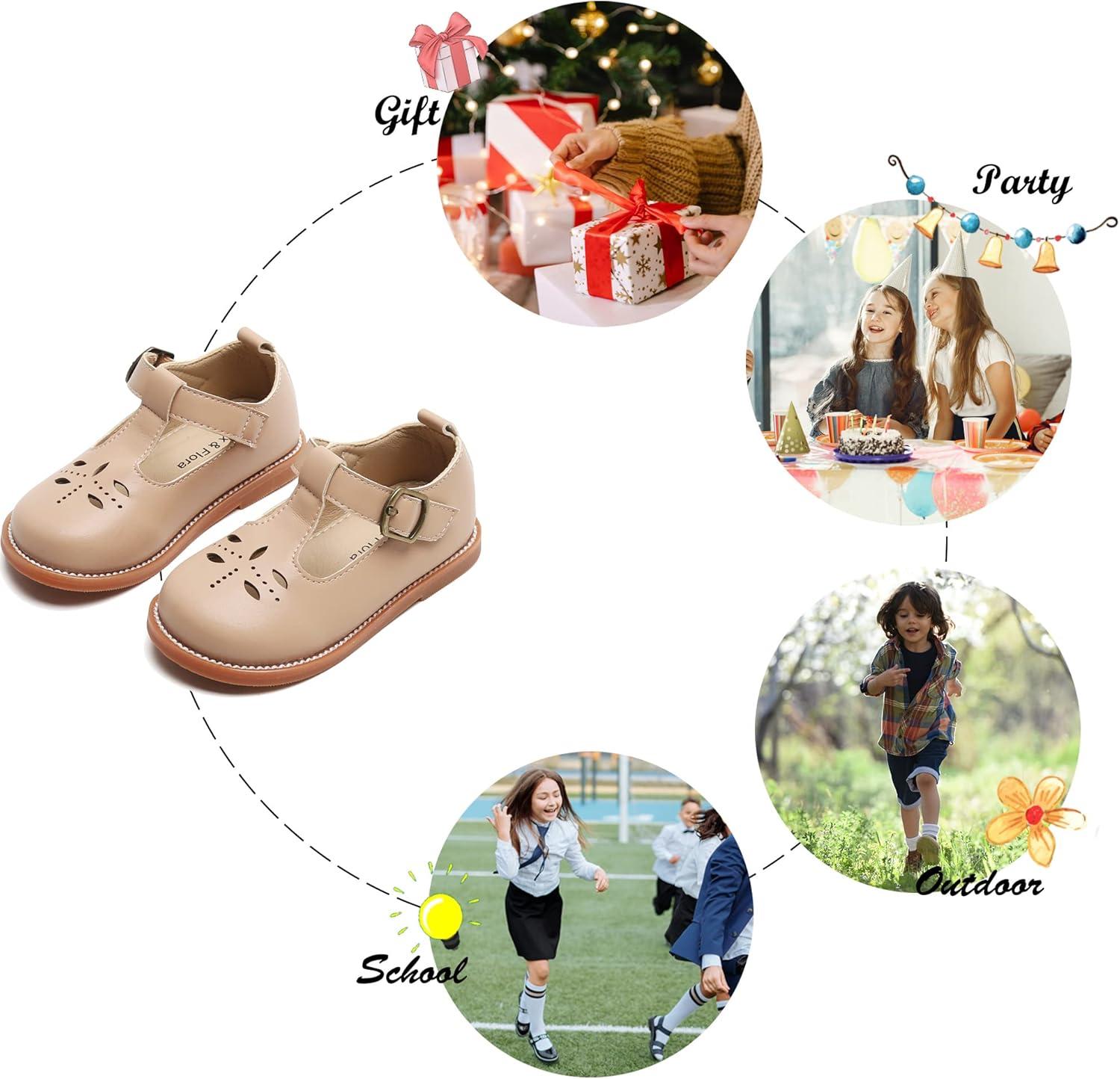 Felix & Flora Toddler Little Girl Mary Jane Dress Shoes – Ballet Flats for Easter Flower Girl Party School Shoes.(B395-nude)