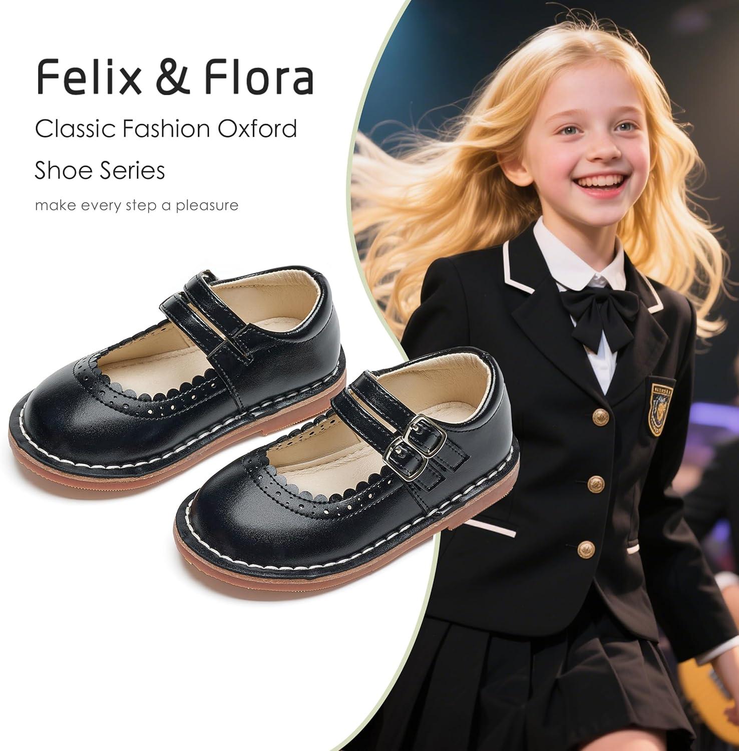 Felix & Flora Toddler Little Girl Mary Jane Dress Shoes – Ballet Flats for Easter Flower Girl Party School Shoes.(B430-black)