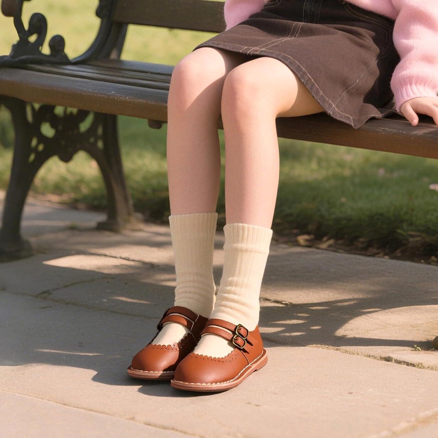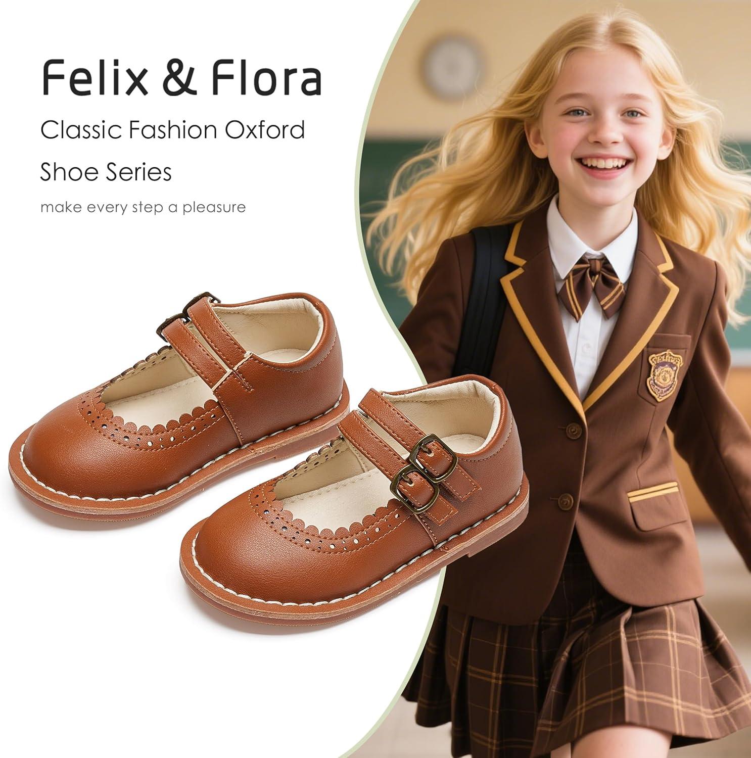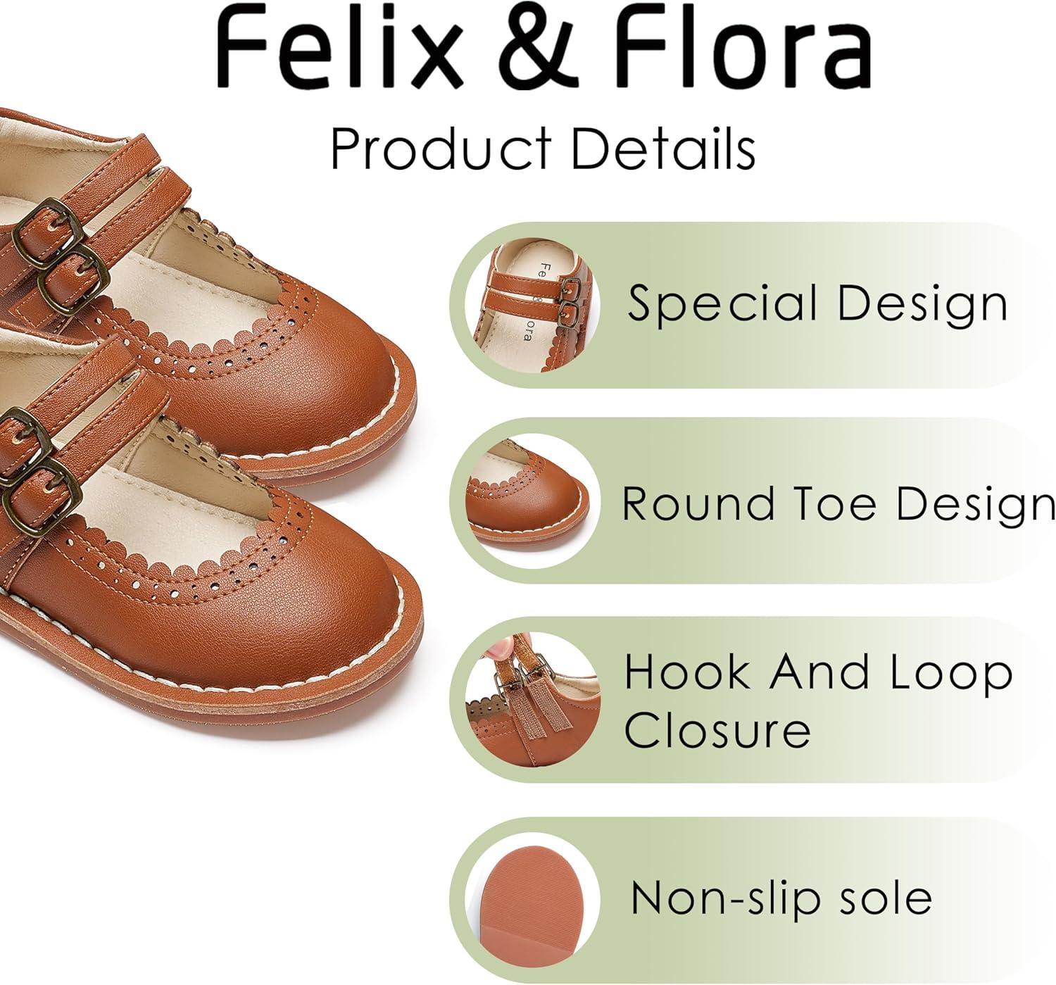 Felix & Flora Toddler Little Girl Mary Jane Dress Shoes – Ballet Flats for Easter Flower Girl Party School Shoes.(B430-brown)