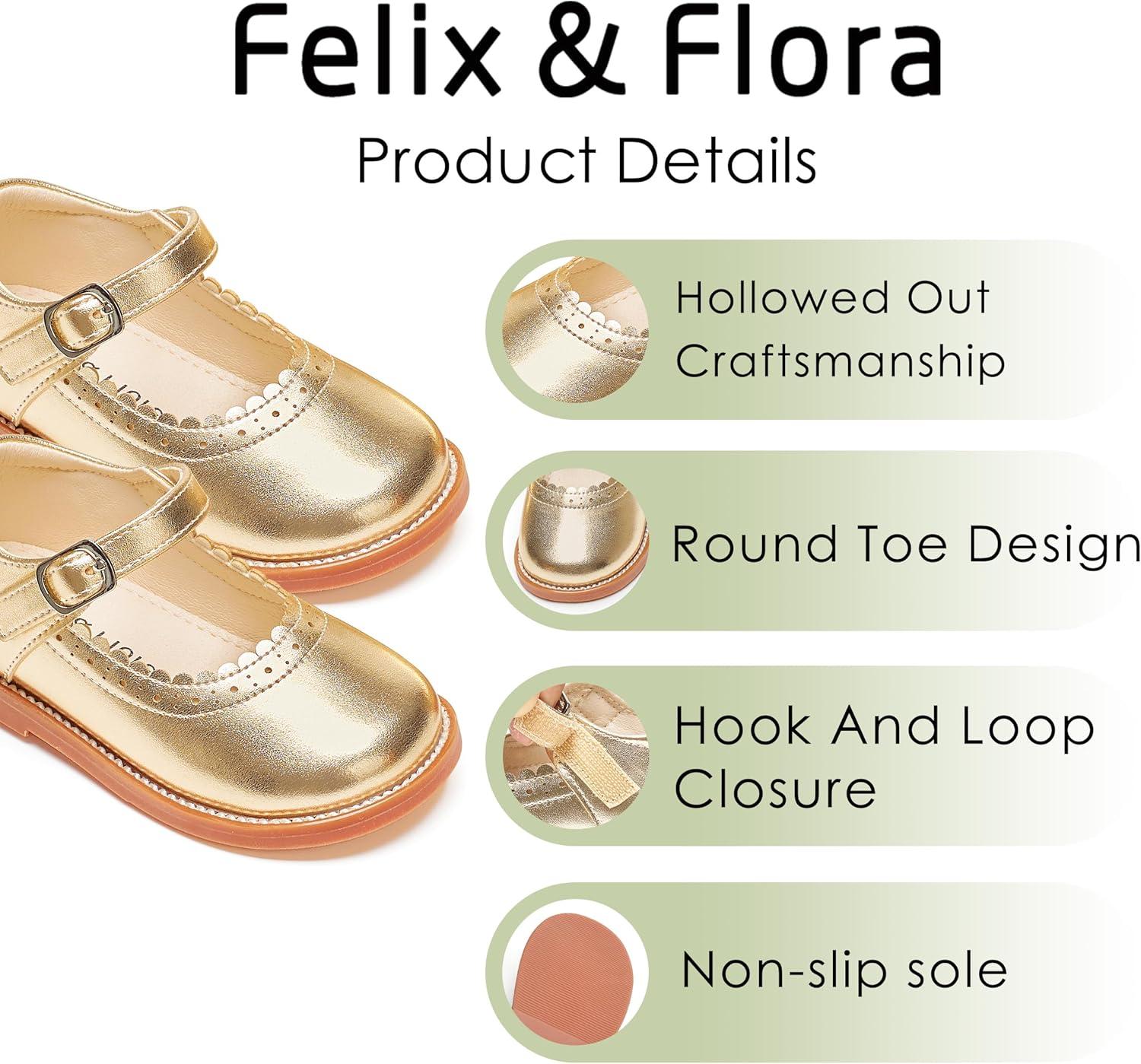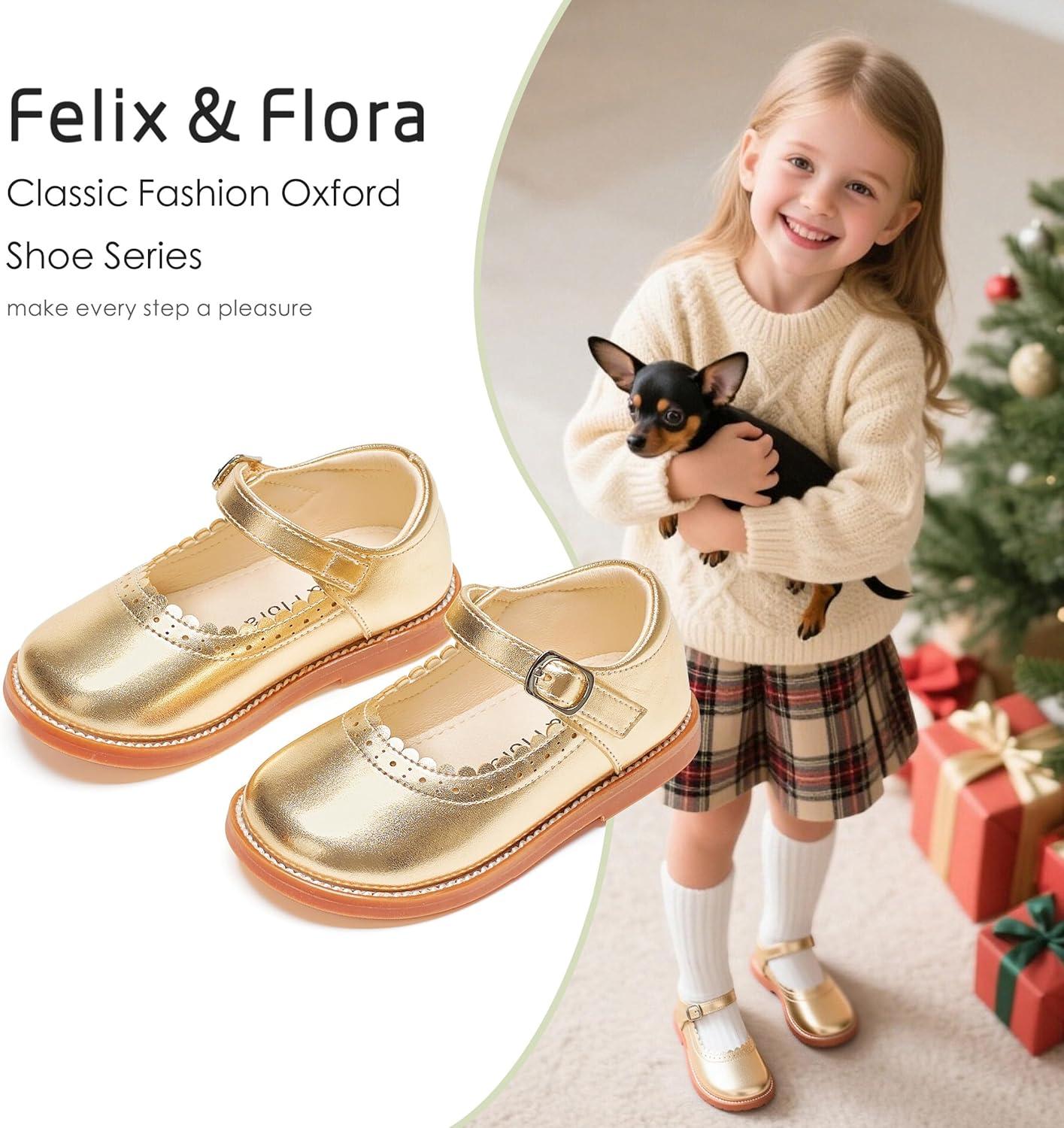 Felix & Flora Toddler Little Girl Mary Jane Dress Shoes – Ballet Flats for Easter Flower Girl Party School Shoes.(B431-bright Gold)