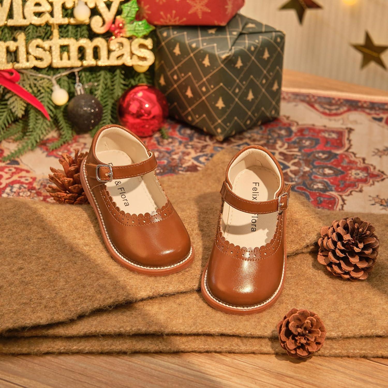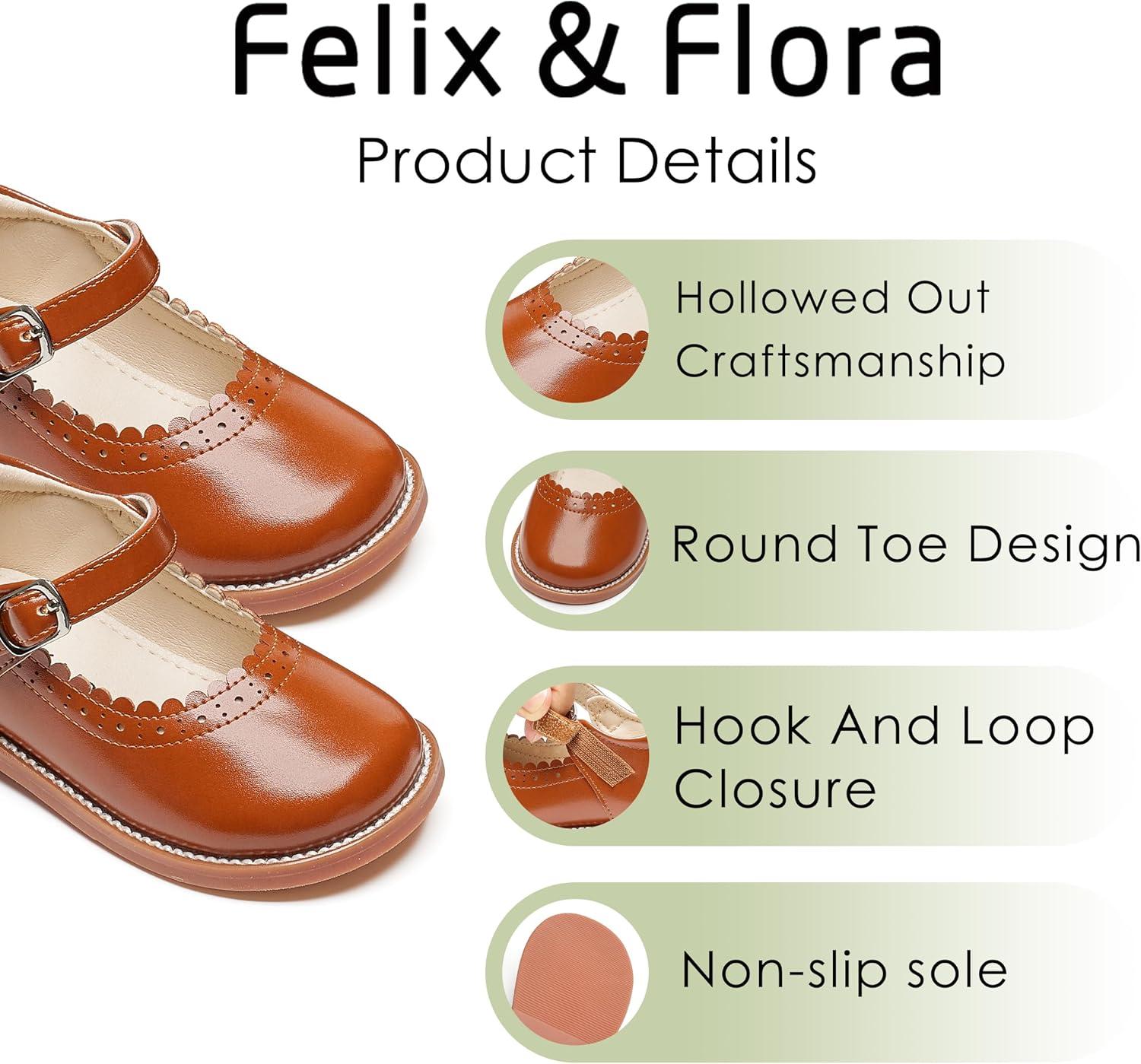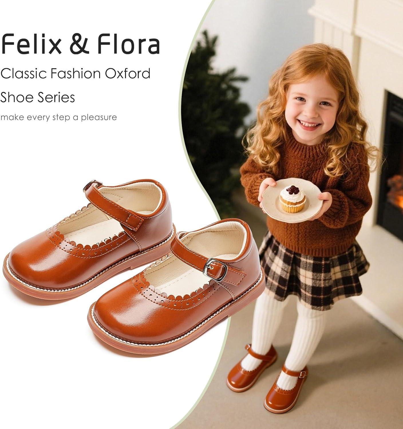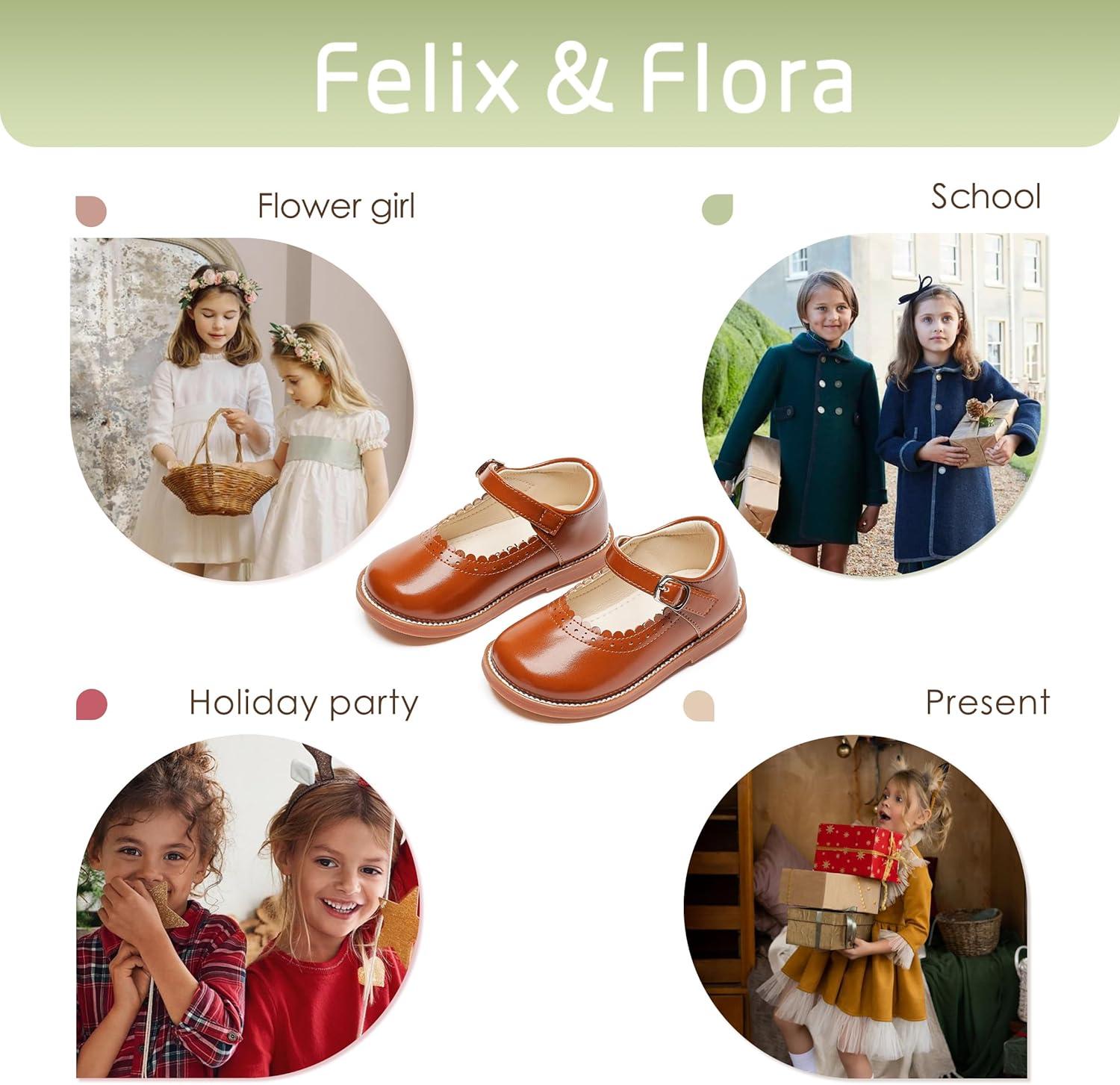 Felix & Flora Toddler Little Girl Mary Jane Dress Shoes – Ballet Flats for Easter Flower Girl Party School Shoes.(B431-brown)