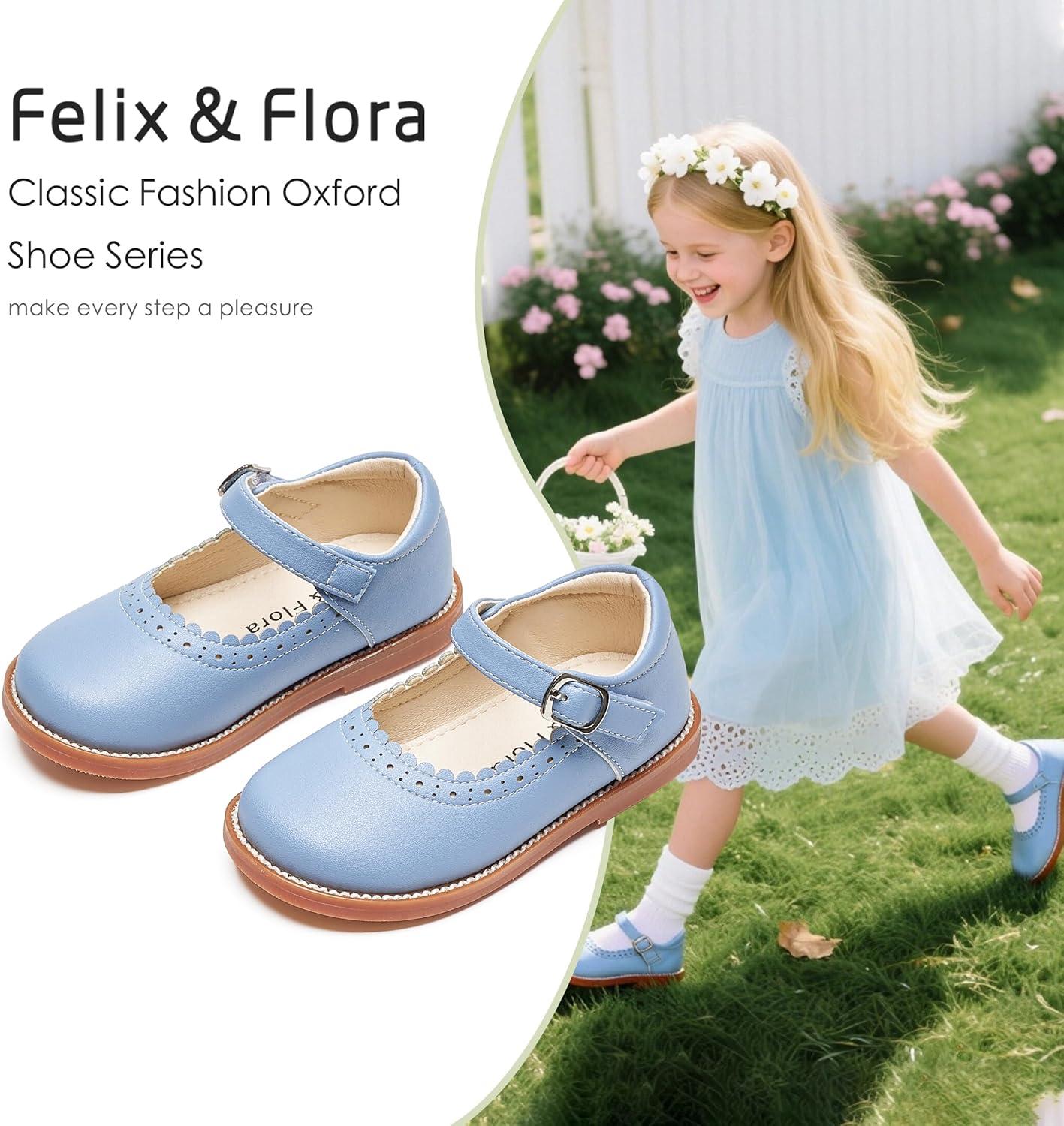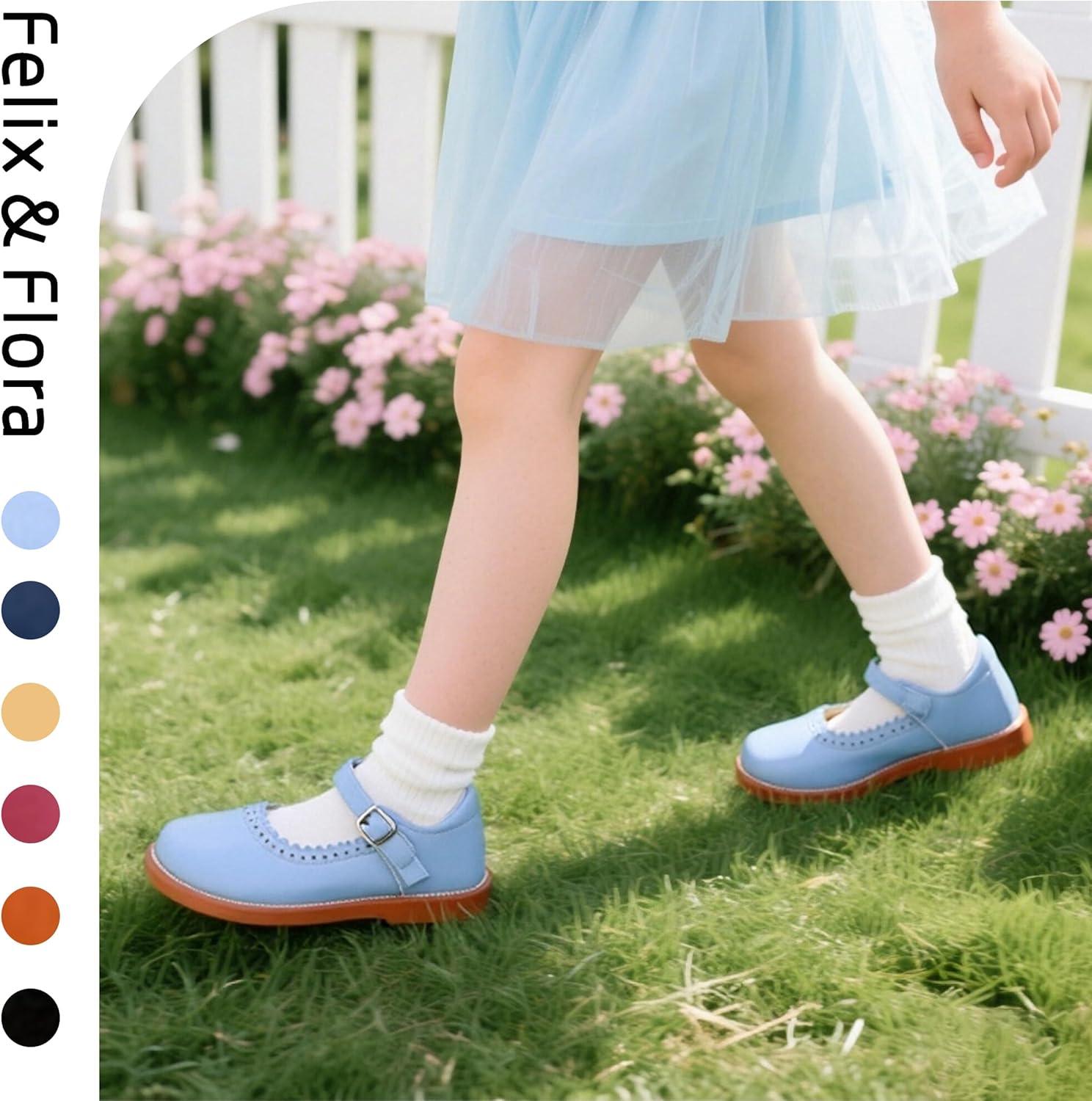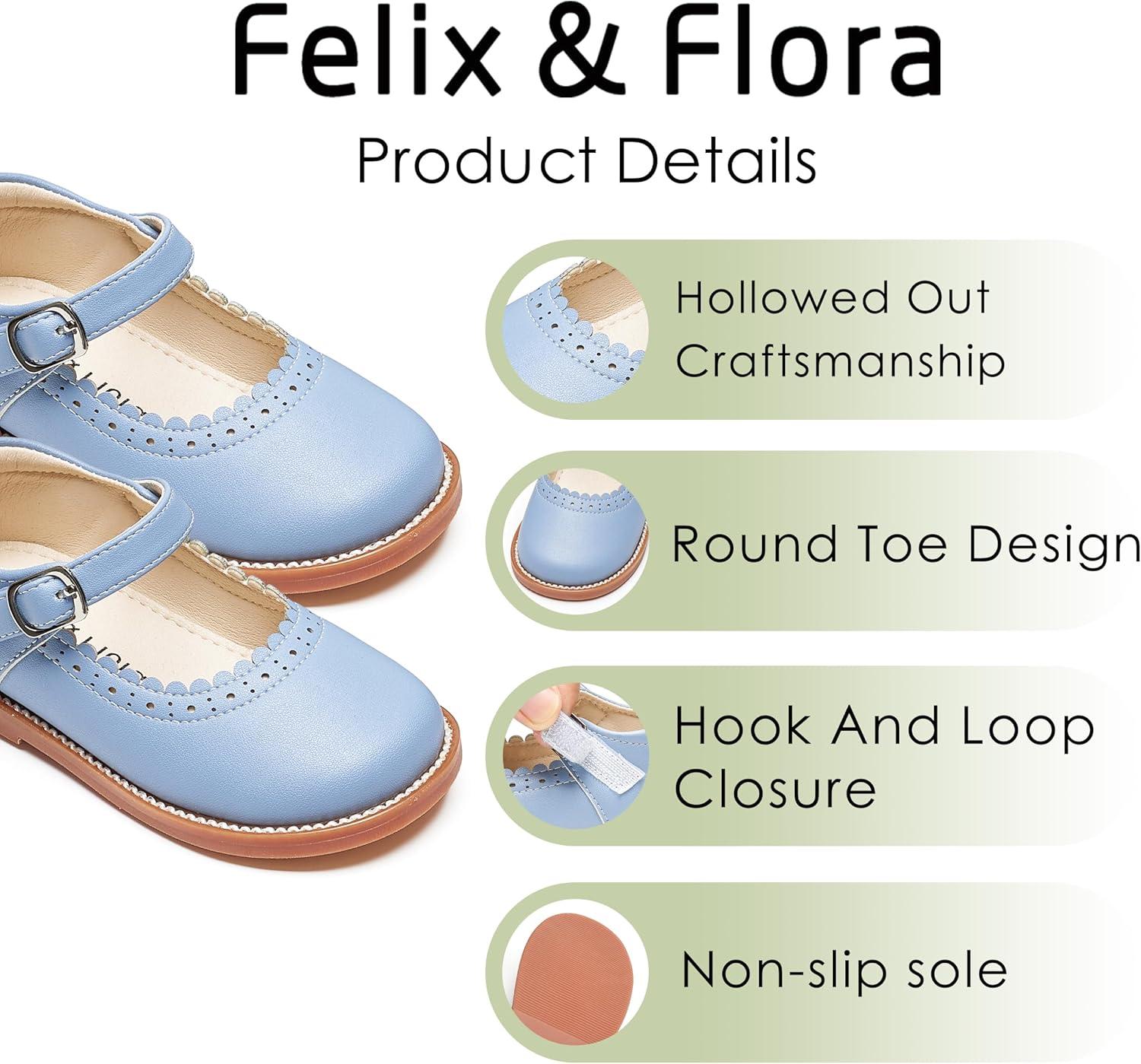 Felix & Flora Toddler Little Girl Mary Jane Dress Shoes – Ballet Flats for Easter Flower Girl Party School Shoes.(B431-light Blue)