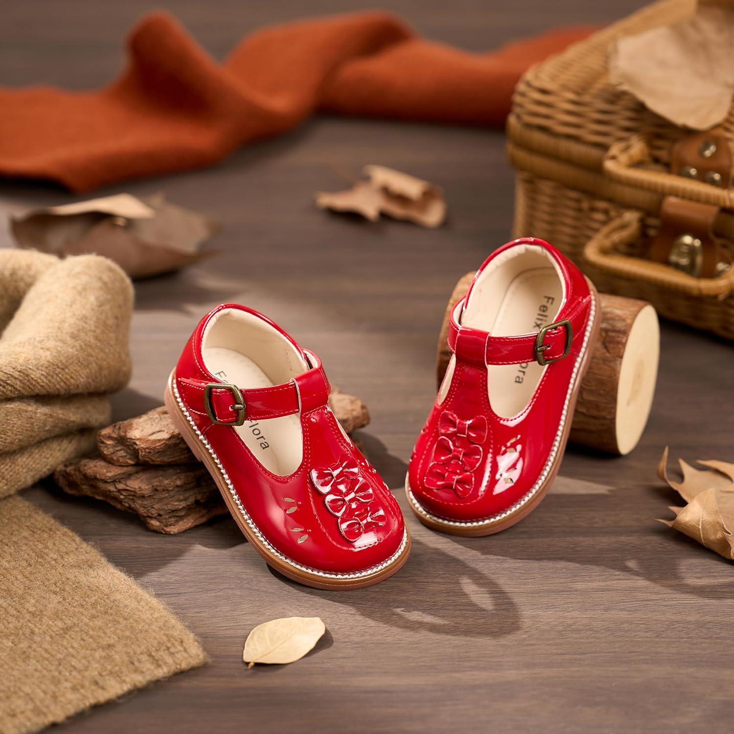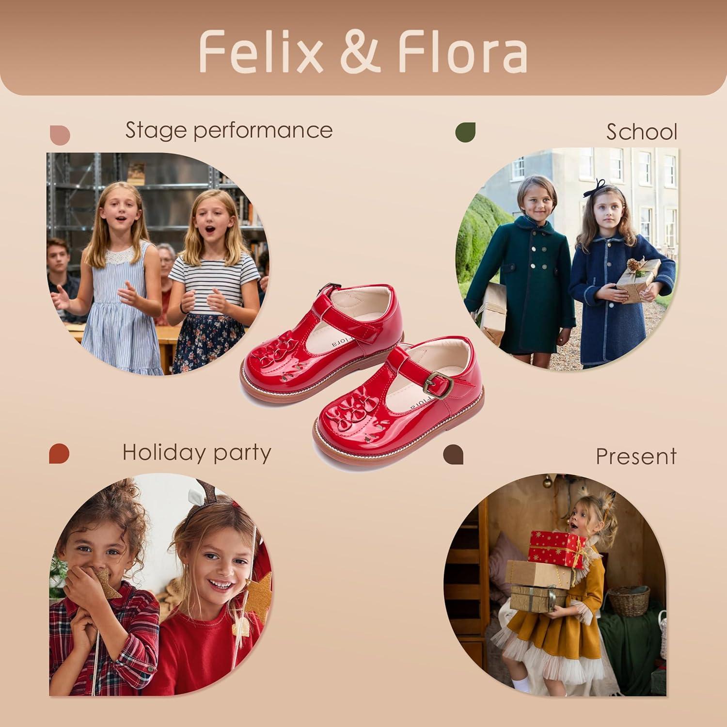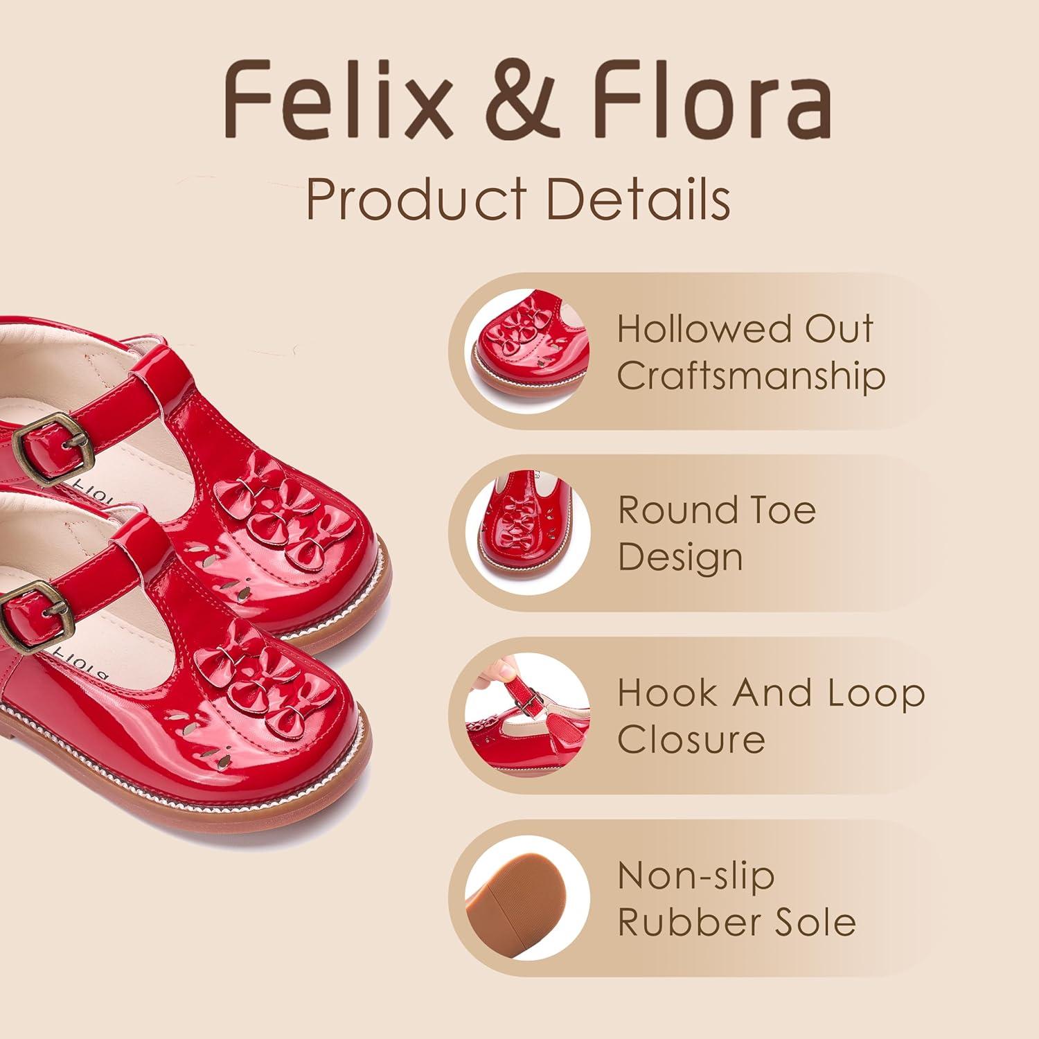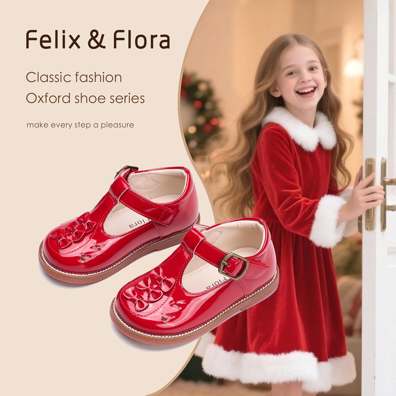 Felix & Flora Toddler Little Girl Mary Jane Dress Shoes – Ballet Flats for Easter Flower Girl Party School Shoes.(B438-pl Red)