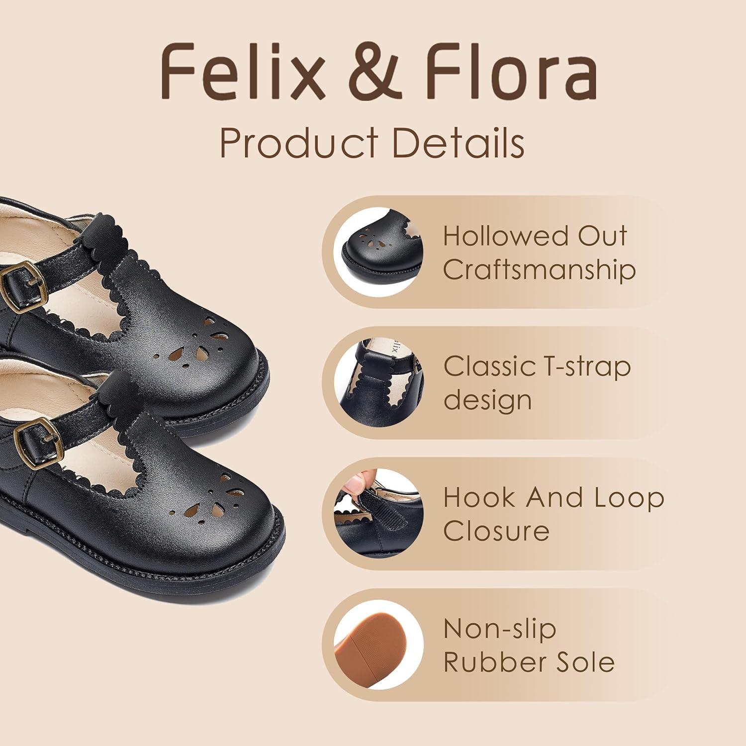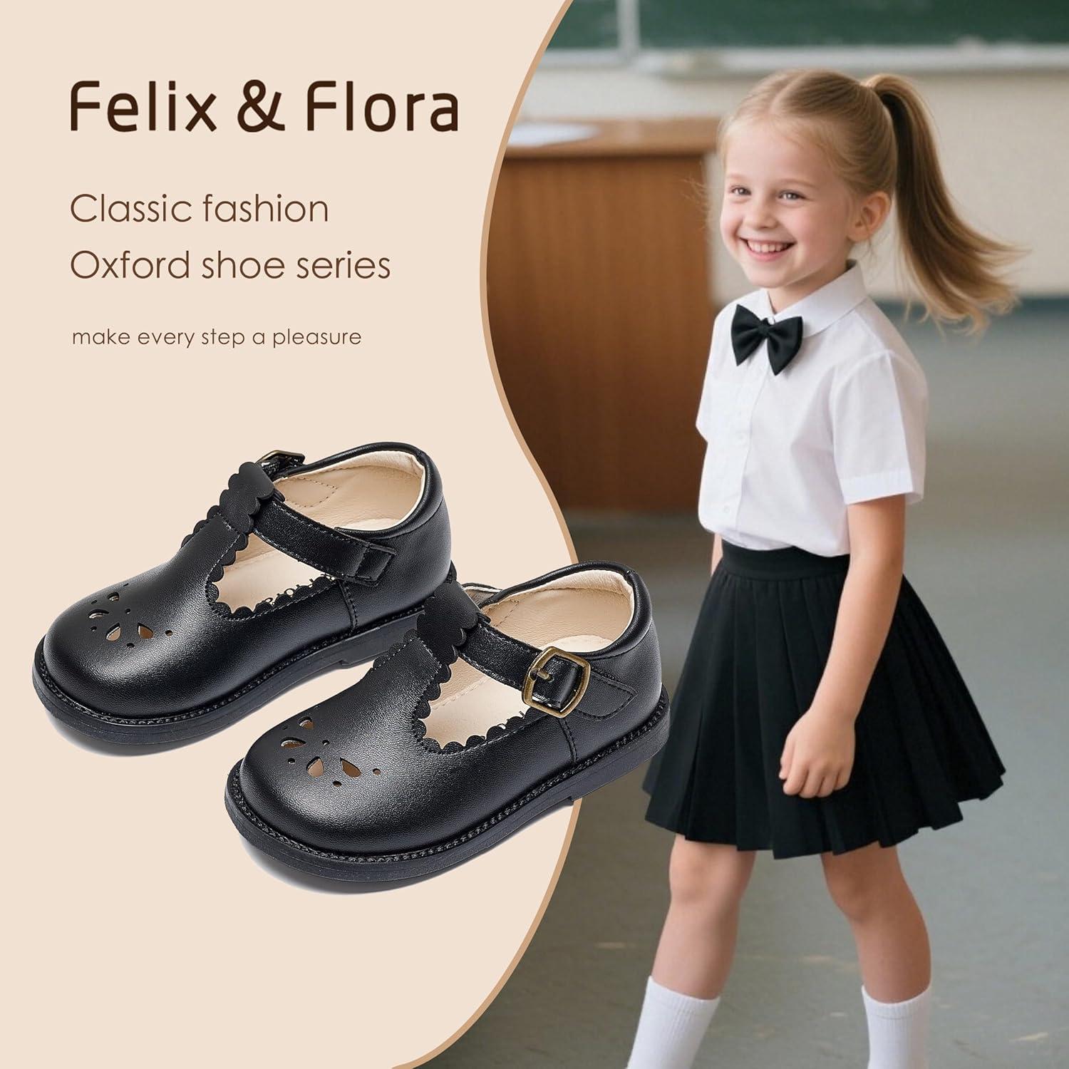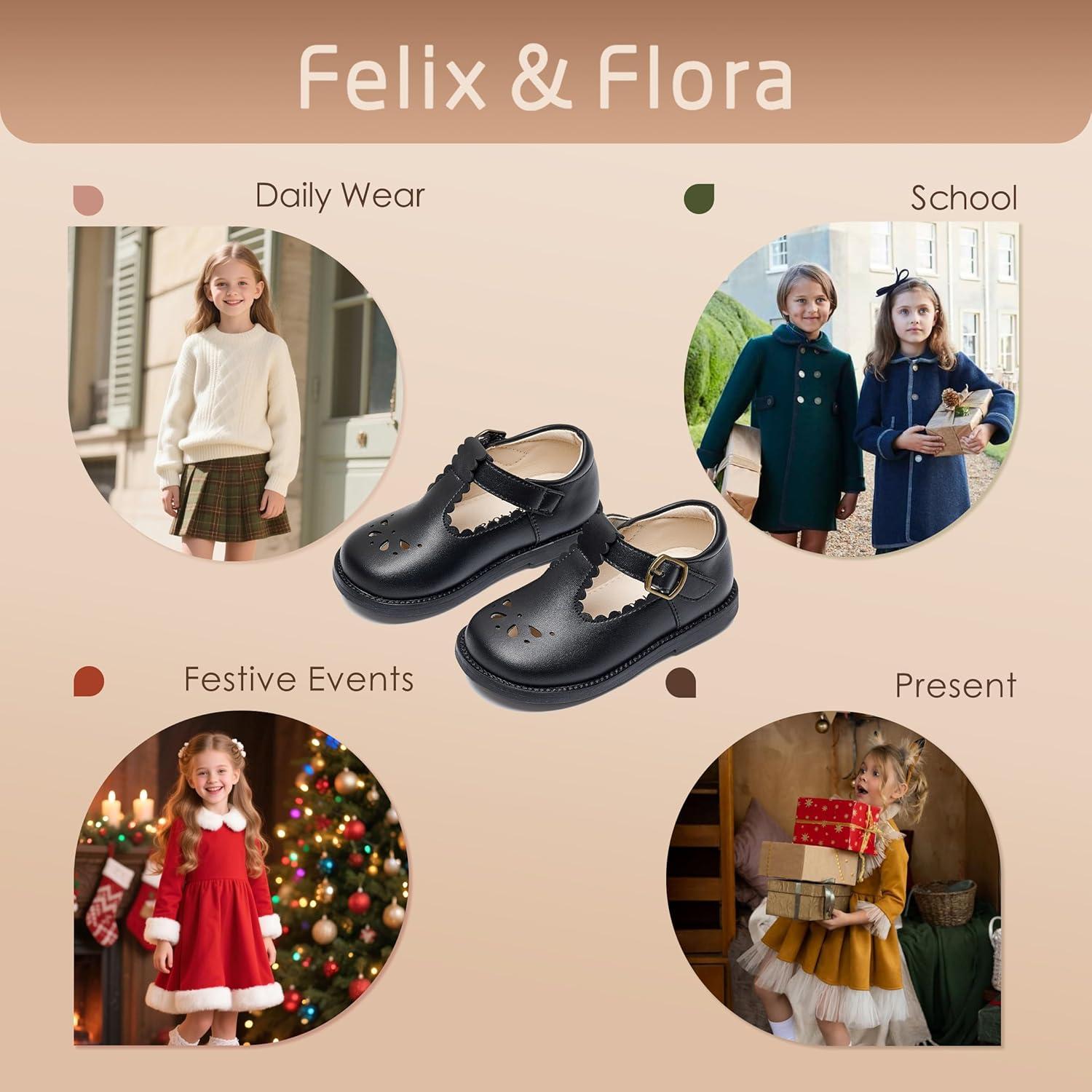Felix & Flora Toddler Little Girl Mary Jane Dress Shoes – Ballet Flats for Girl Party School Shoes(B366-all Black)