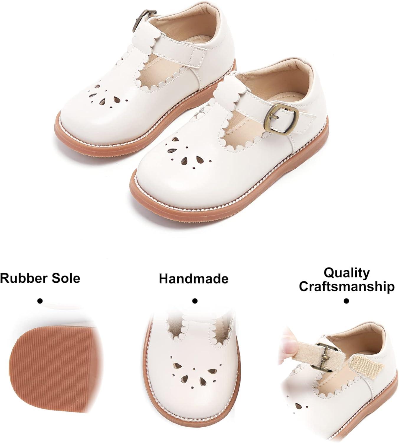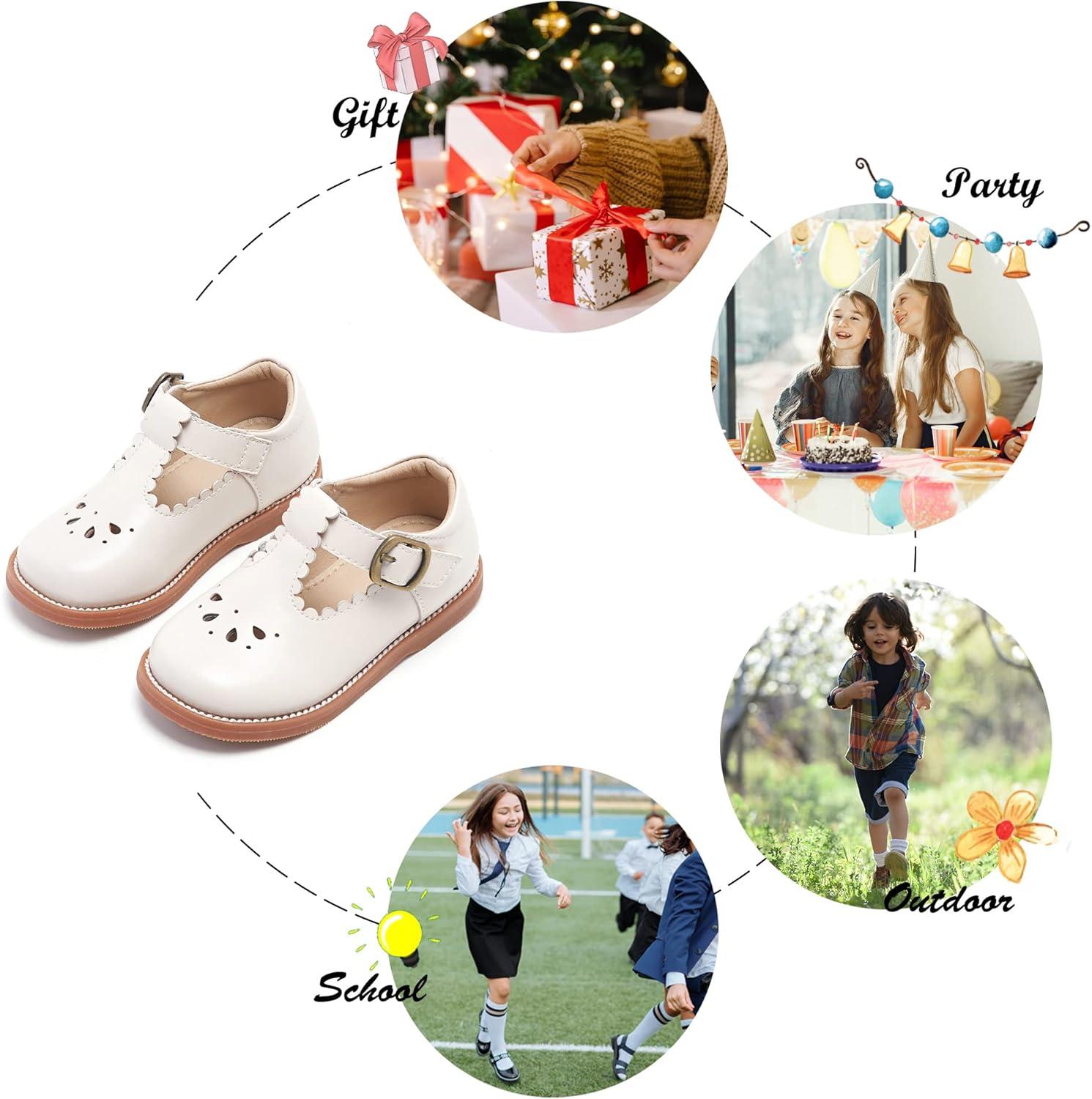 Felix & Flora Toddler Little Girl Mary Jane Dress Shoes – Ballet Flats for Girl Party School Shoes(B366-beige)