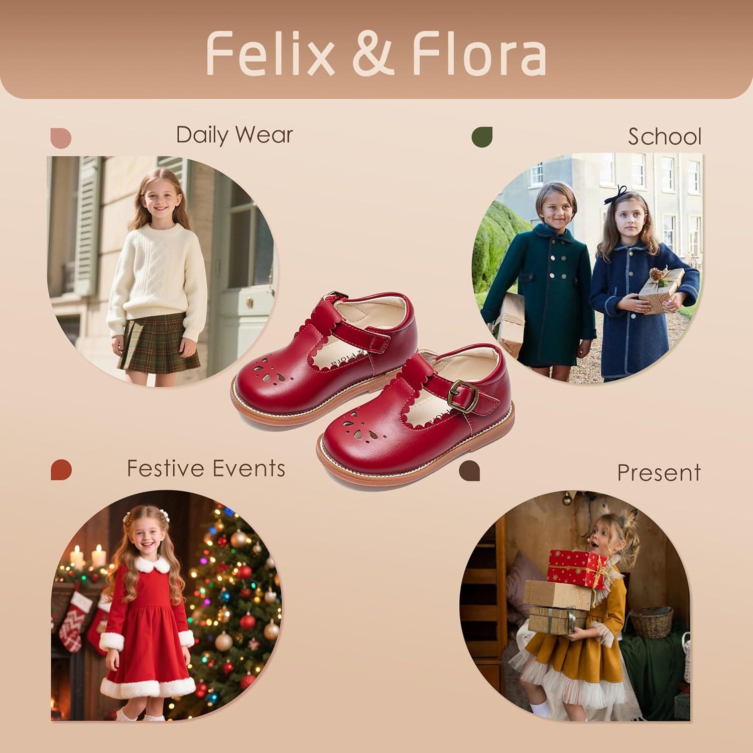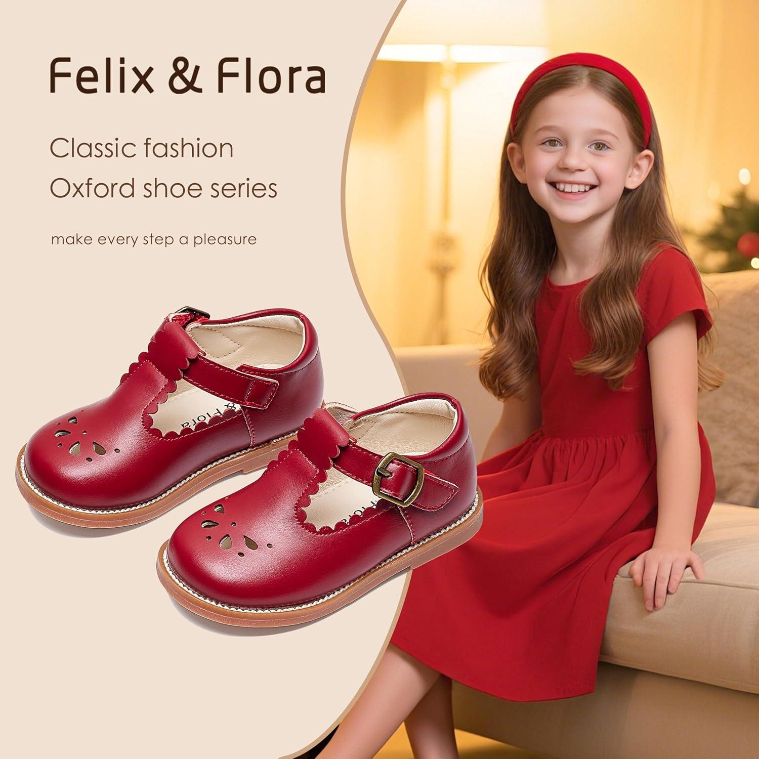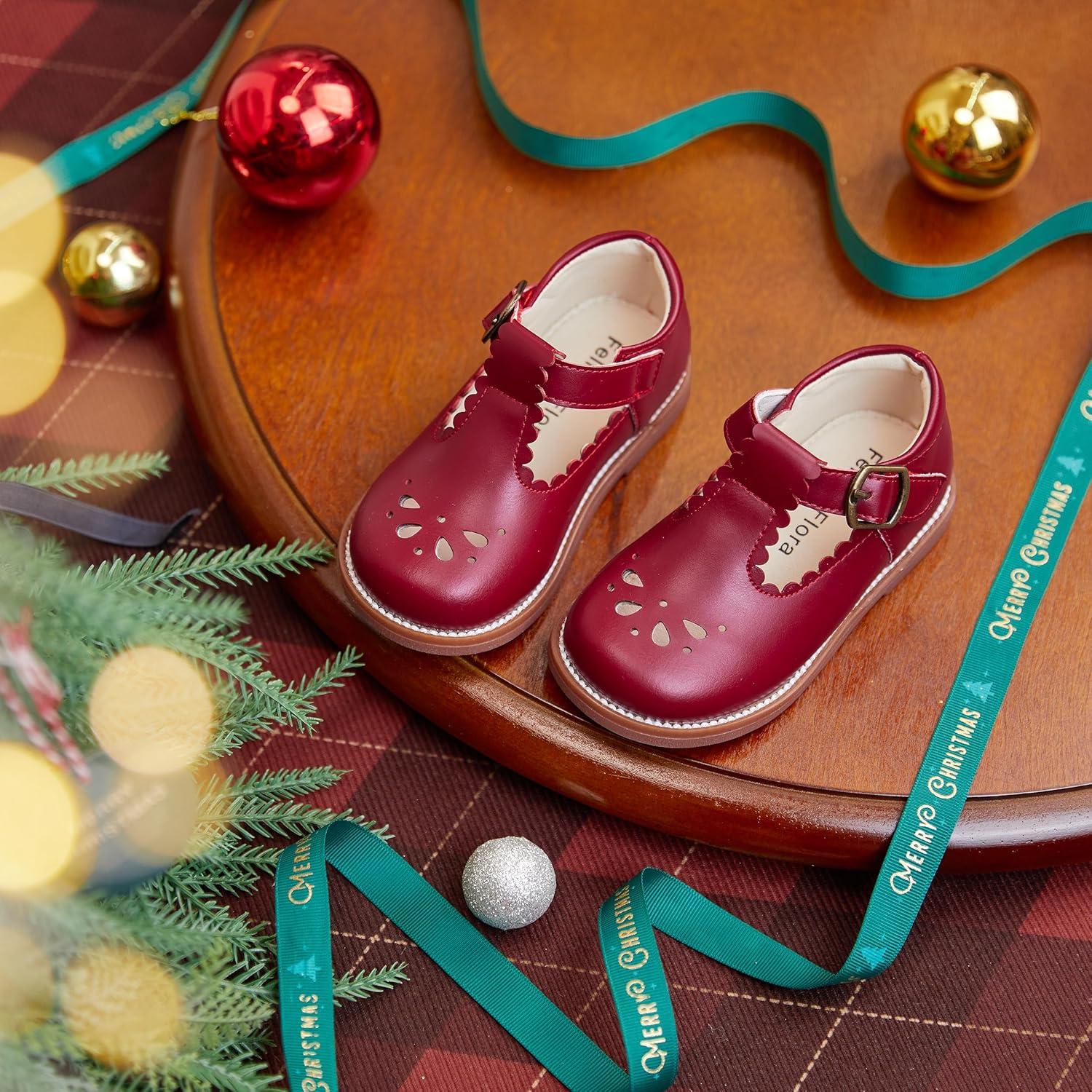 Felix & Flora Toddler Little Girl Mary Jane Dress Shoes – Ballet Flats for Girl Party School Shoes(B366-burgundy)