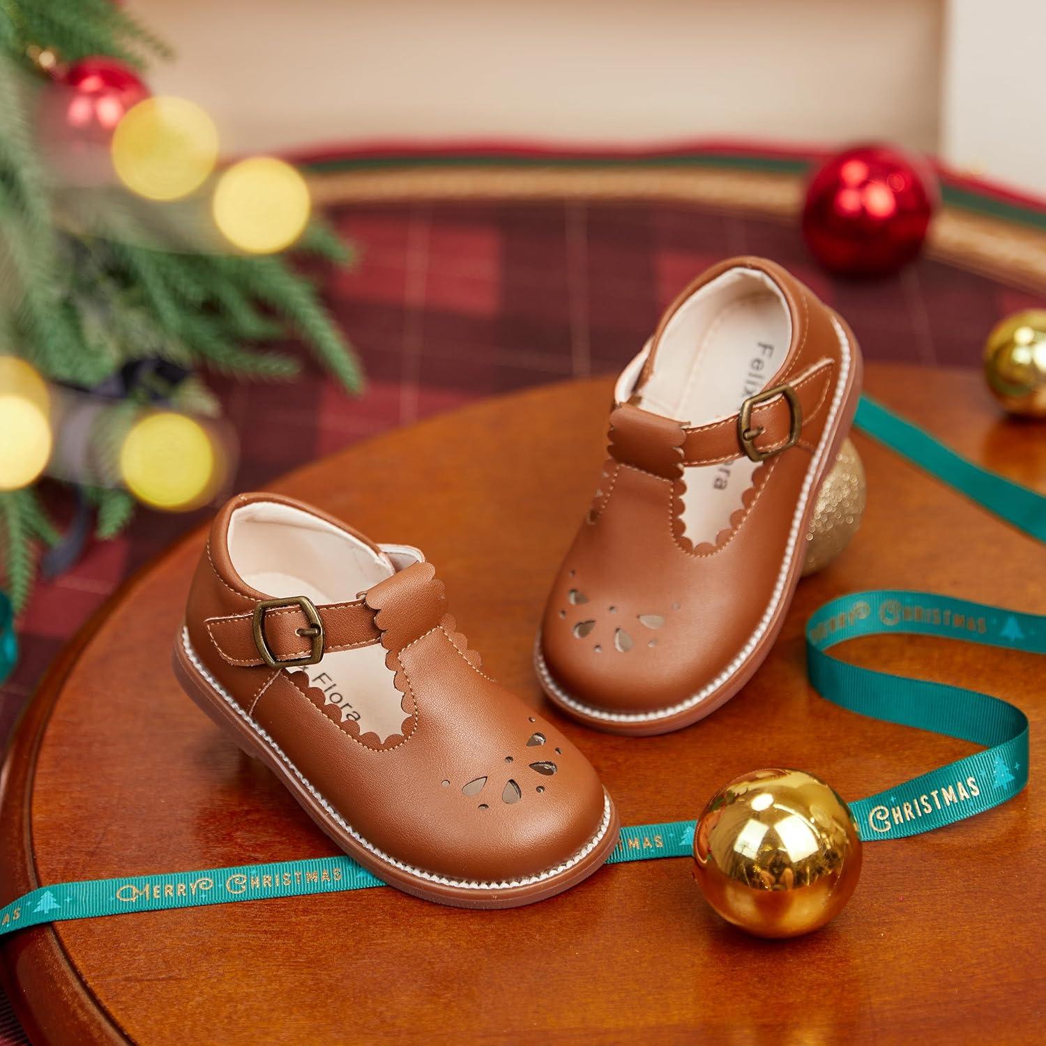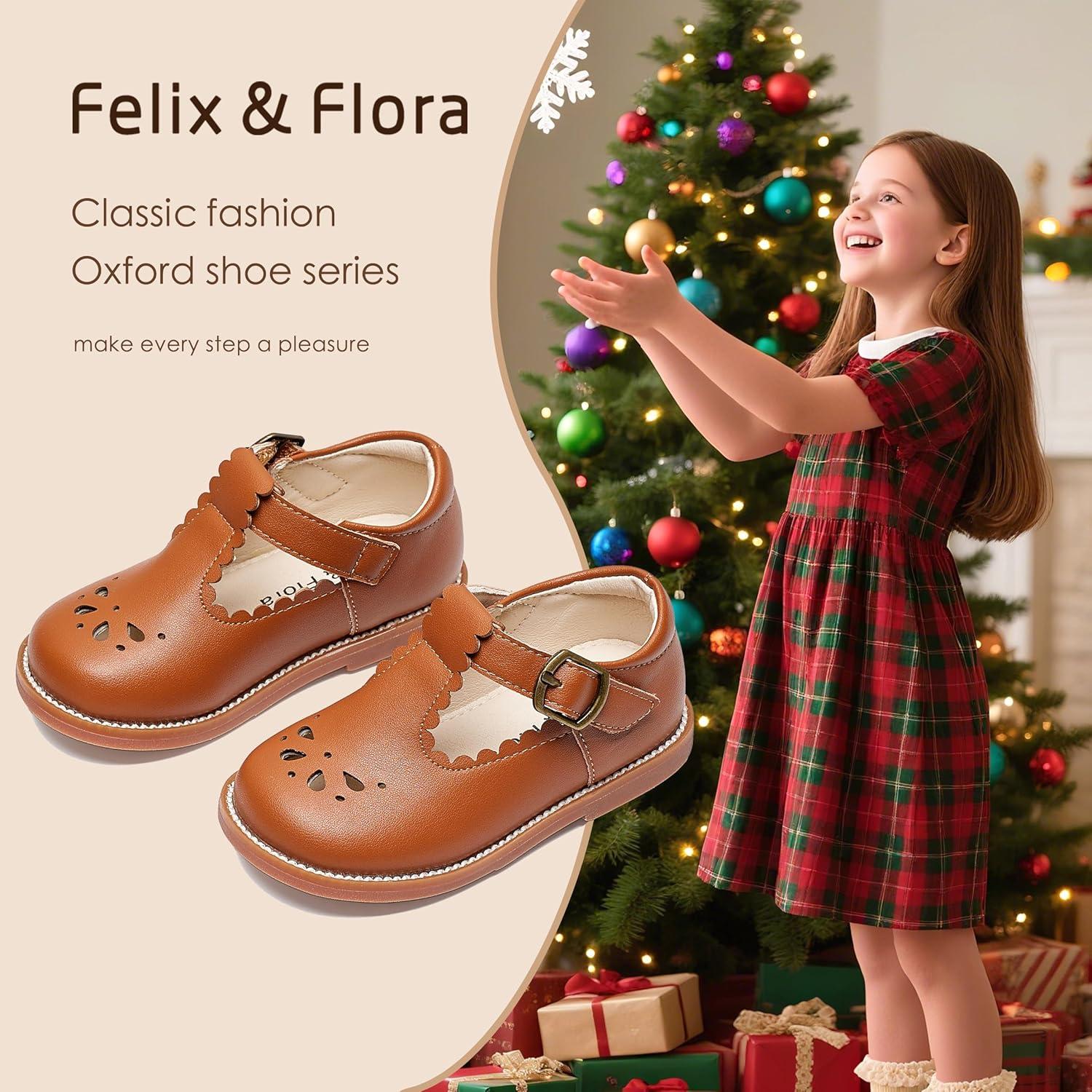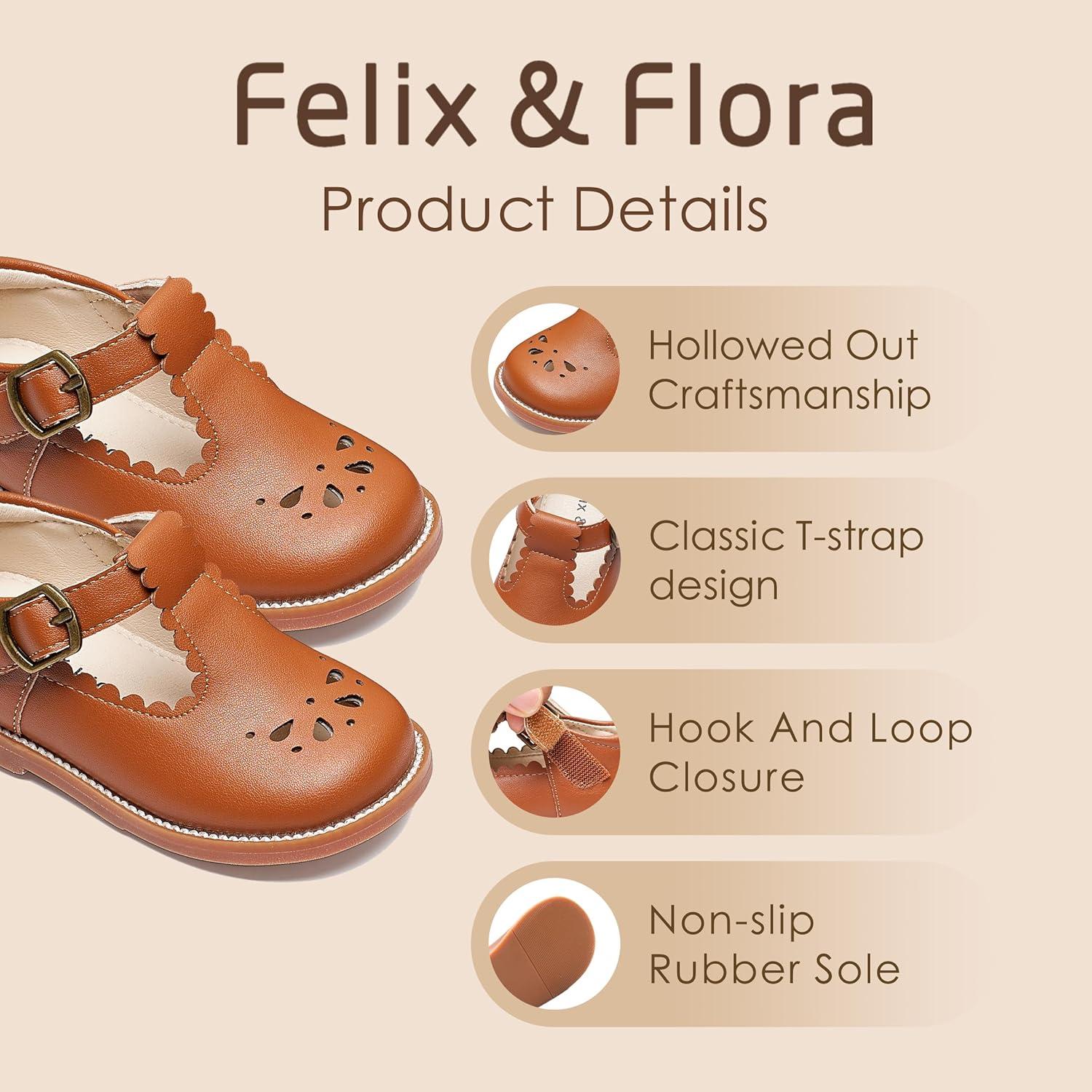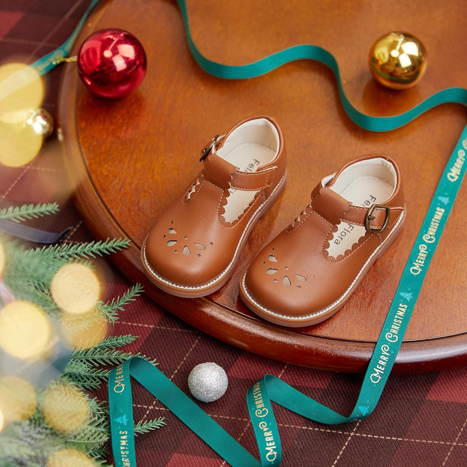Felix & Flora Toddler Little Girl Mary Jane Dress Shoes – Ballet Flats for Girl Party School Shoes(B366-coco Brown)