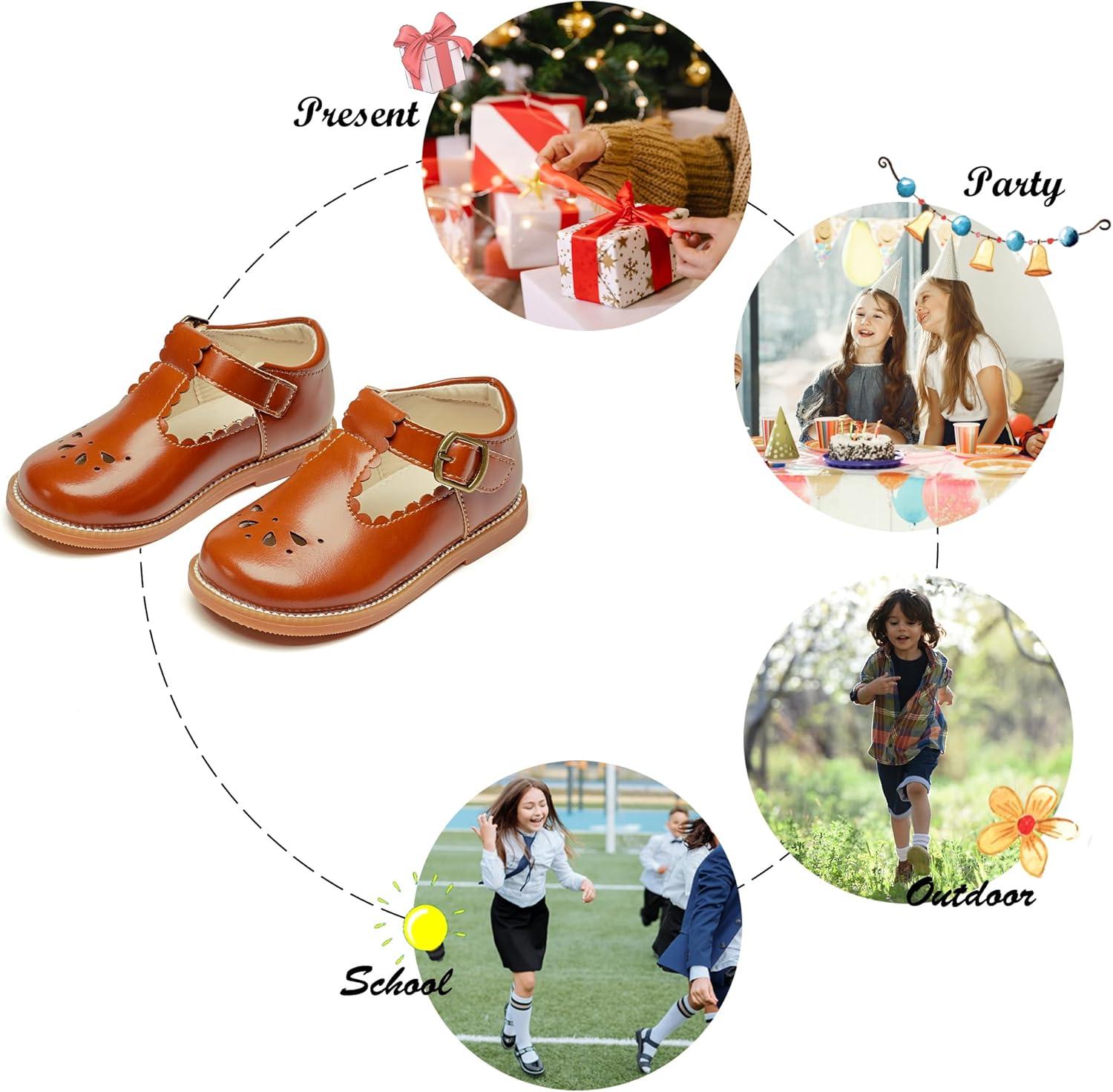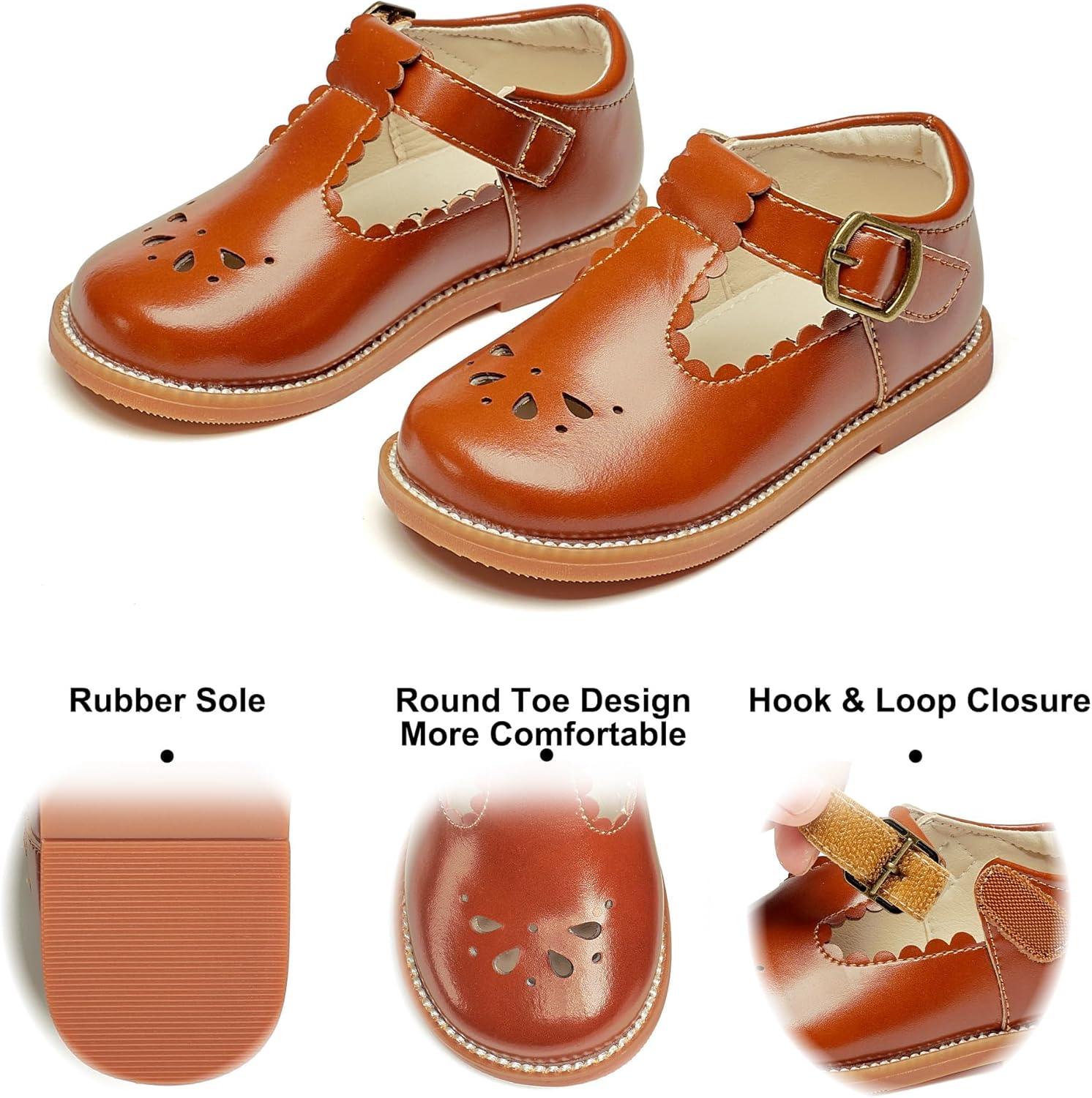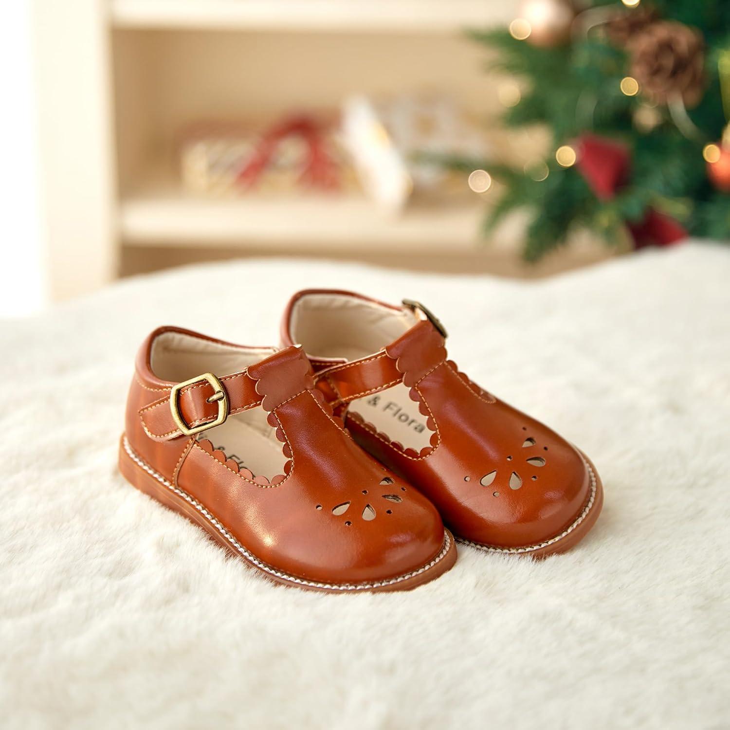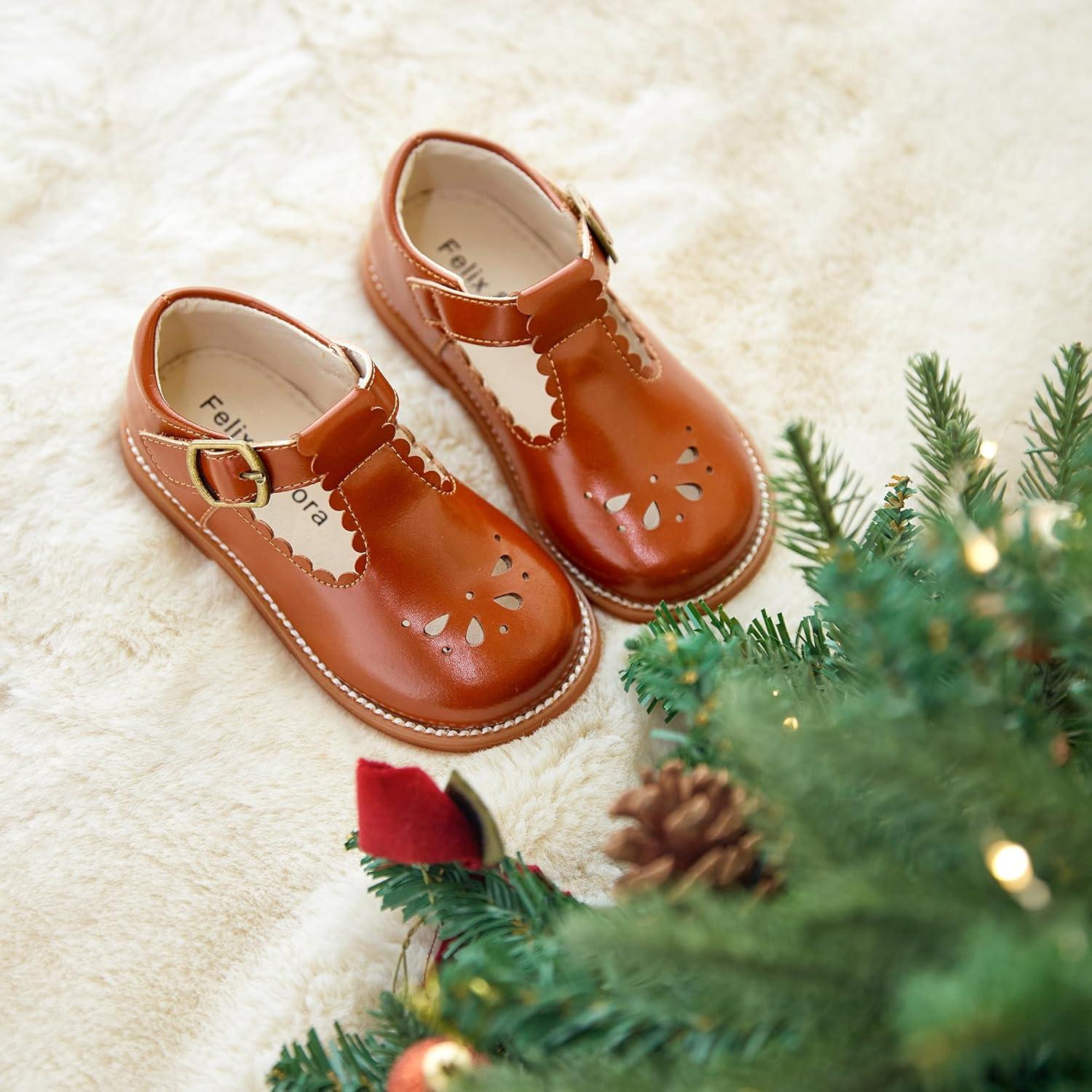 Felix & Flora Toddler Little Girl Mary Jane Dress Shoes – Ballet Flats for Girl Party School Shoes(B366-dark Brown)