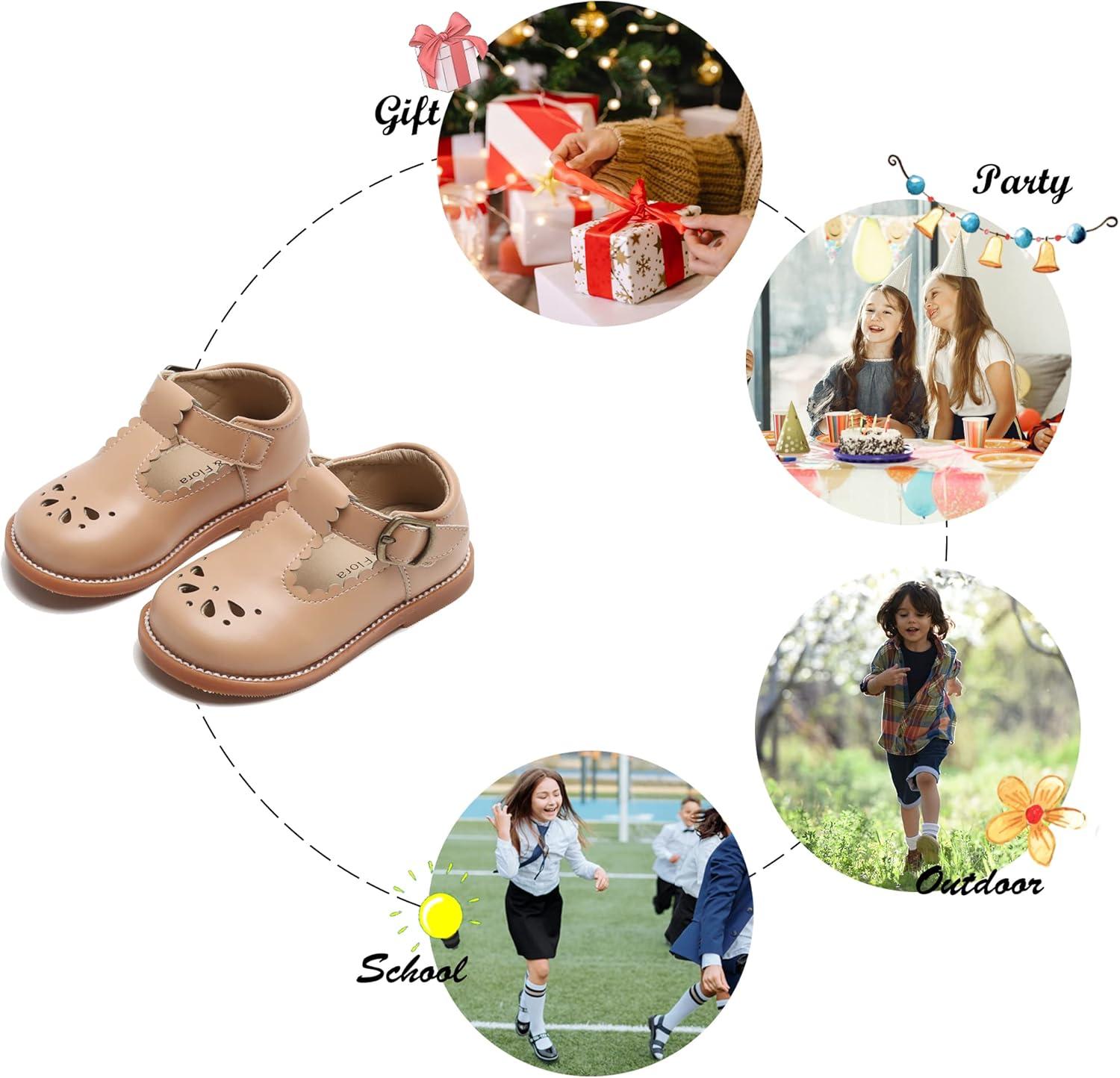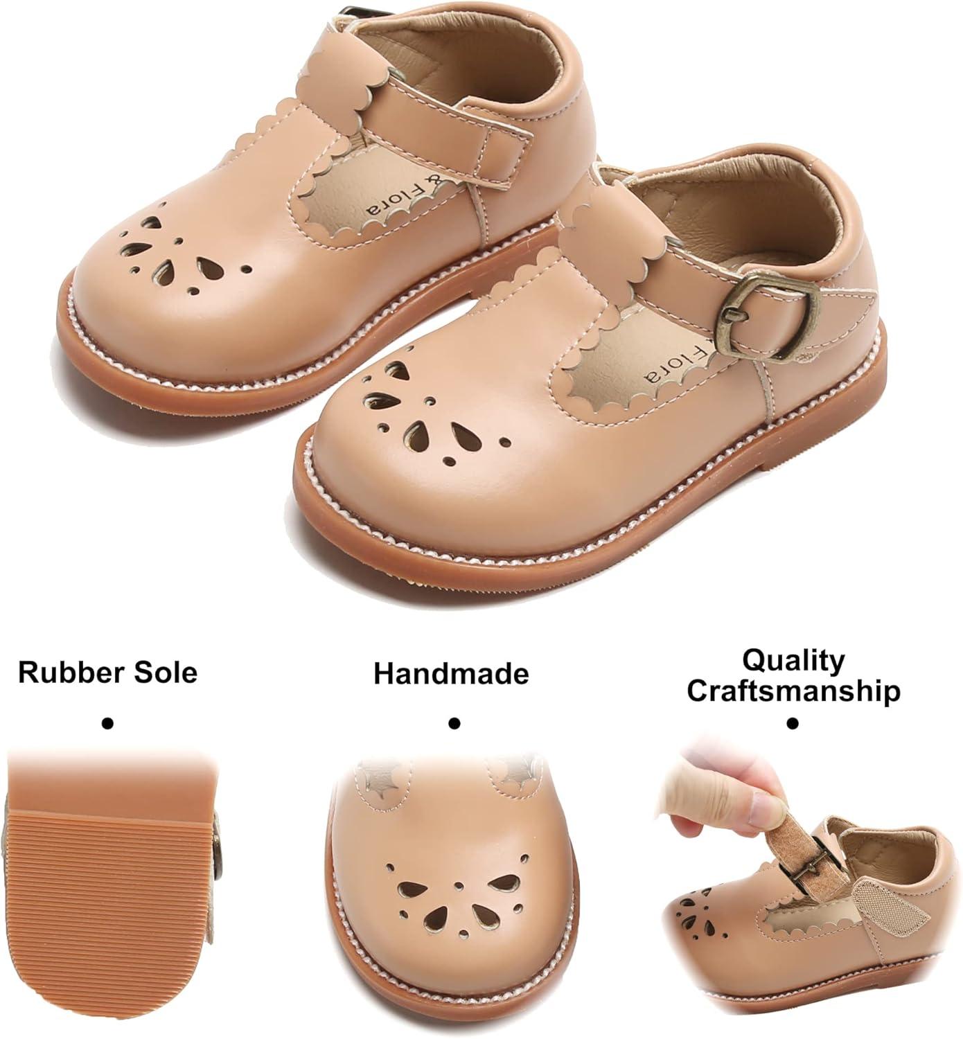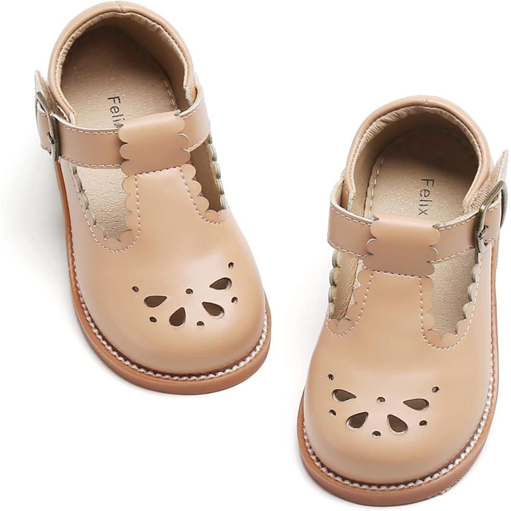 Felix & Flora Toddler Little Girl Mary Jane Dress Shoes – Ballet Flats for Girl Party School Shoes(B366-nude)