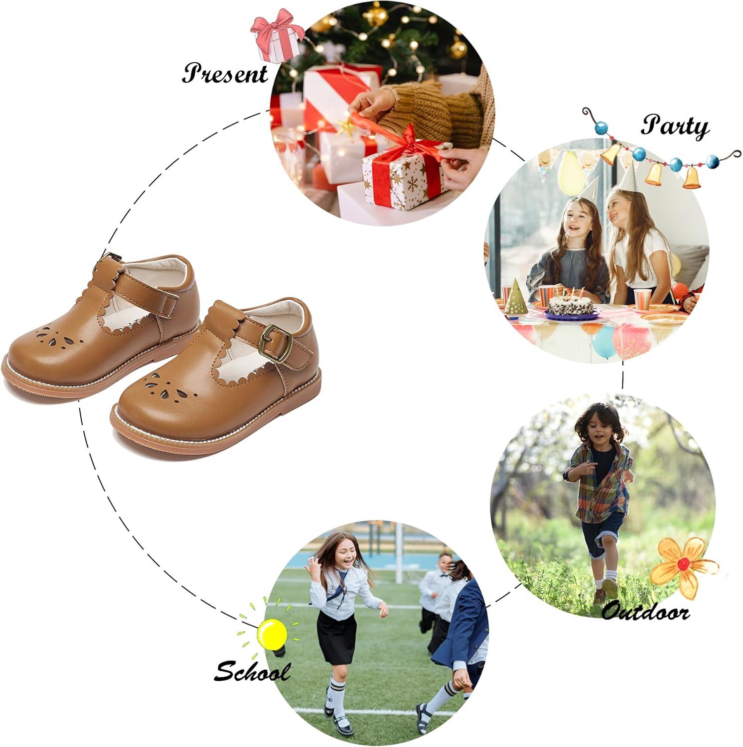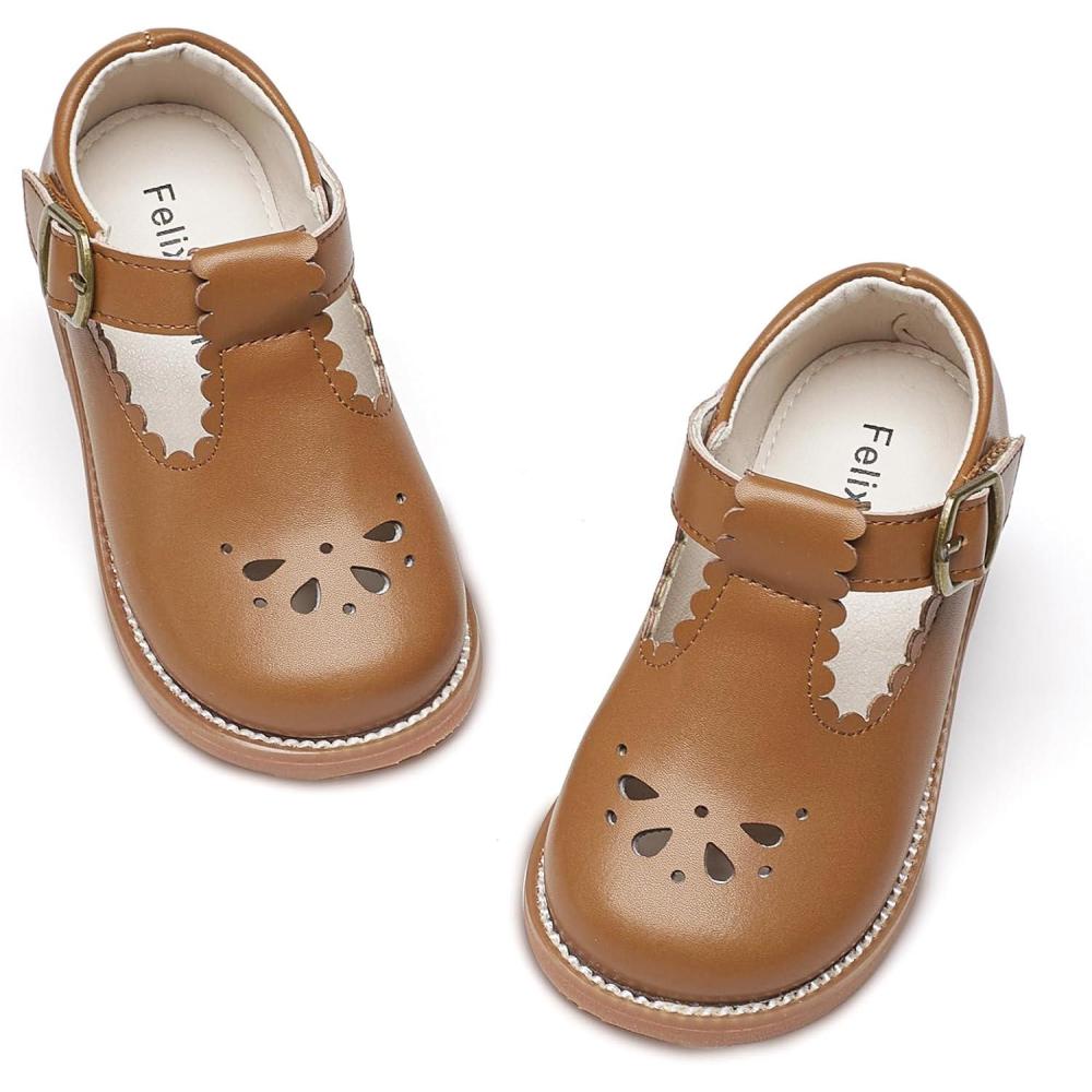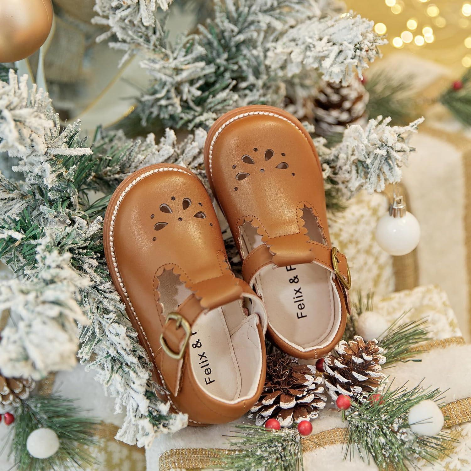 Felix & Flora Toddler Little Girl Mary Jane Dress Shoes – Ballet Flats for Girl Party School Shoes(B366-oxford Brown)