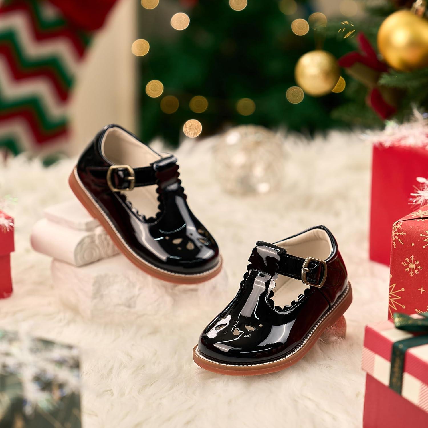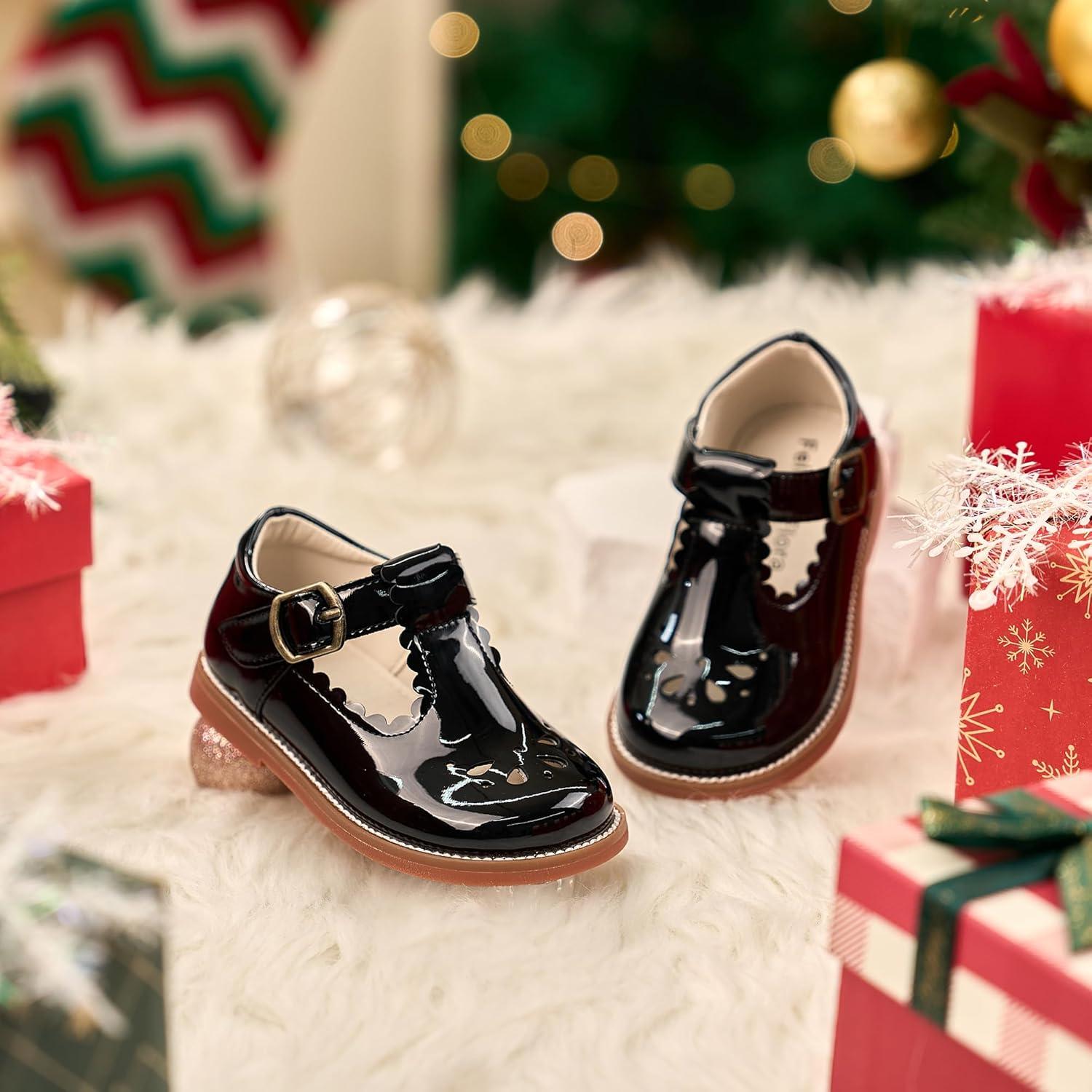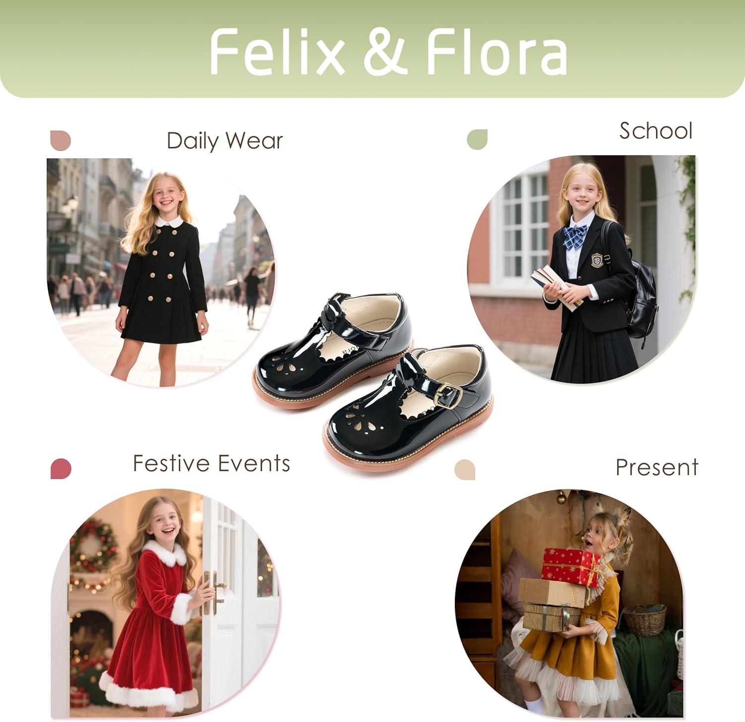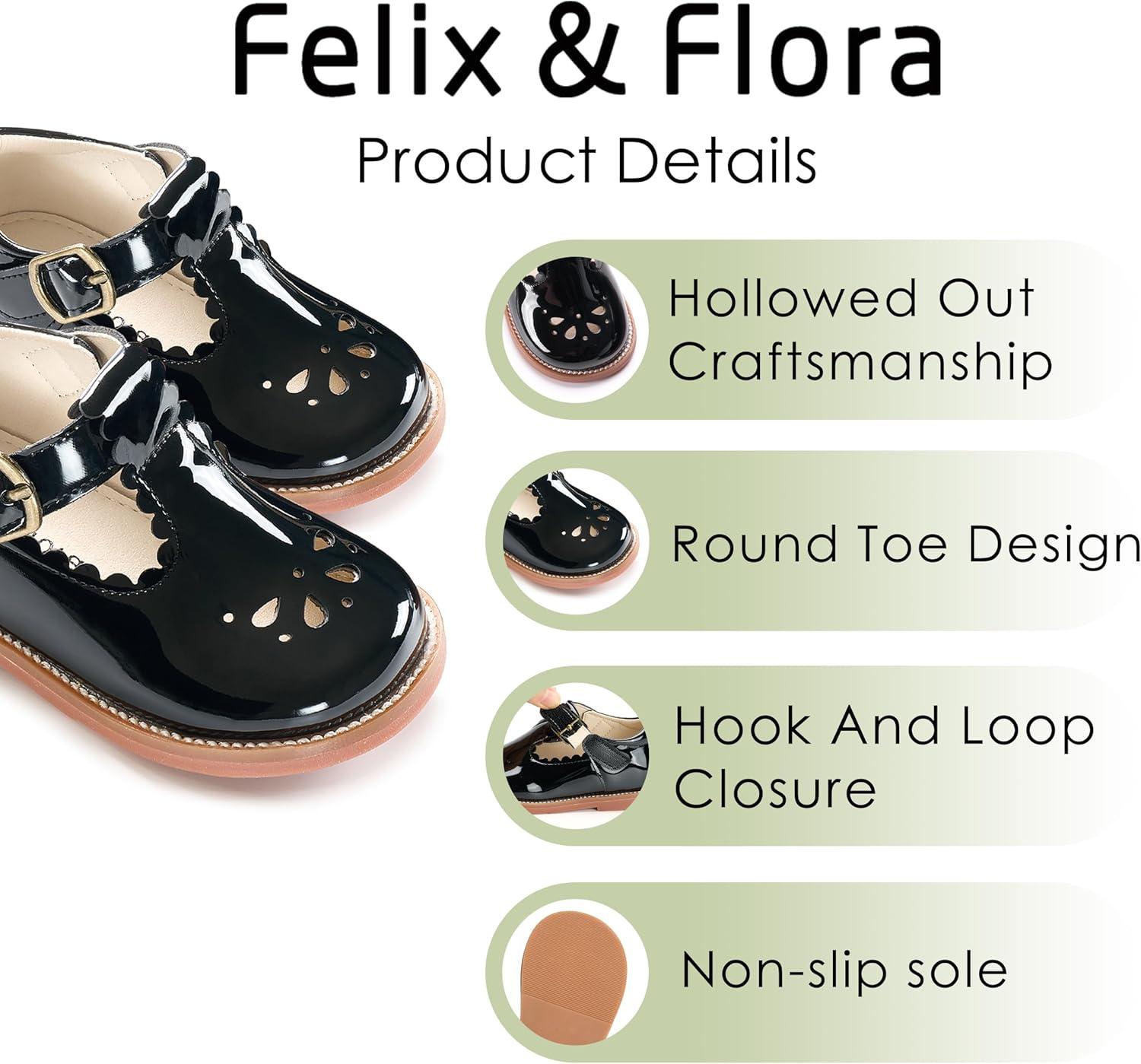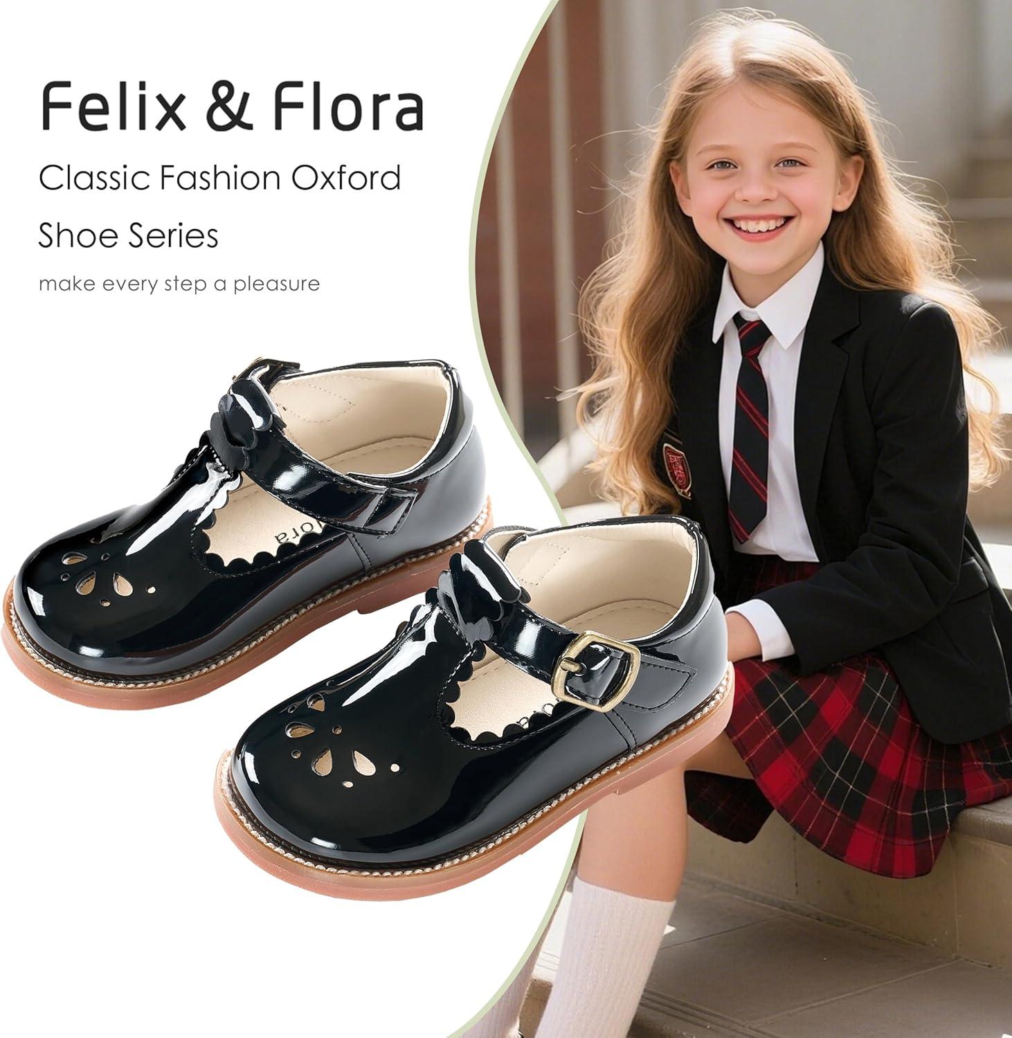Felix & Flora Toddler Little Girl Mary Jane Dress Shoes – Ballet Flats for Girl Party School Shoes(B366-pl Black)