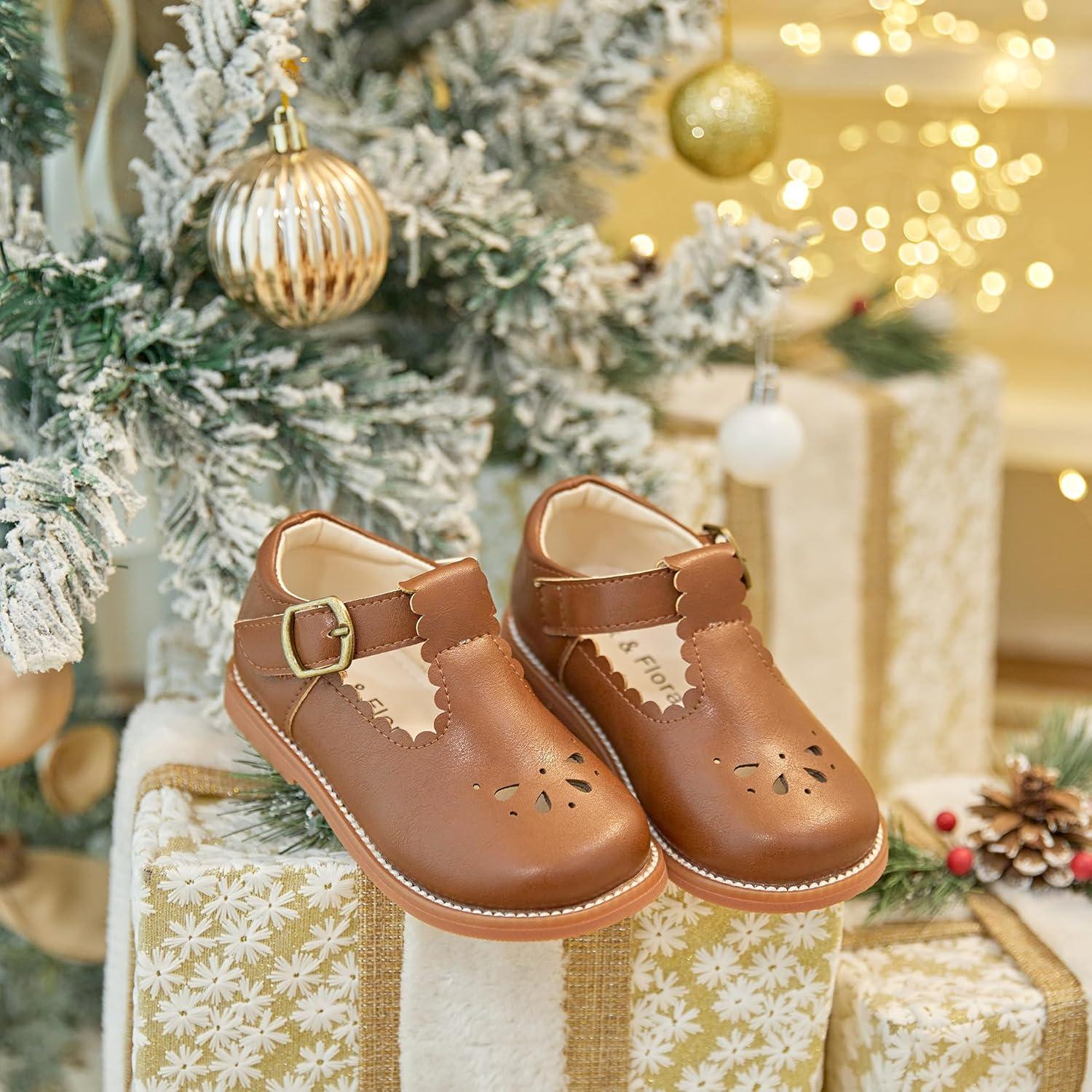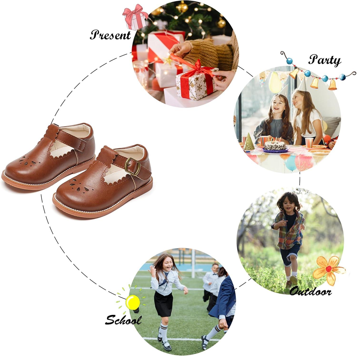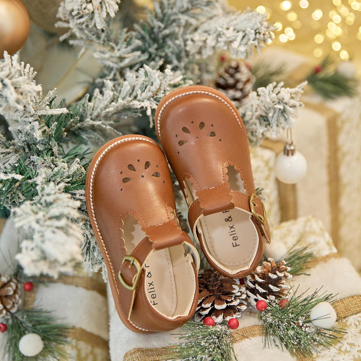 Felix & Flora Toddler Little Girl Mary Jane Dress Shoes – Ballet Flats for Girl Party School Shoes(B366-retro Brown)