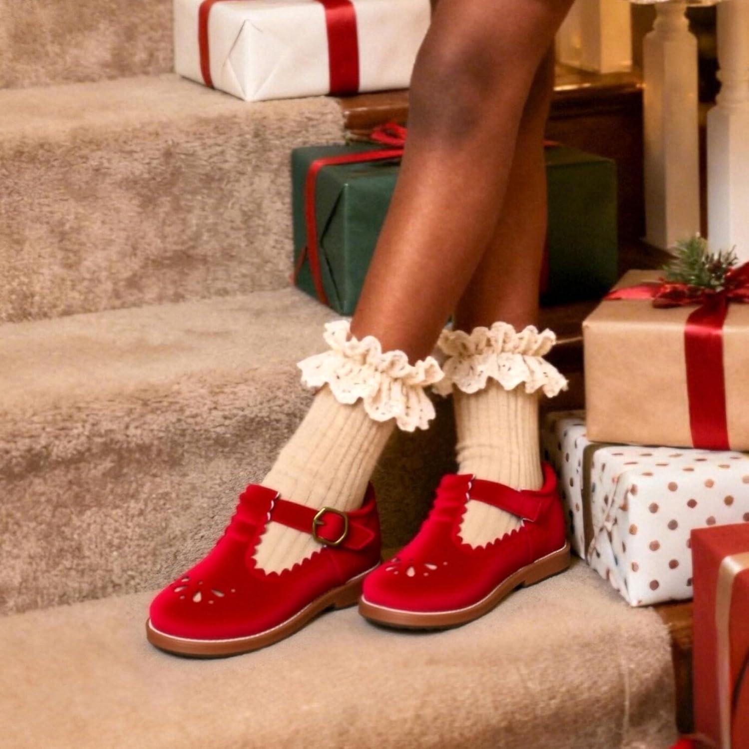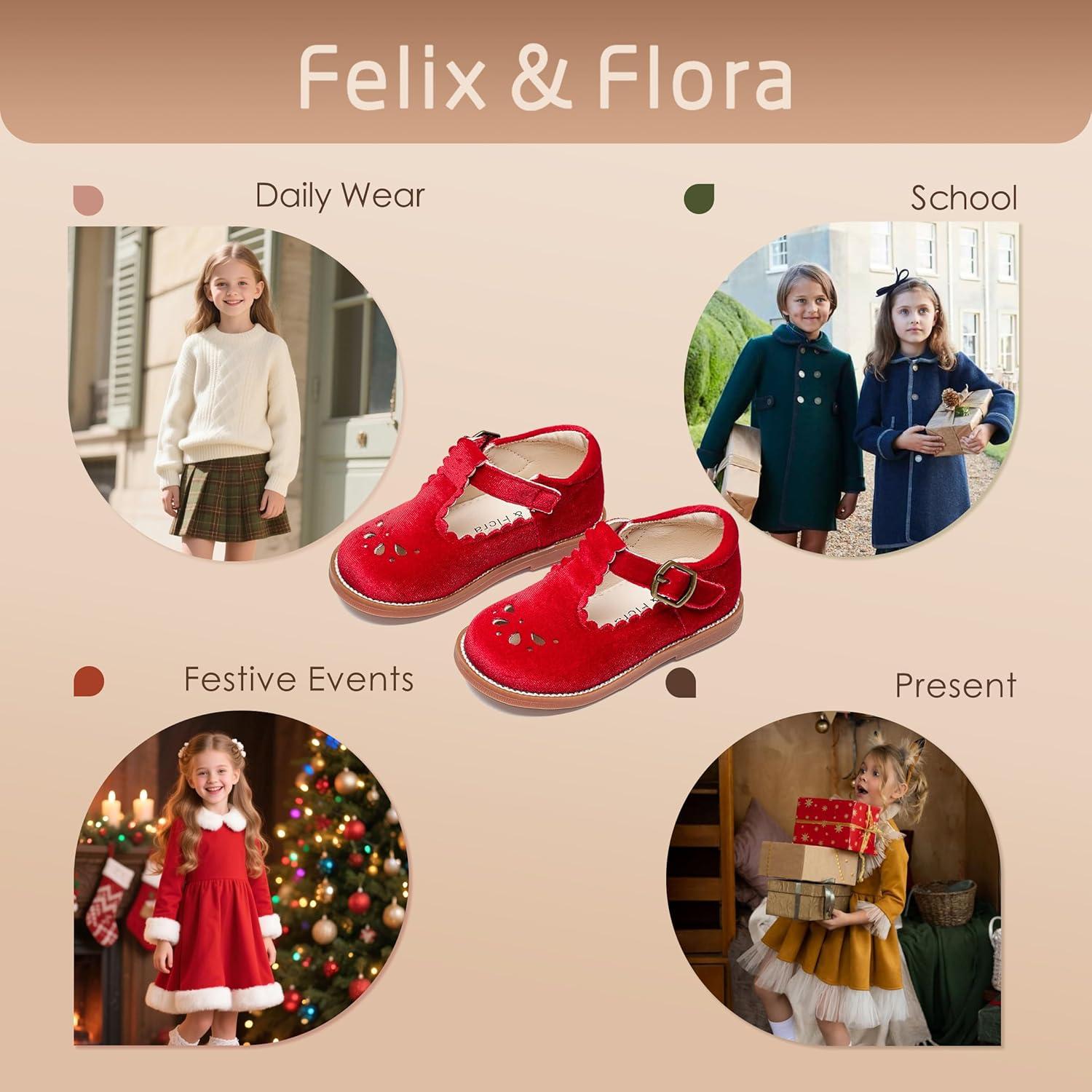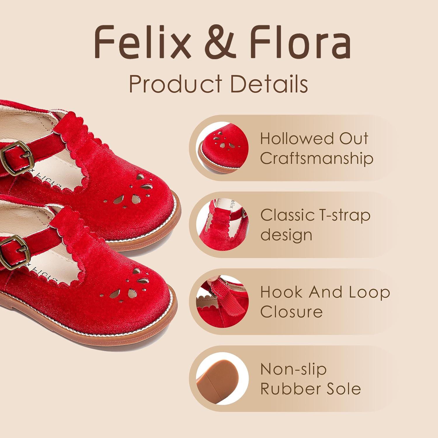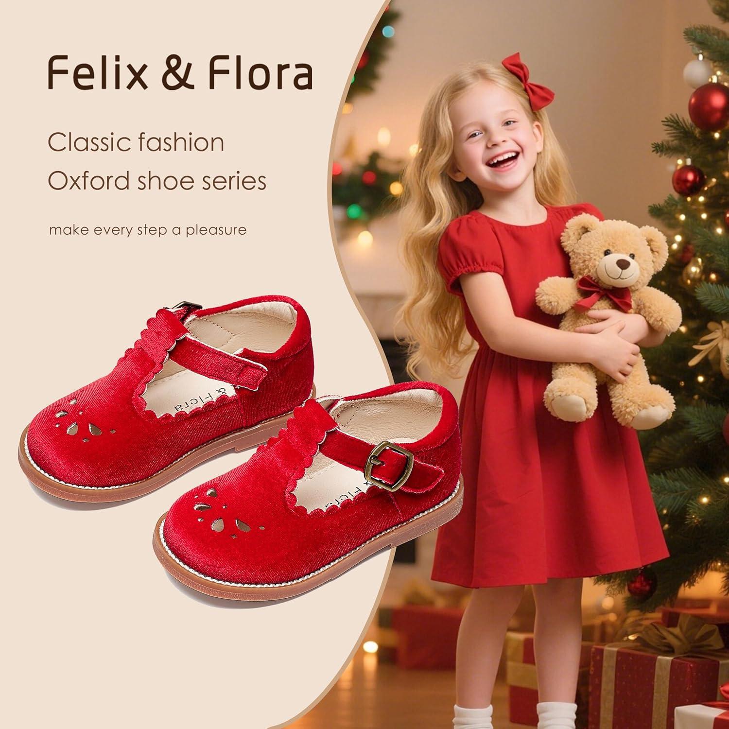 Felix & Flora Toddler Little Girl Mary Jane Dress Shoes – Ballet Flats for Girl Party School Shoes(B366-velvet Red)