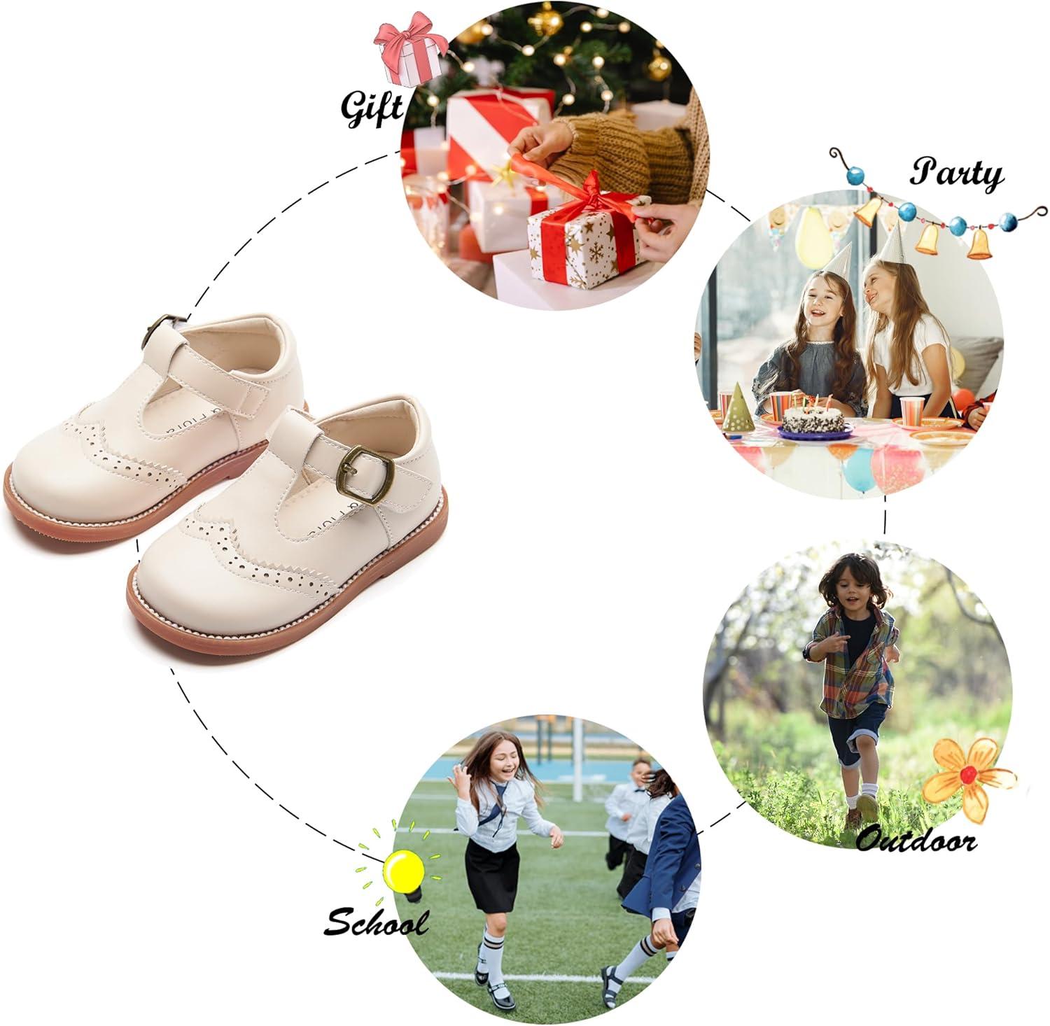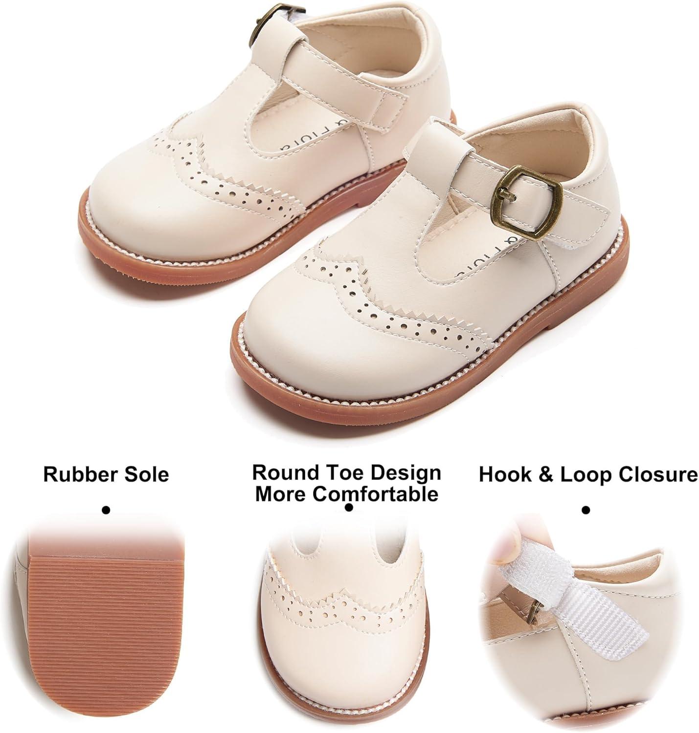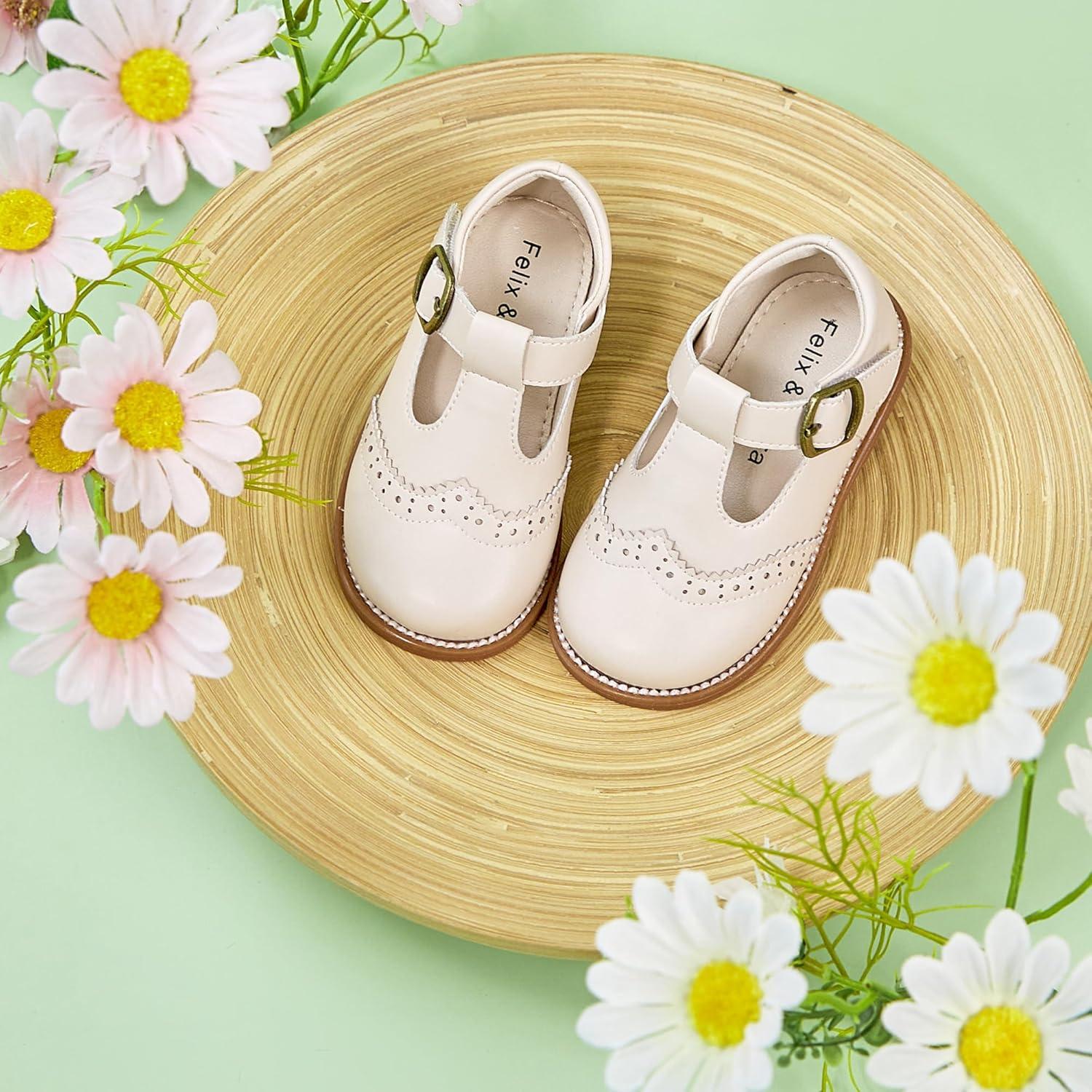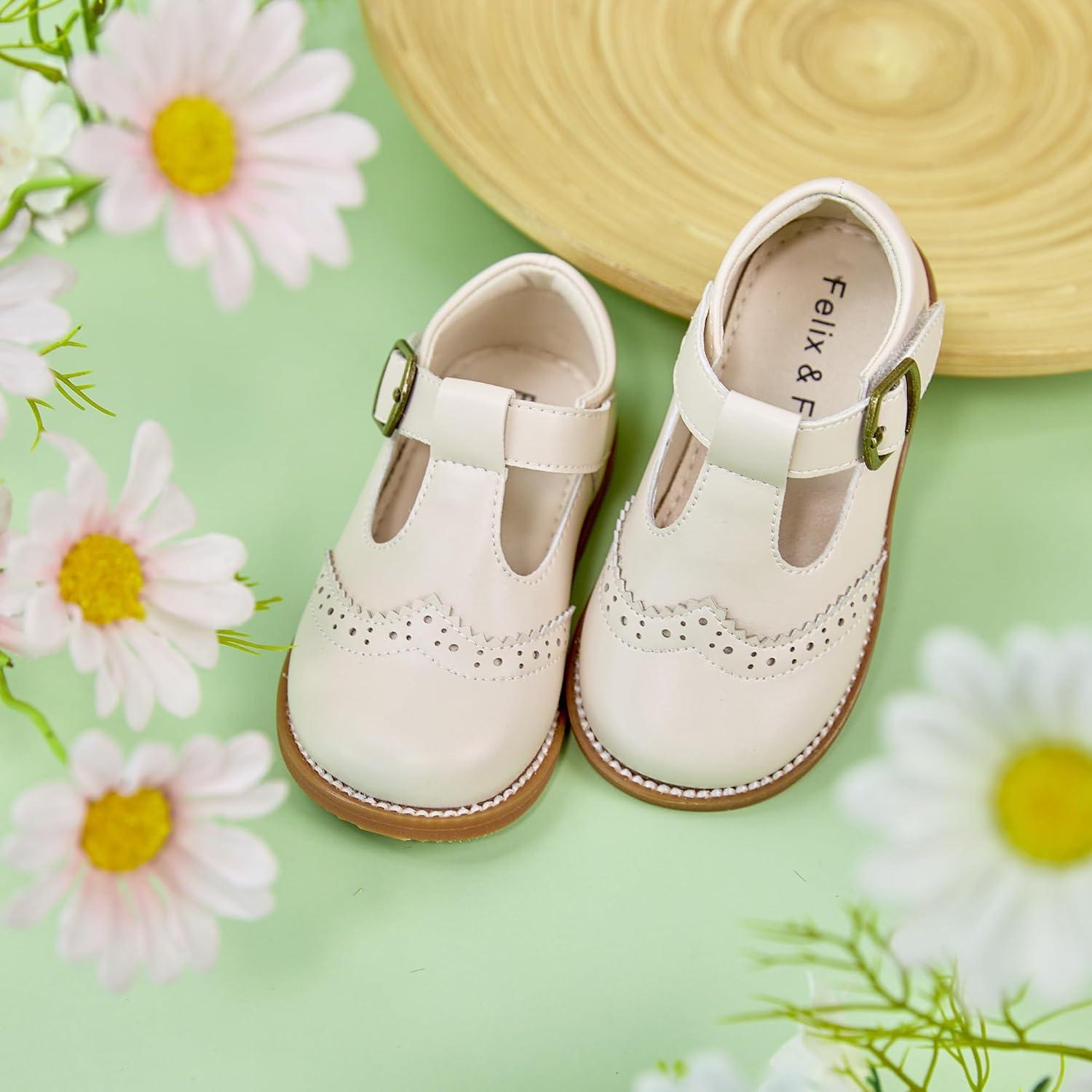 Felix & Flora Toddler Little Girl Mary Jane Dress Shoes – Ballet Flats for Girl Party School Shoes(B368-beige)