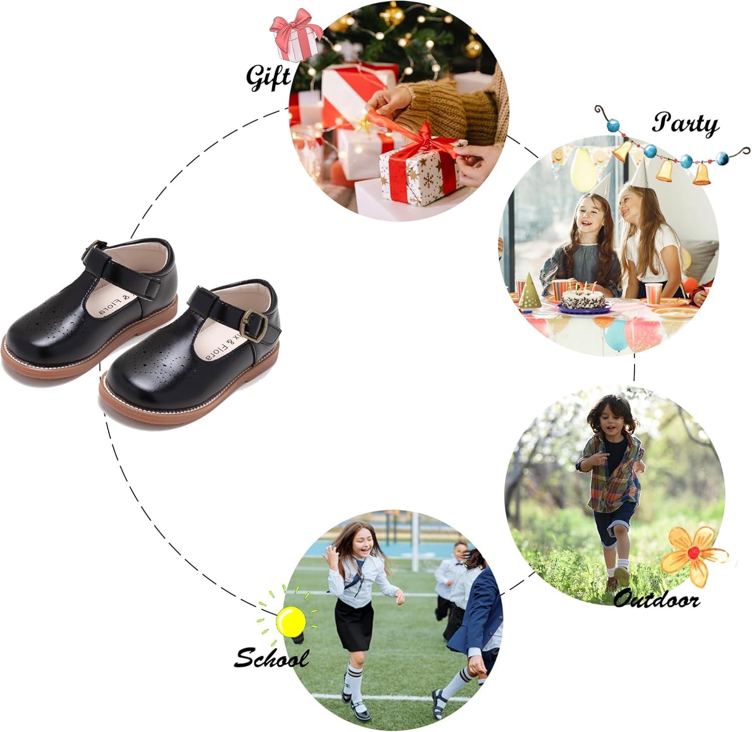 Felix & Flora Toddler Little Girl Mary Jane Dress Shoes – Ballet Flats for Girl Party School Shoes(B369-black)