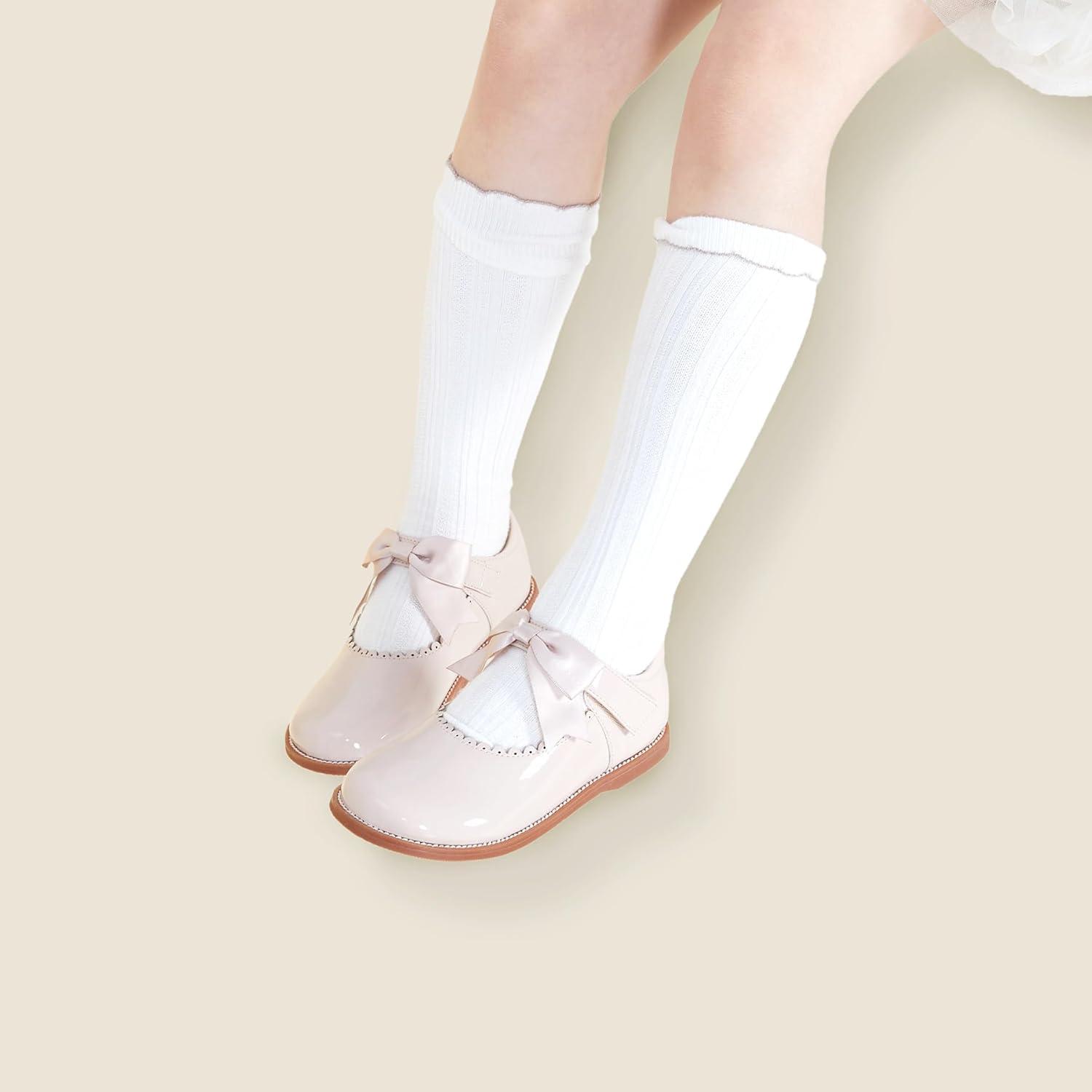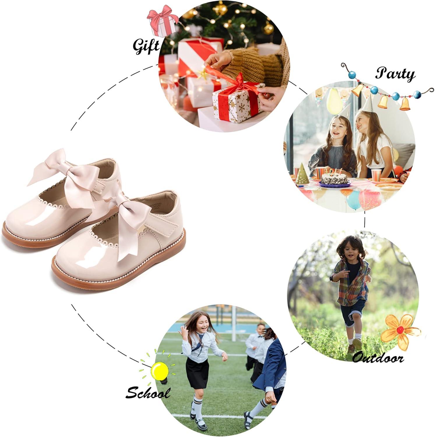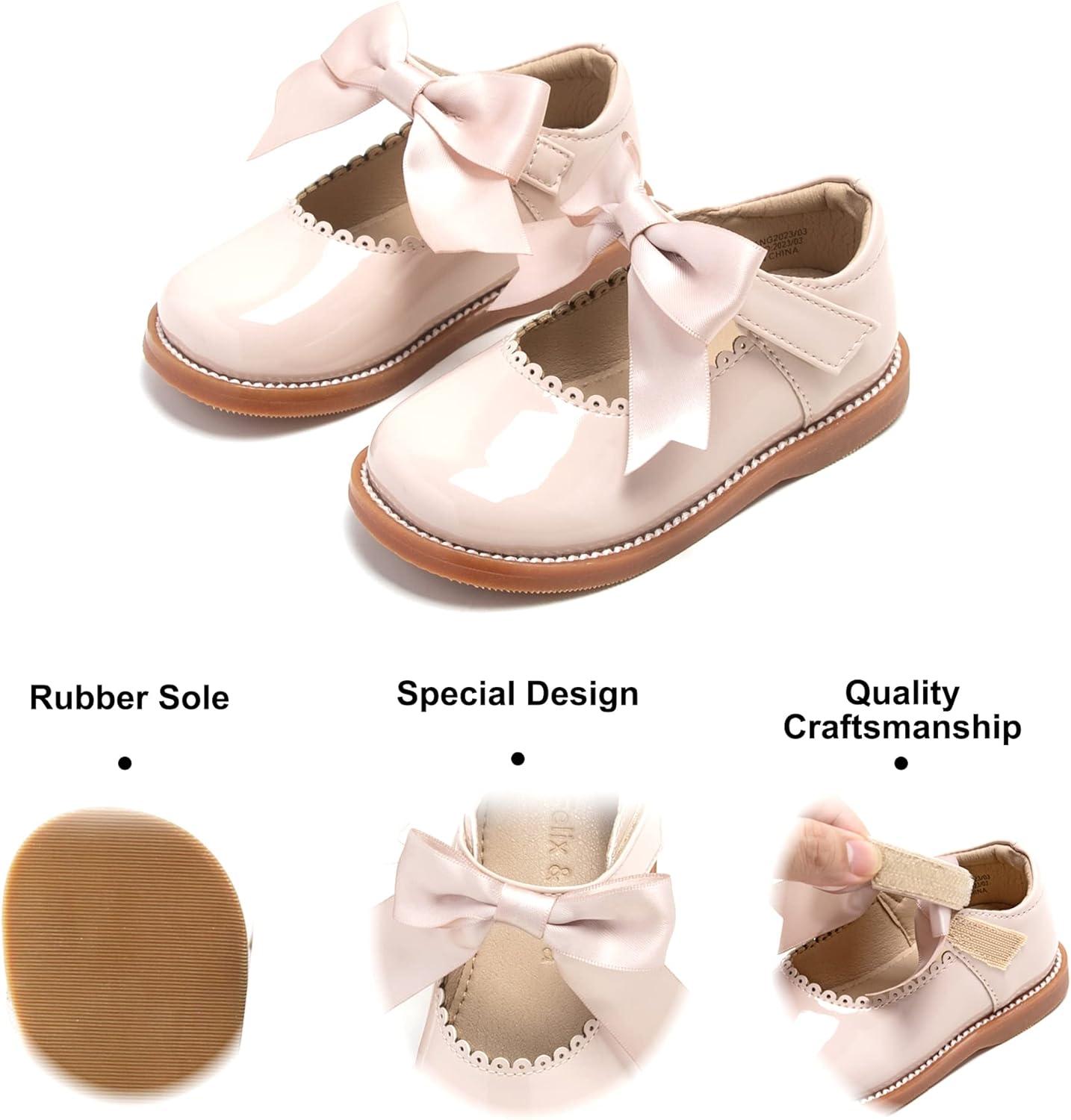 Felix & Flora Toddler Little Girl Mary Jane Dress Shoes – Ballet Flats for Girl Party School Shoes(B380-nude)