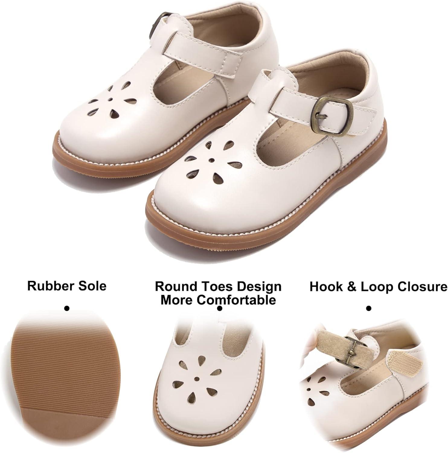 Felix & Flora Toddler Little Girl Mary Jane Dress Shoes – Ballet Flats for Girl Party School Shoes(B383-beige)