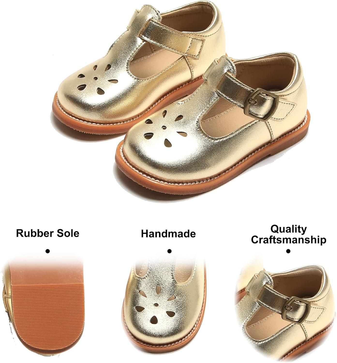 Felix & Flora Toddler Little Girl Mary Jane Dress Shoes – Ballet Flats for Girl Party School Shoes(B383-gold)