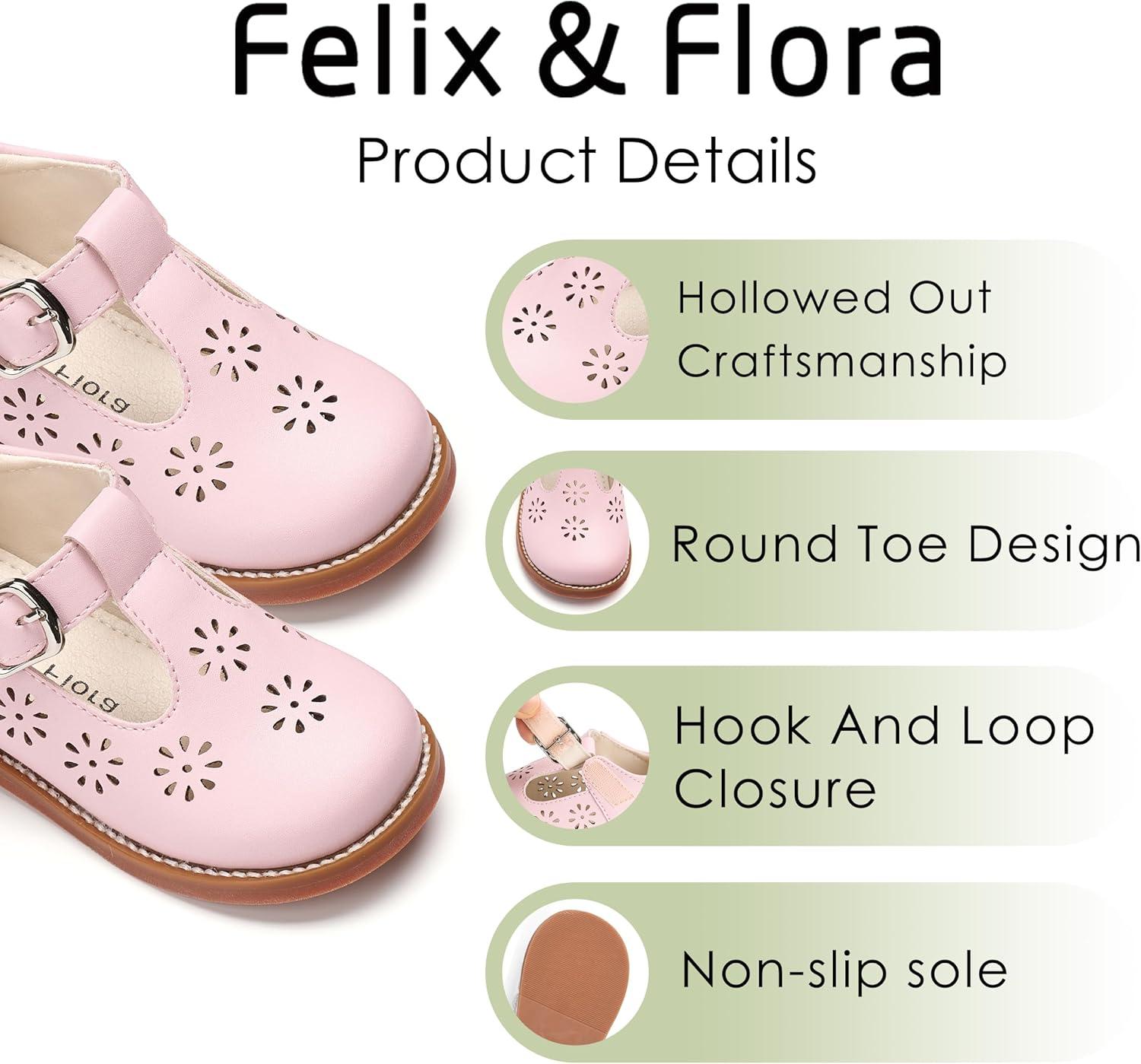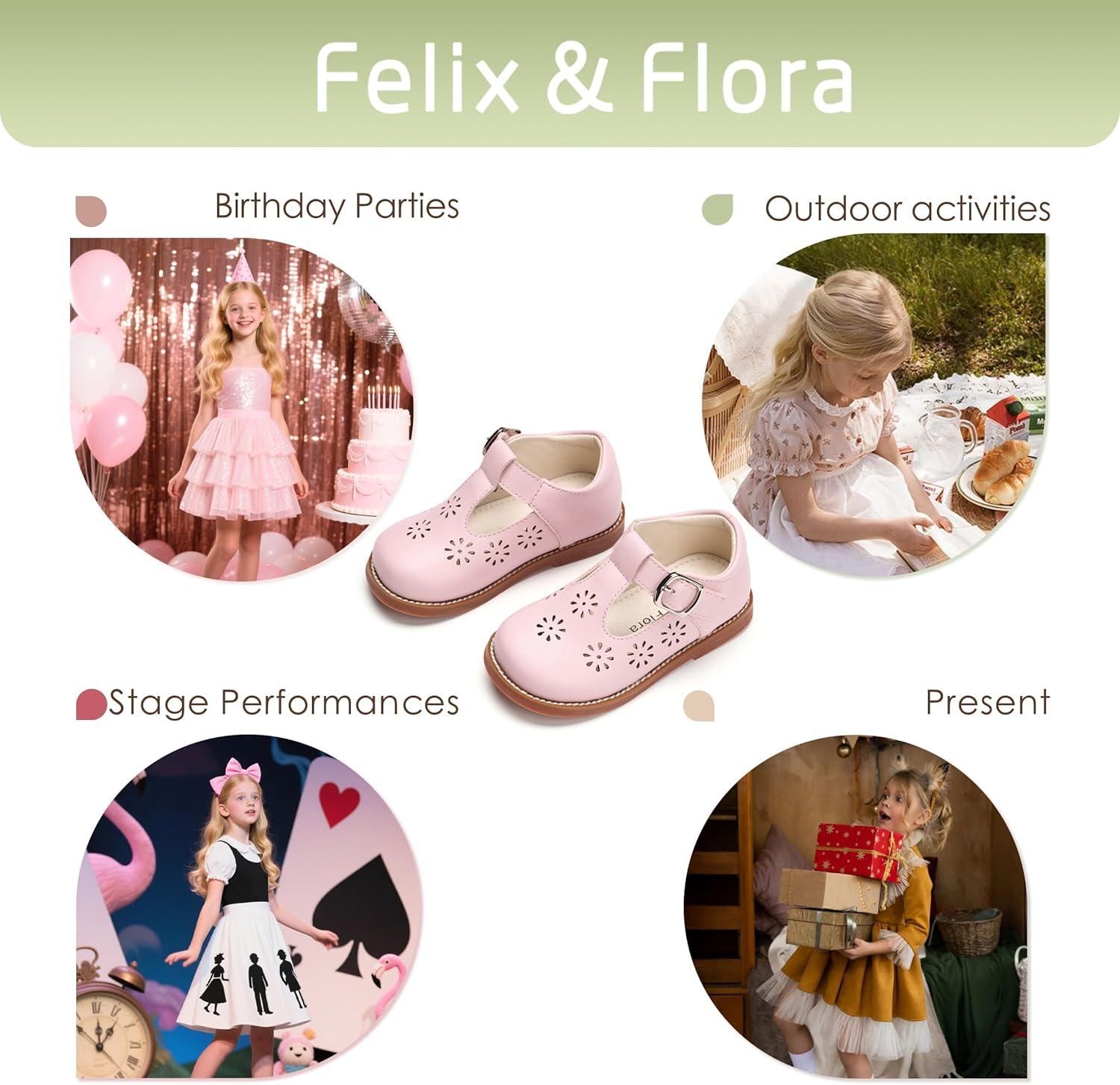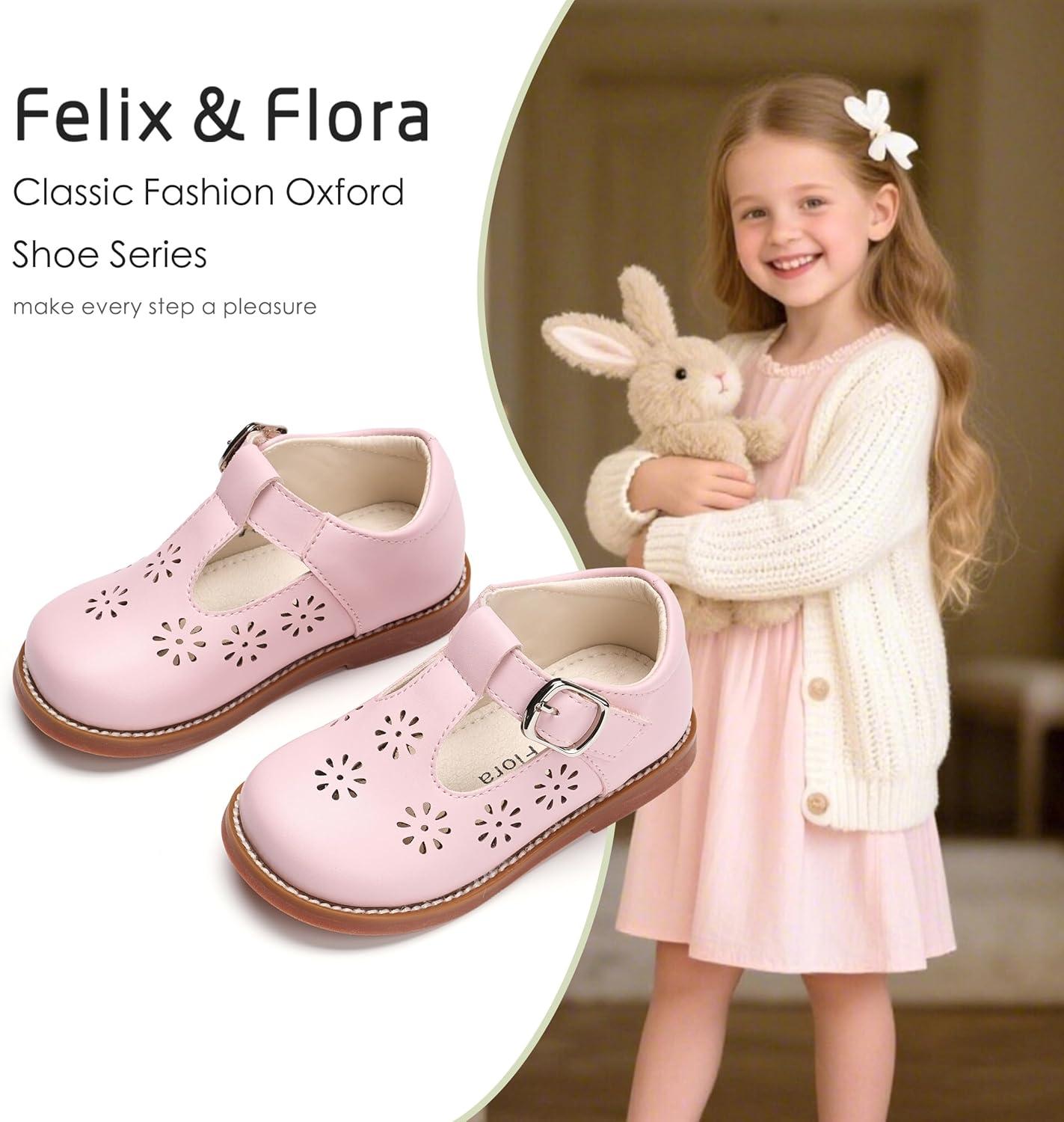 Felix & Flora Toddler Little Girl Mary Jane Dress Shoes – Ballet Flats for Girl Party School Shoes(B392-baby Pink)