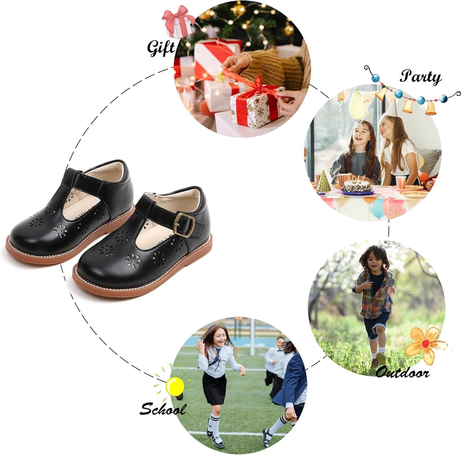Felix & Flora Toddler Little Girl Mary Jane Dress Shoes – Ballet Flats for Girl Party School Shoes(B392-black)