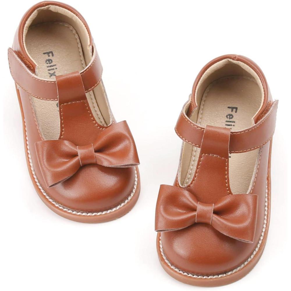 Felix & Flora Toddler Little Girl Mary Jane Dress Shoes – Ballet Flats for Girl Party School Shoes(B400-brown)
