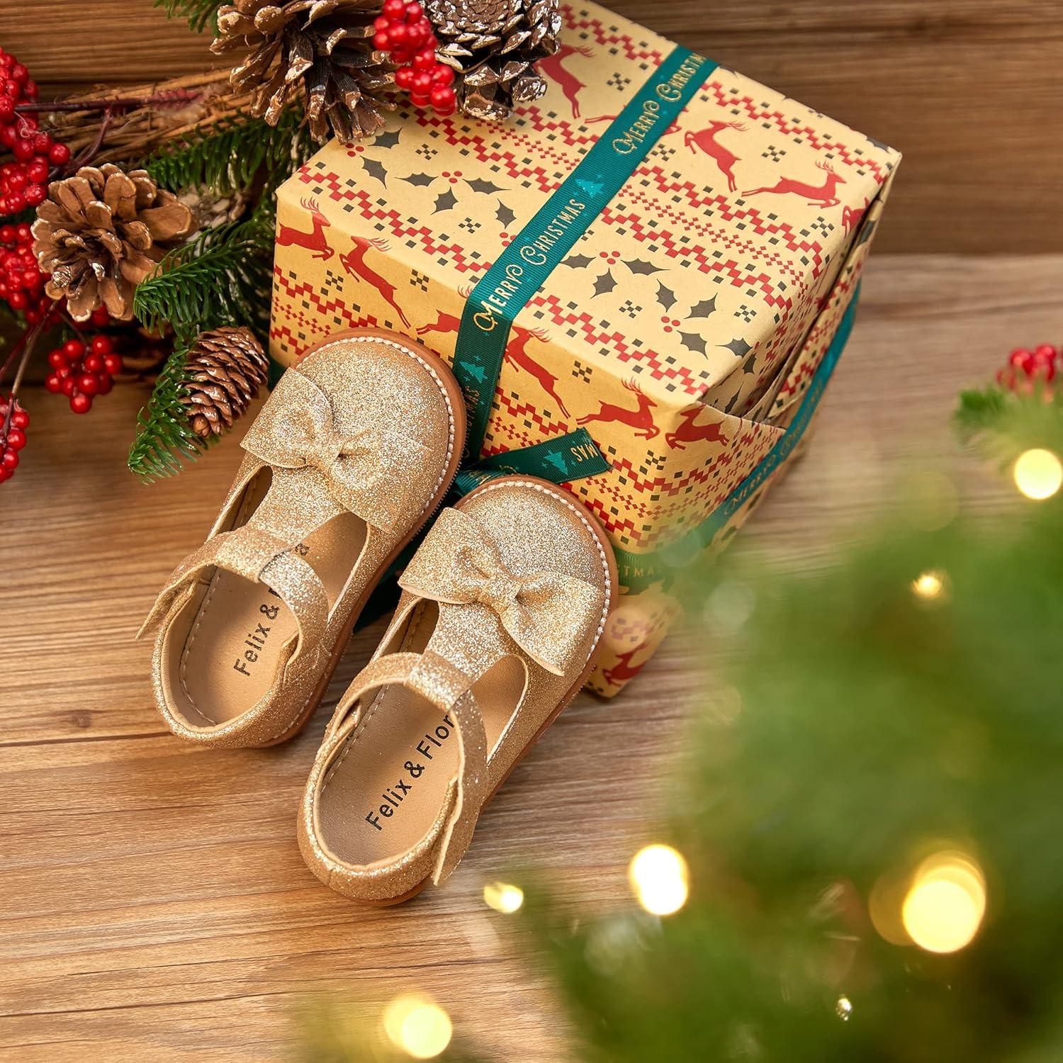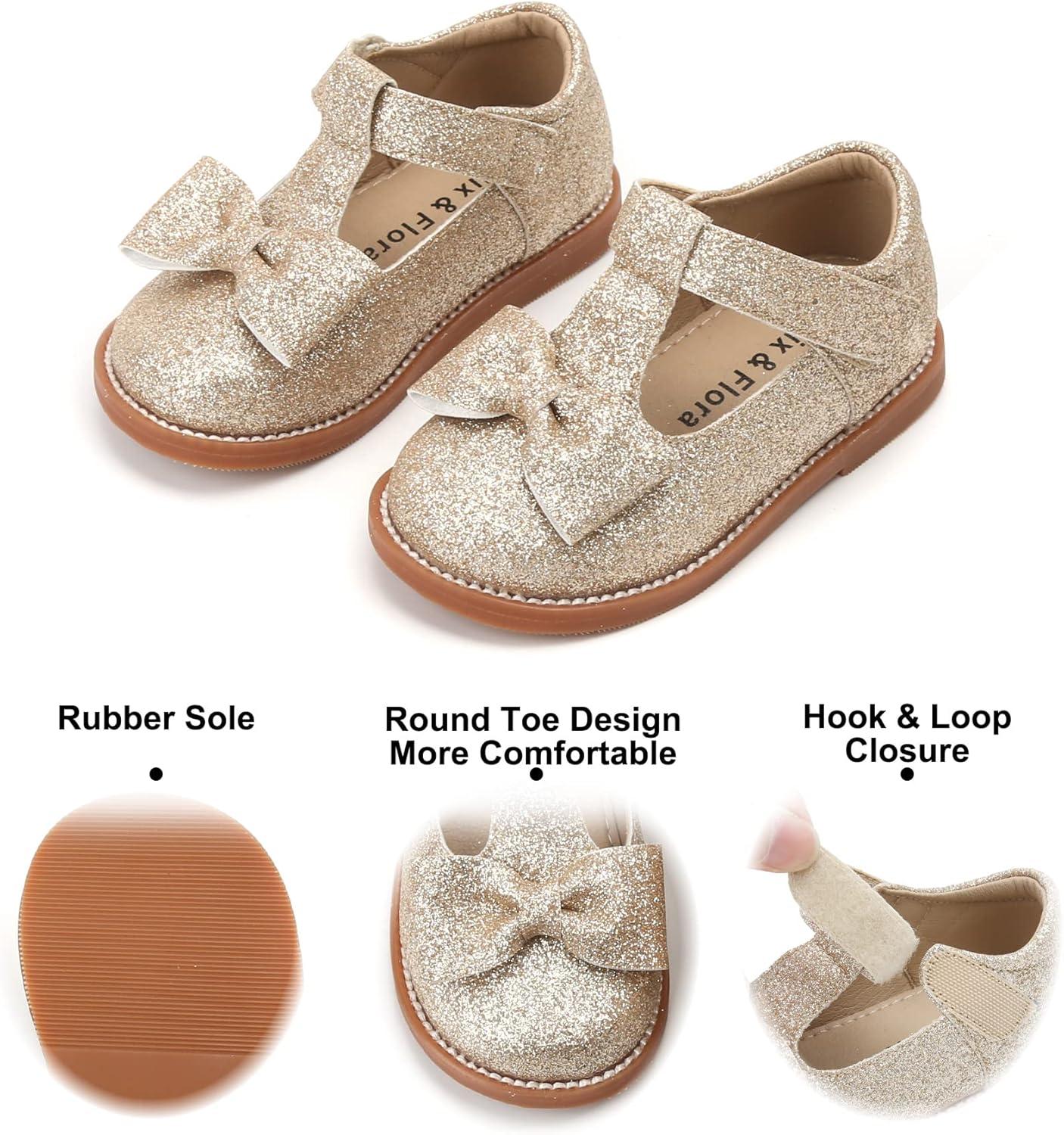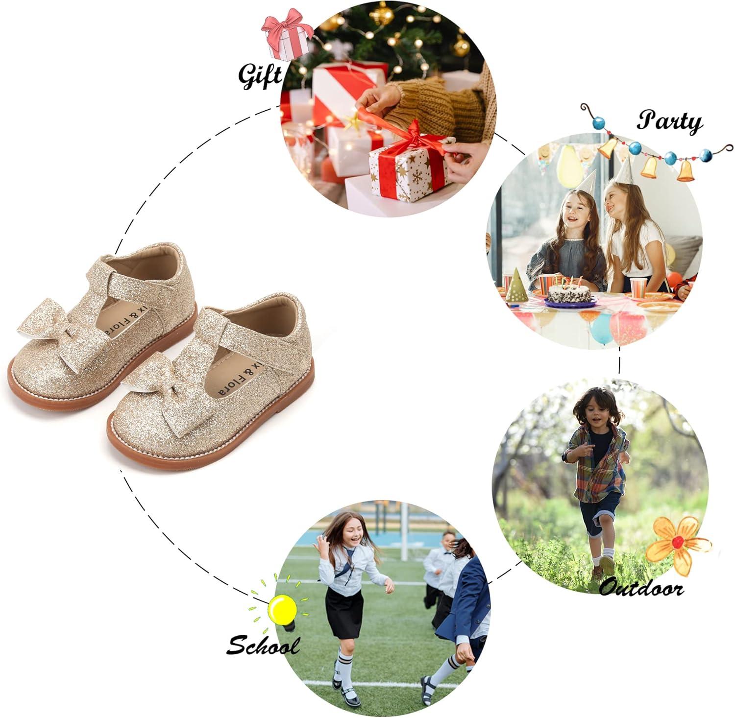 Felix & Flora Toddler Little Girl Mary Jane Dress Shoes – Ballet Flats for Girl Party School Shoes(B400-gold)