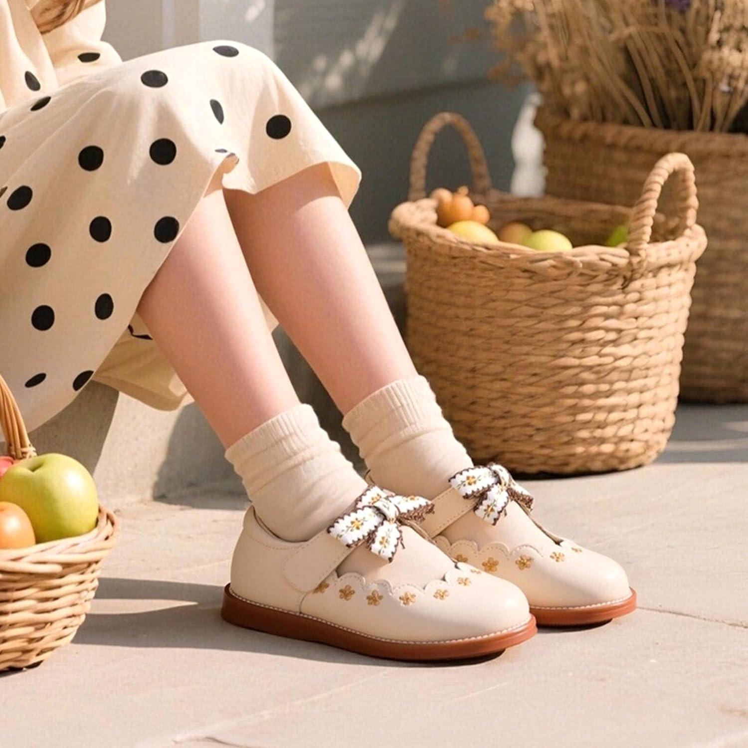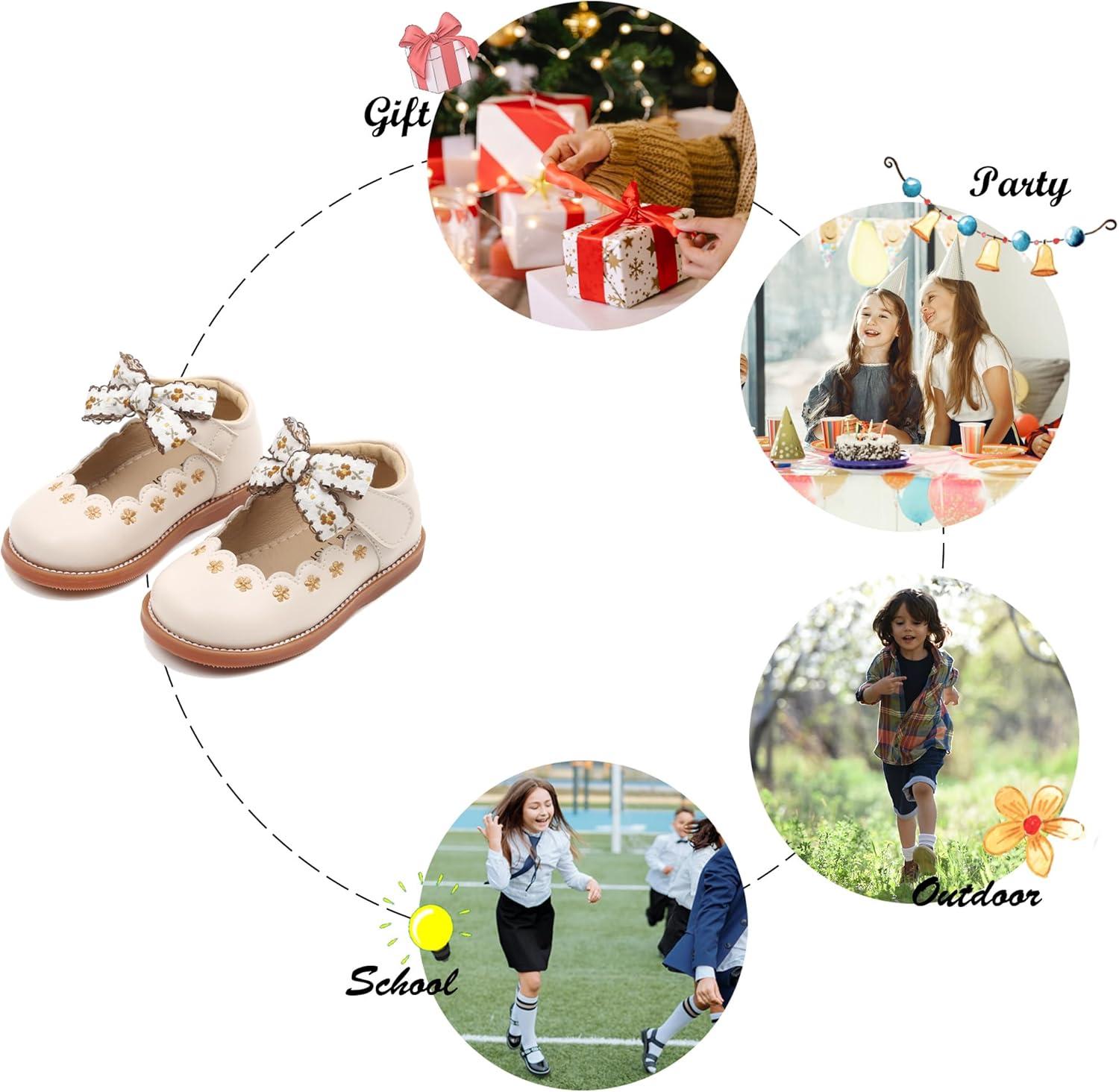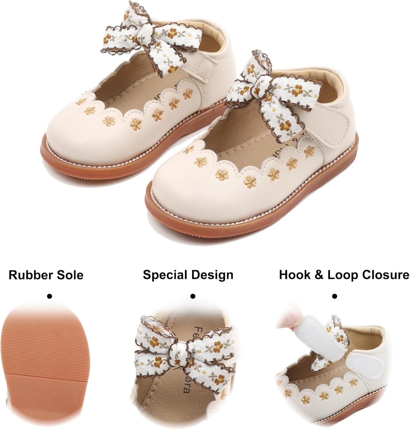 Felix & Flora Toddler Little Girl Mary Jane Dress Shoes – Ballet Flats for Girl Party School Shoes(B402-beige)