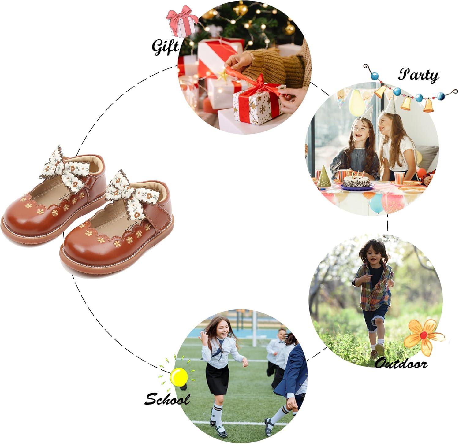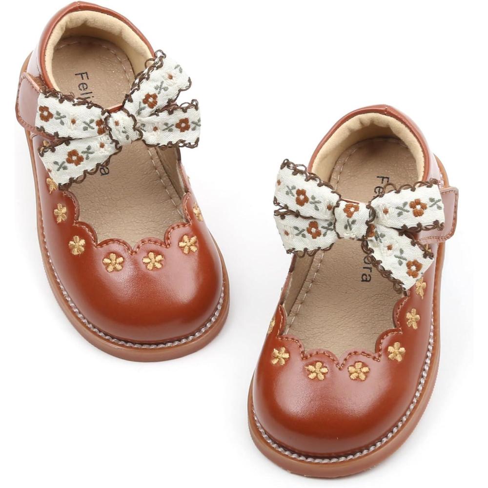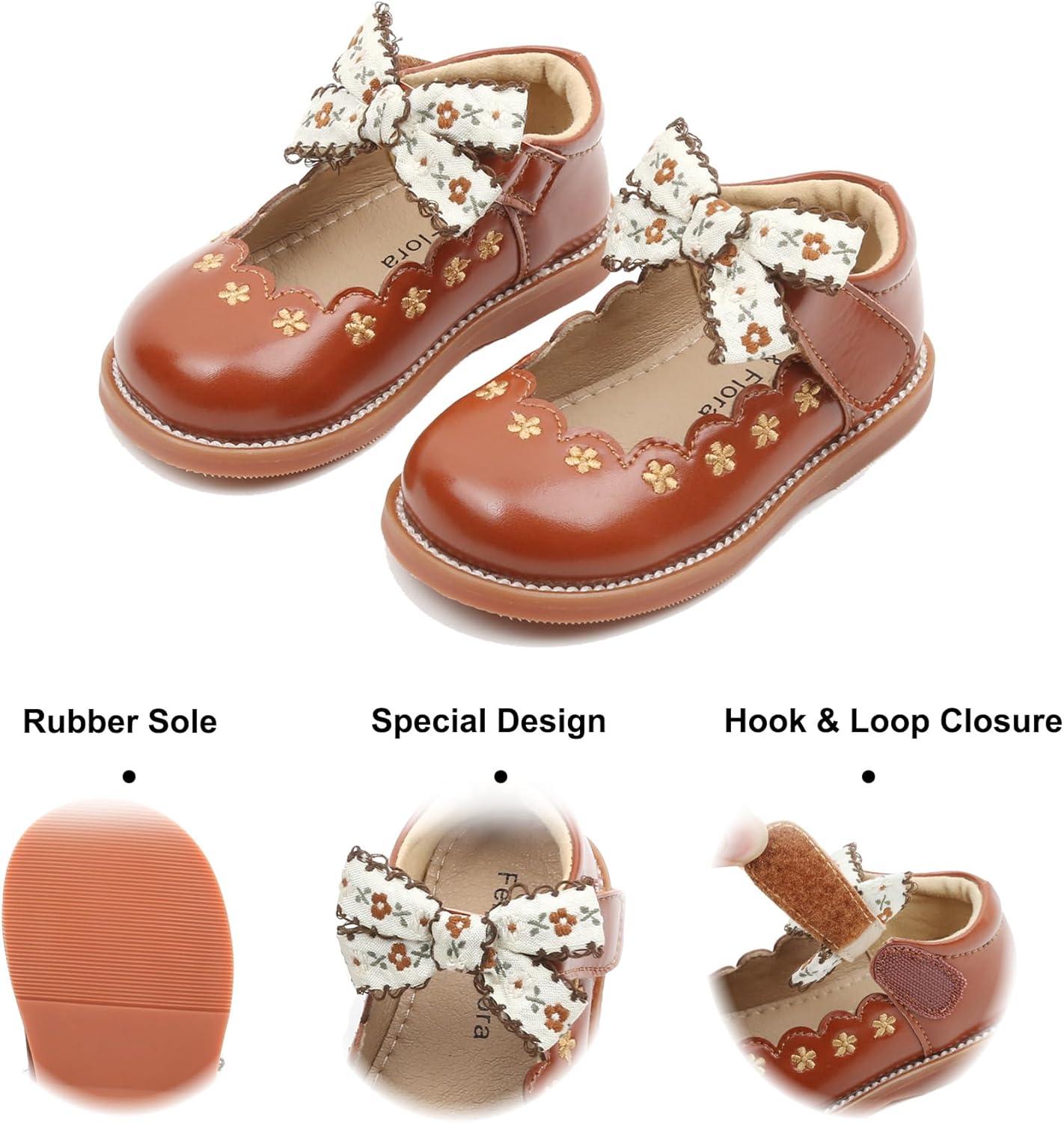 Felix & Flora Toddler Little Girl Mary Jane Dress Shoes – Ballet Flats for Girl Party School Shoes(B402-brown)