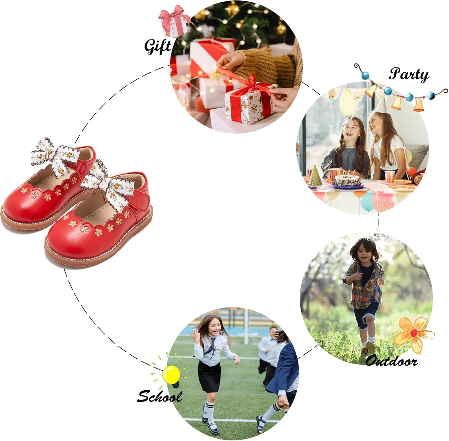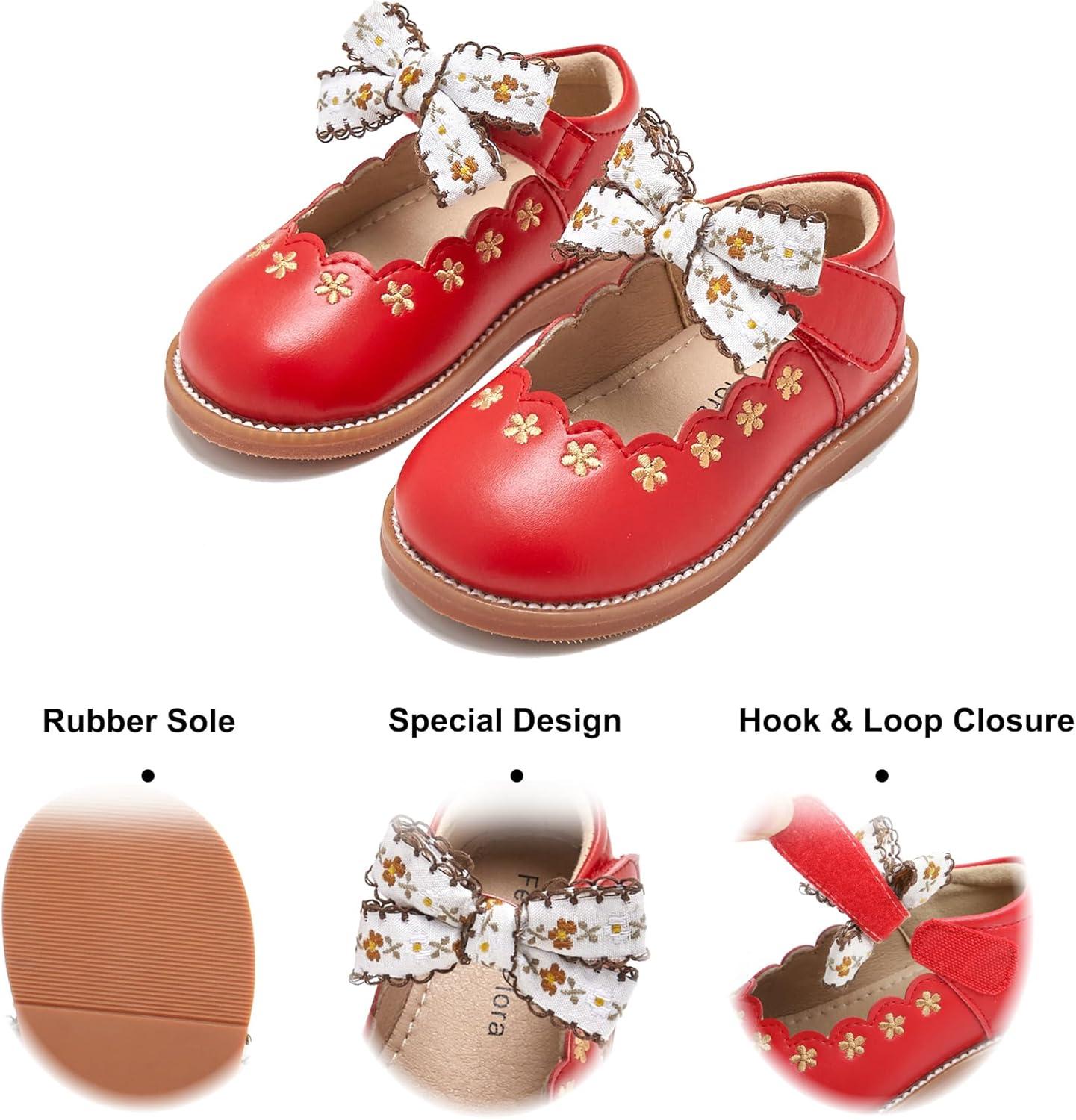 Felix & Flora Toddler Little Girl Mary Jane Dress Shoes – Ballet Flats for Girl Party School Shoes(B402-red)
