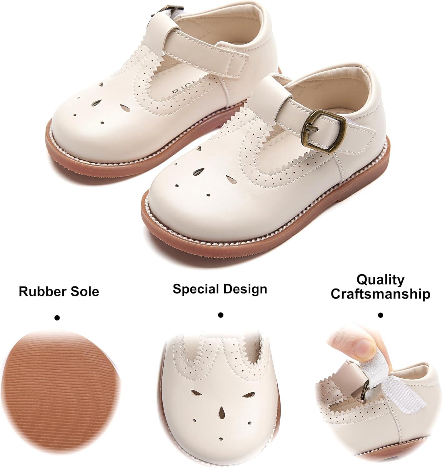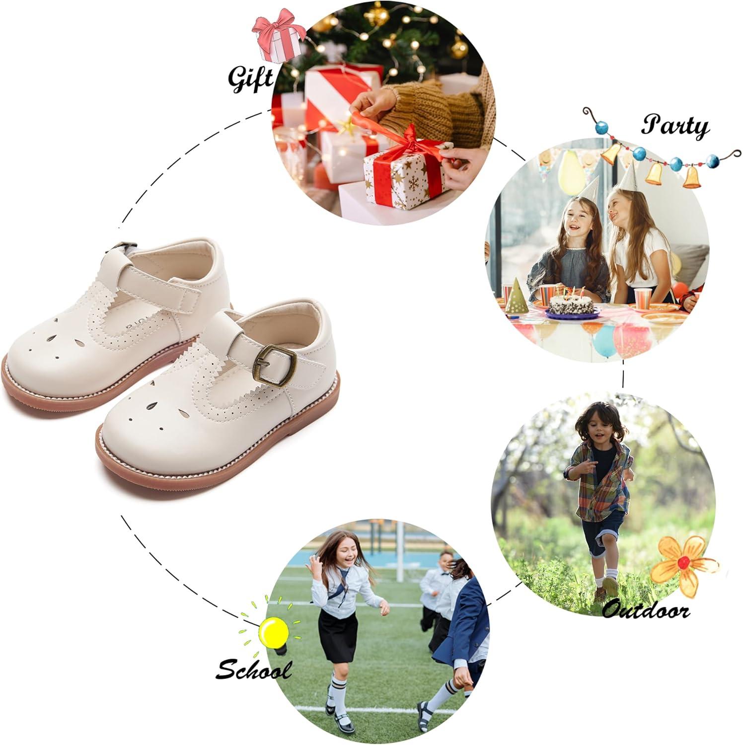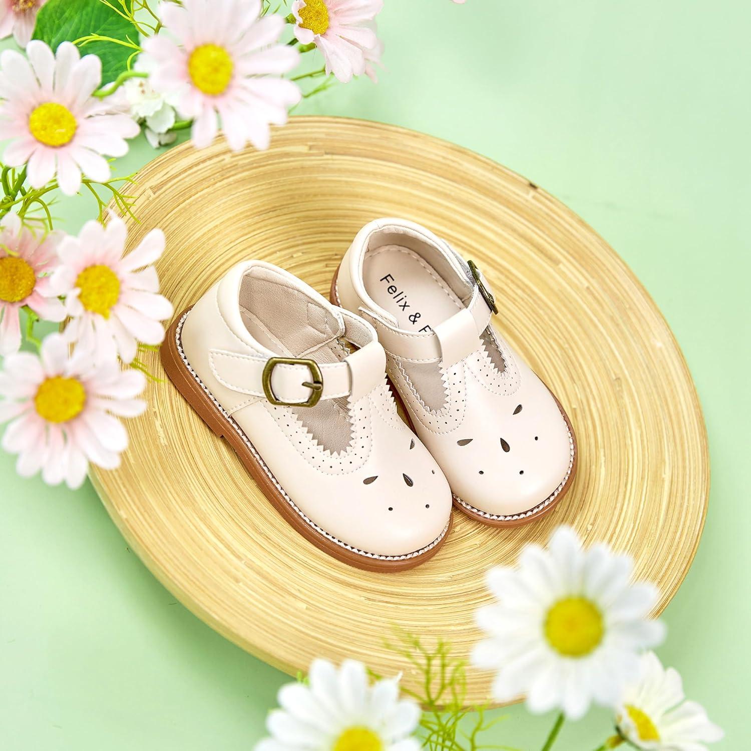 Felix & Flora Toddler Little Girl Mary Jane Dress Shoes – Ballet Flats for Girl Party School Shoes(B409-beige)