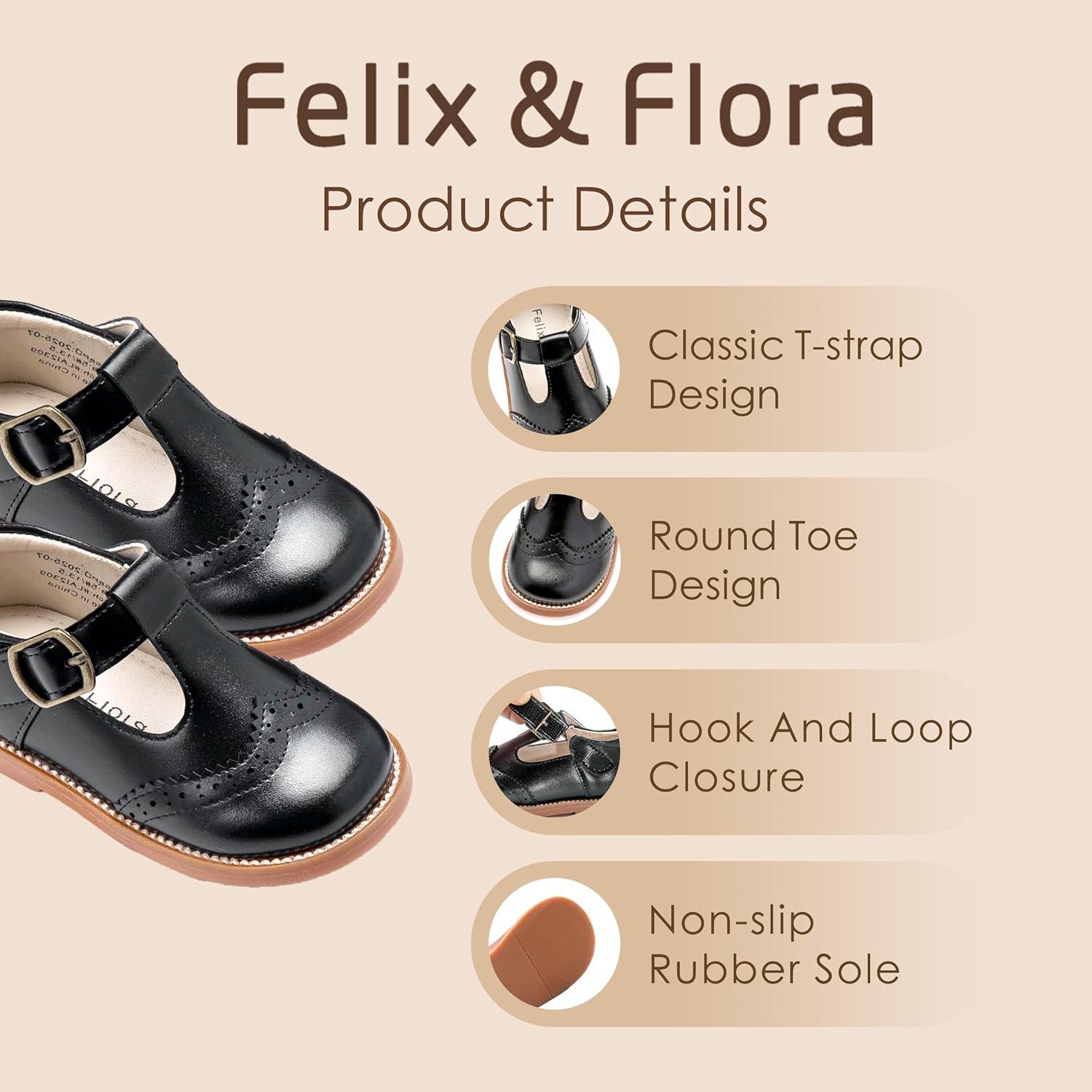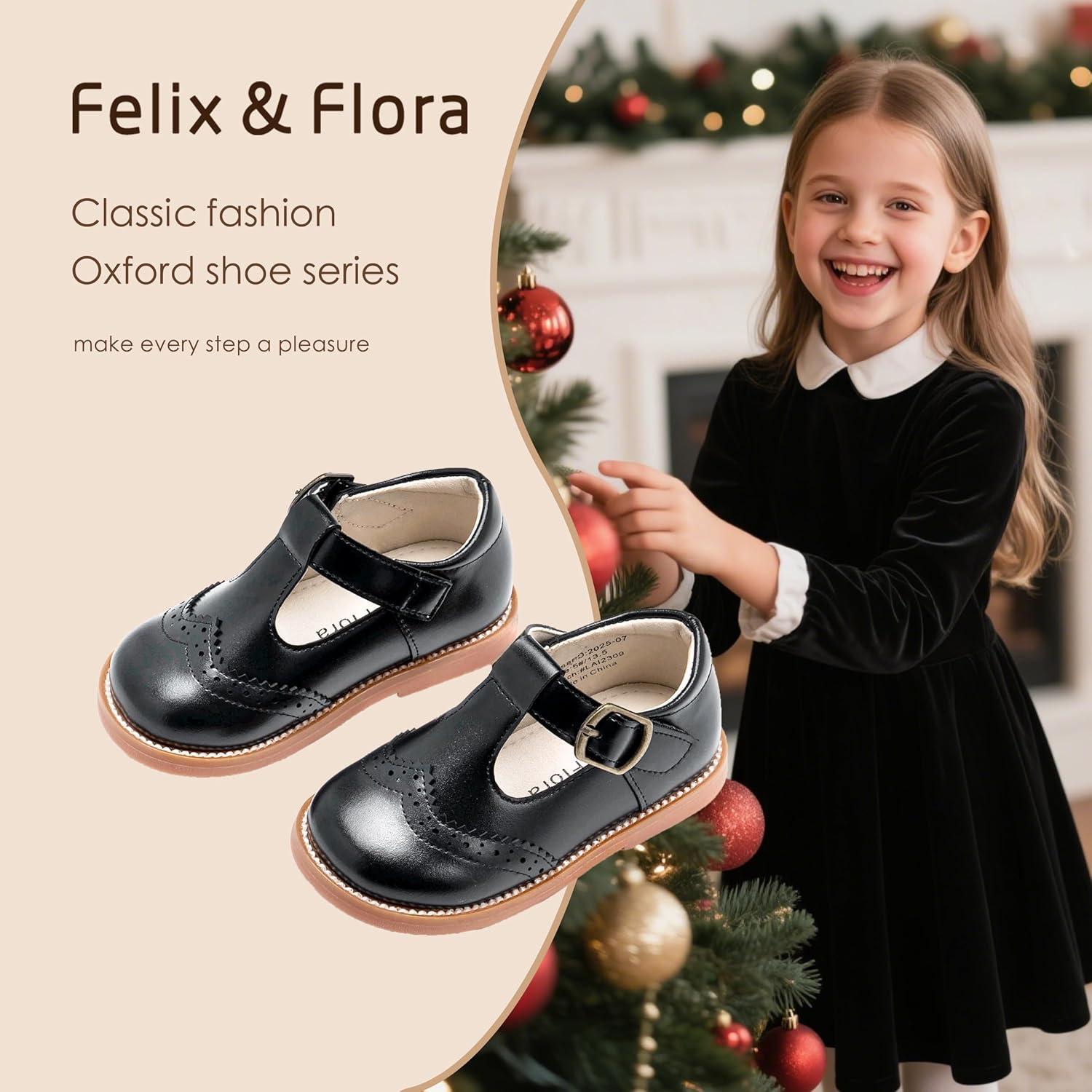 Felix & Flora Toddler Little Girl Mary Jane Dress Shoes – Ballet Flats for Girl Party School Shoes(B437-black)