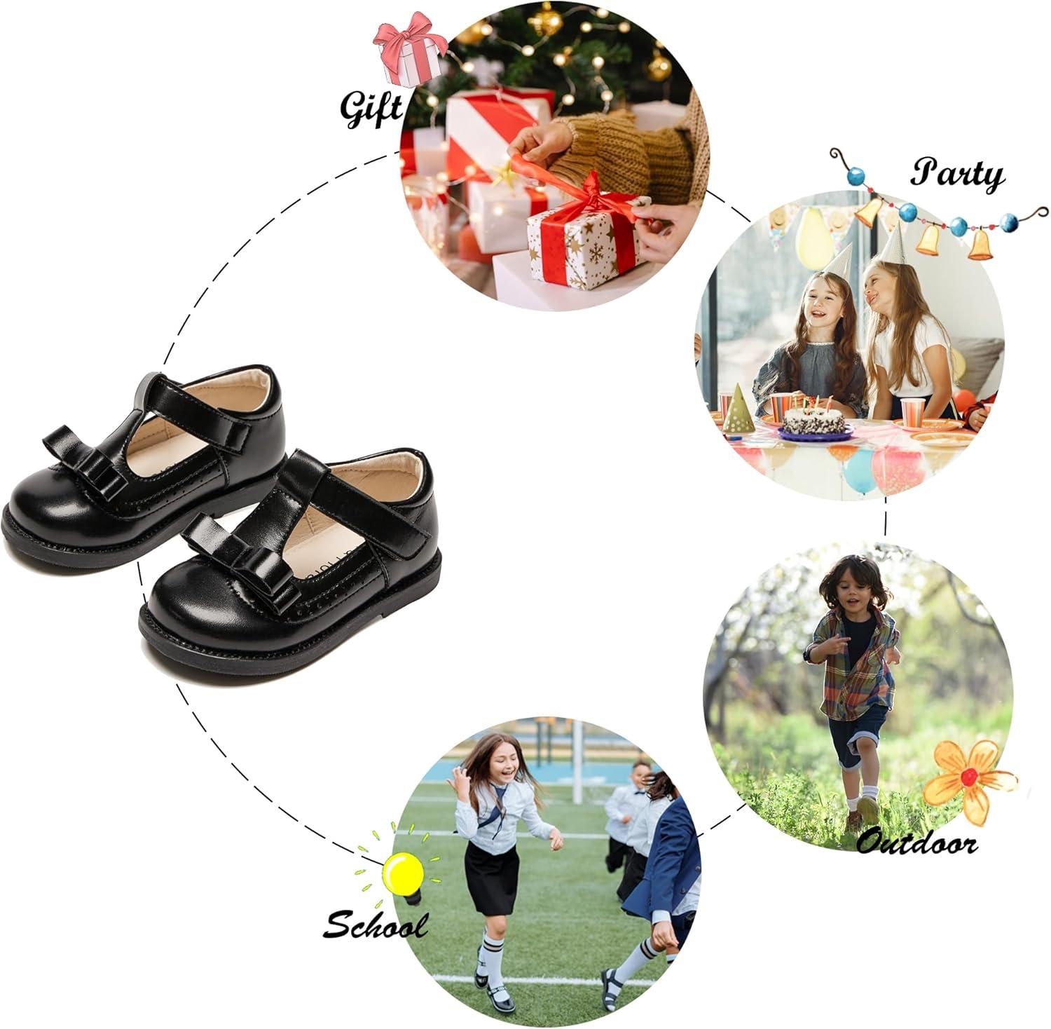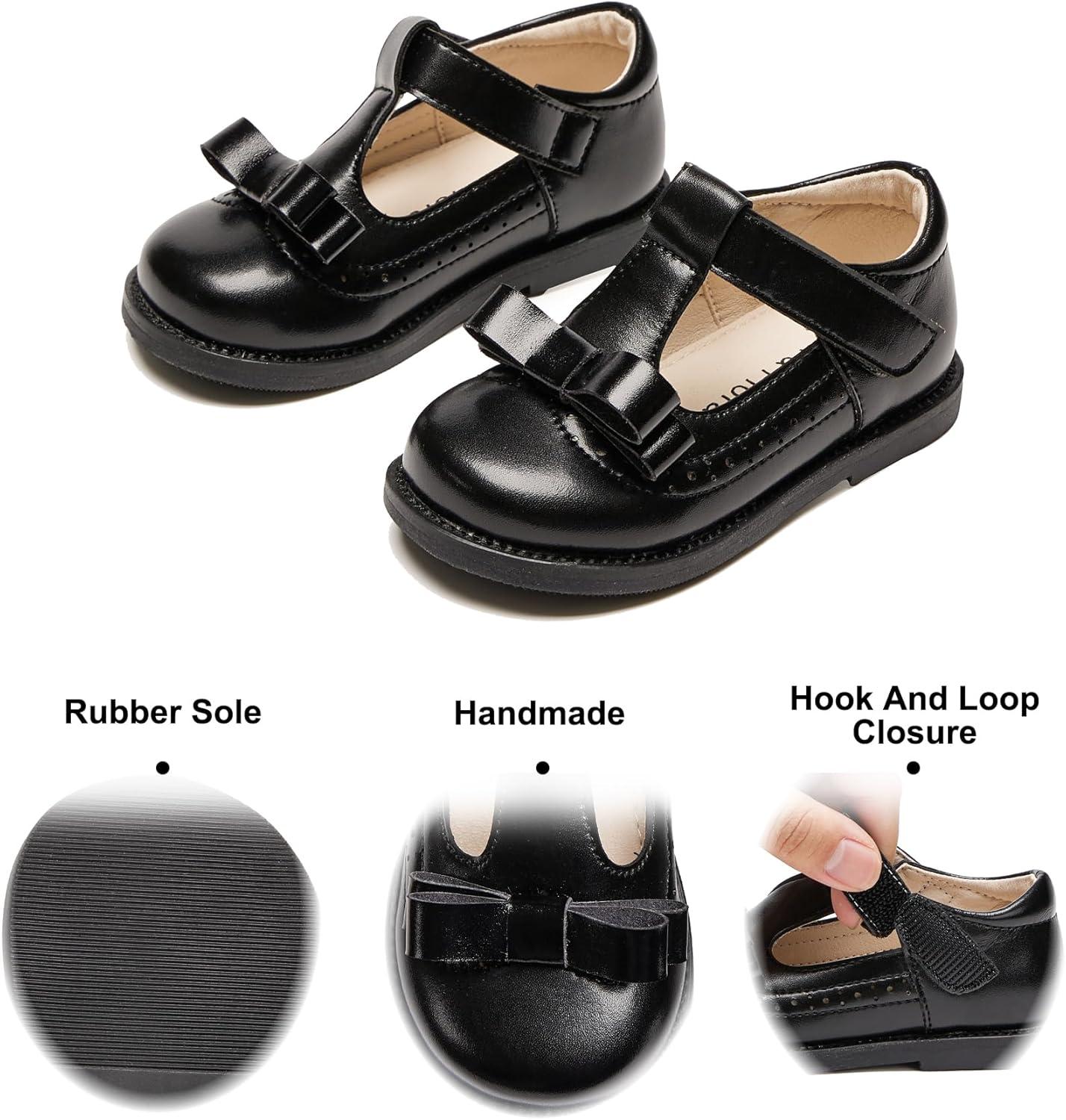 Felix & Flora Toddler Little Girl Princess Dress Shoes-Mary Jane Flats for Girl Party School Shoes(B413-black)