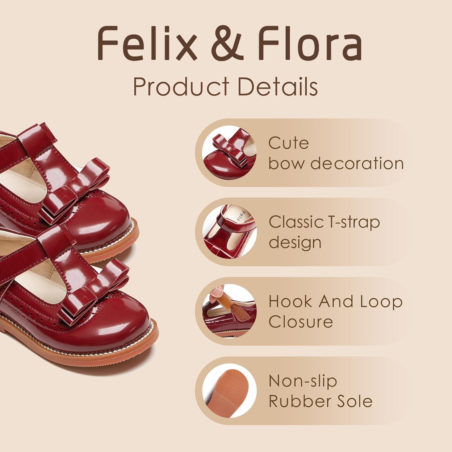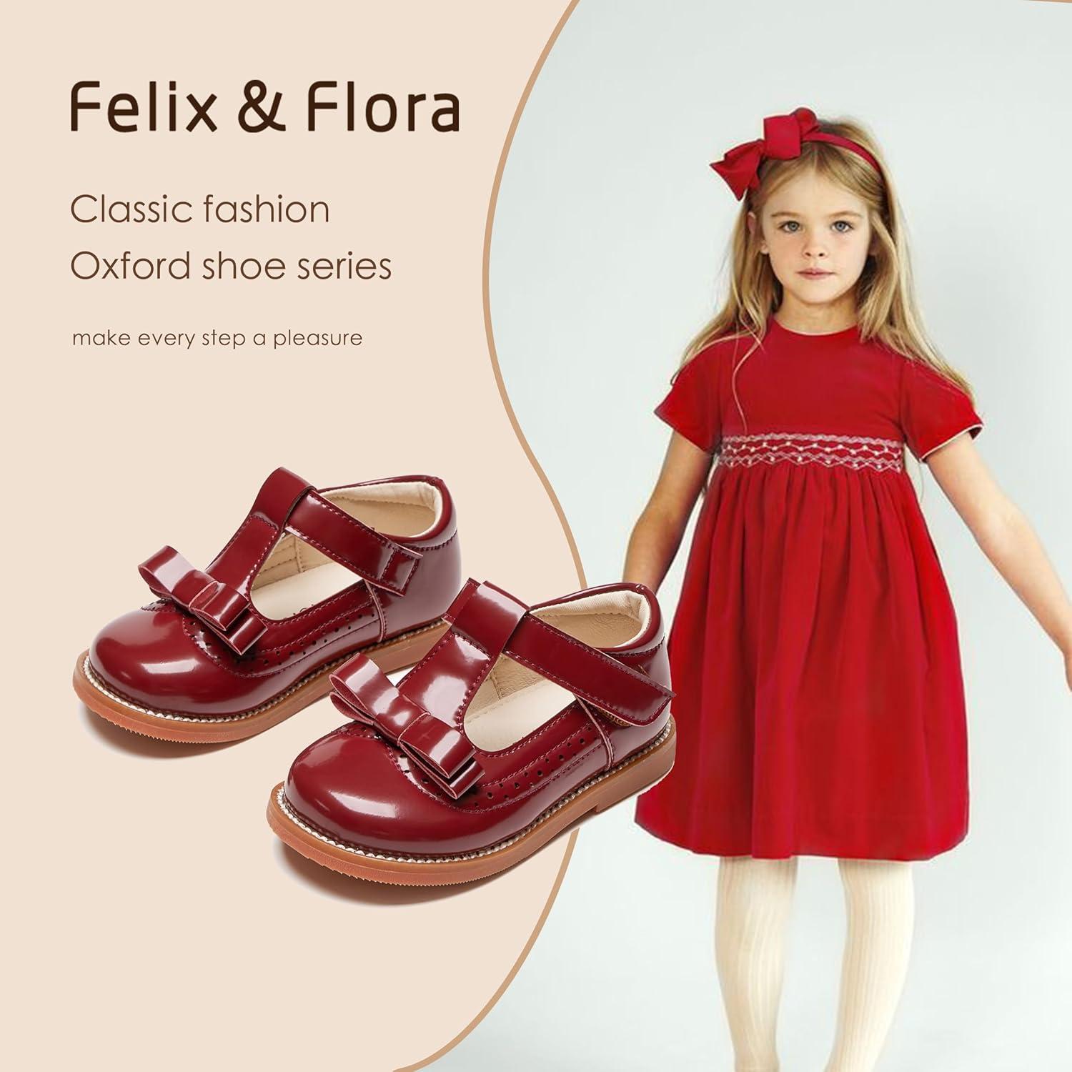 Felix & Flora Toddler Little Girl Princess Dress Shoes-Mary Jane Flats for Girl Party School Shoes(B413-burgundy)