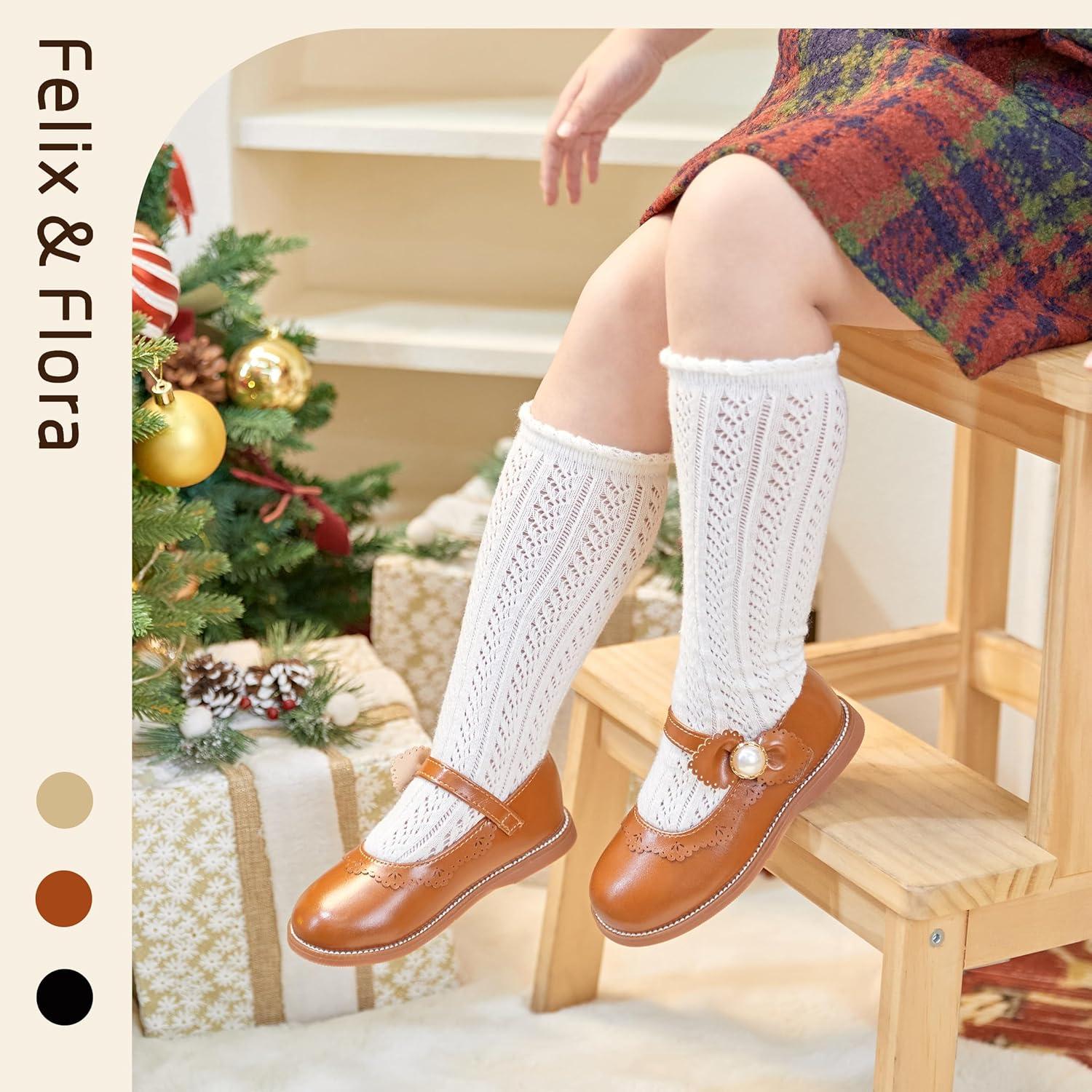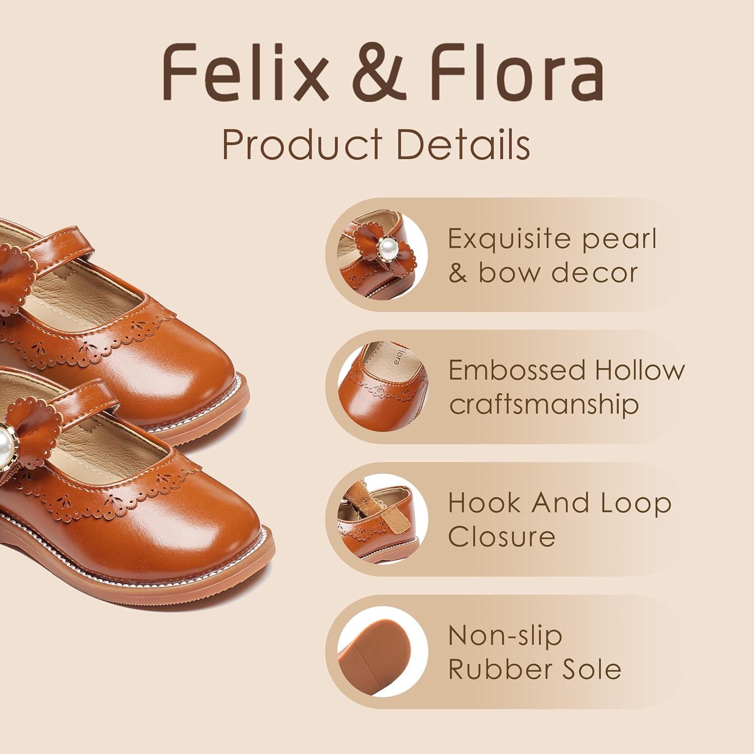 Felix & Flora Toddler Little Girl Princess Dress Shoes-Mary Jane Flats for Girl Party School Shoes(B417-brown)