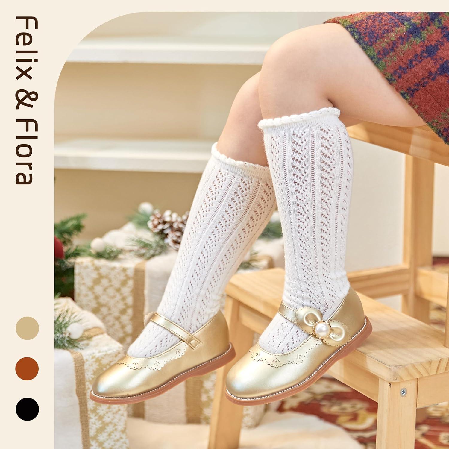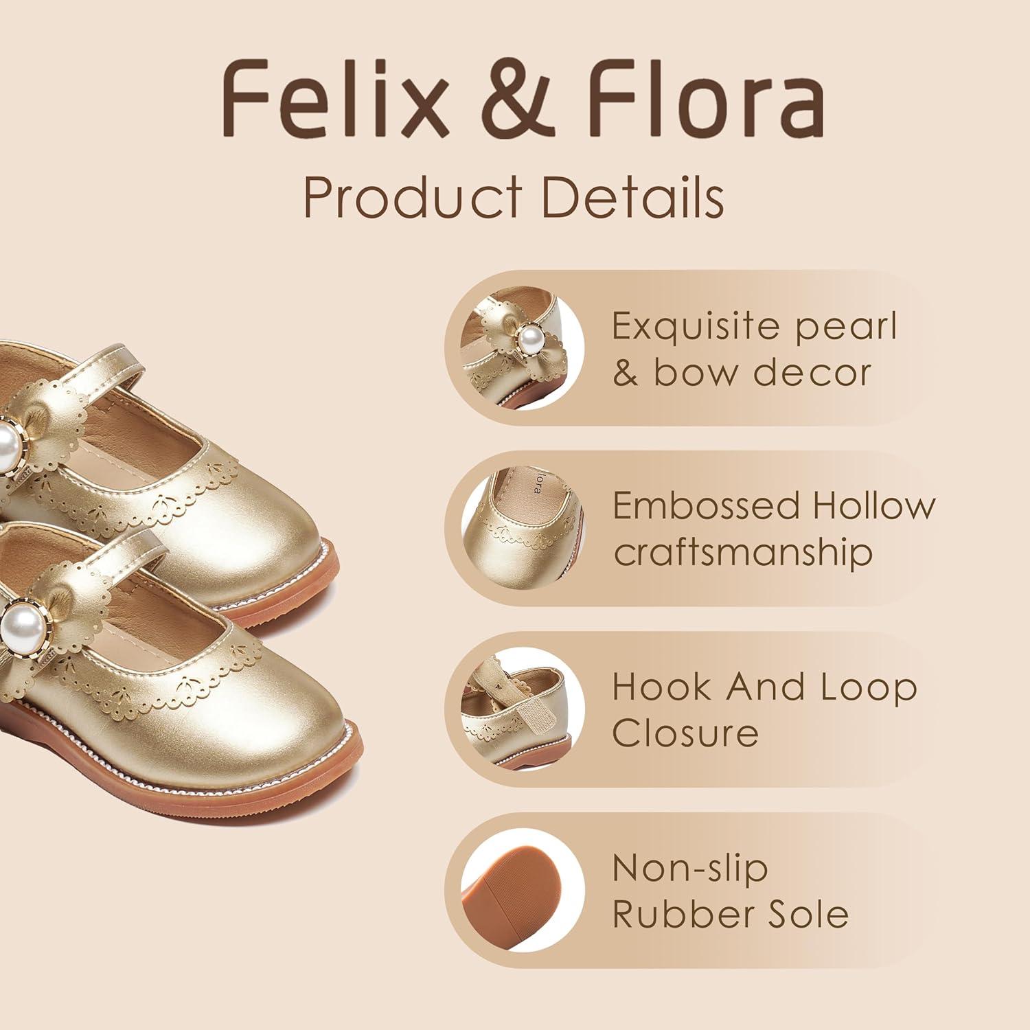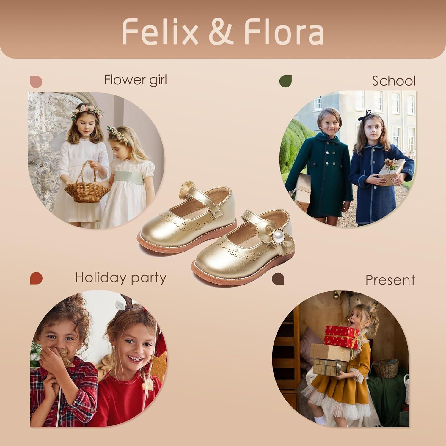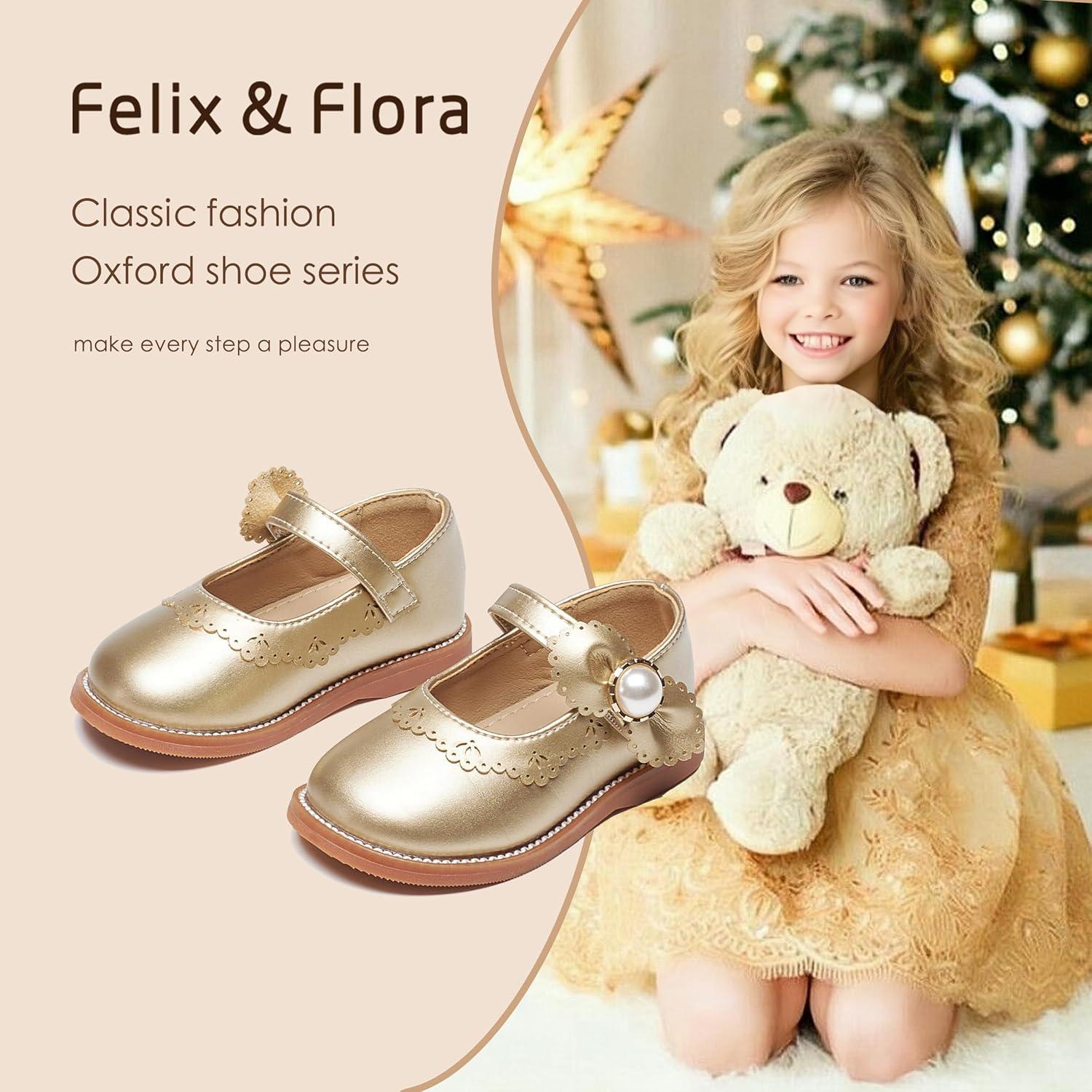 Felix & Flora Toddler Little Girl Princess Dress Shoes-Mary Jane Flats for Girl Party School Shoes(B417-gold)