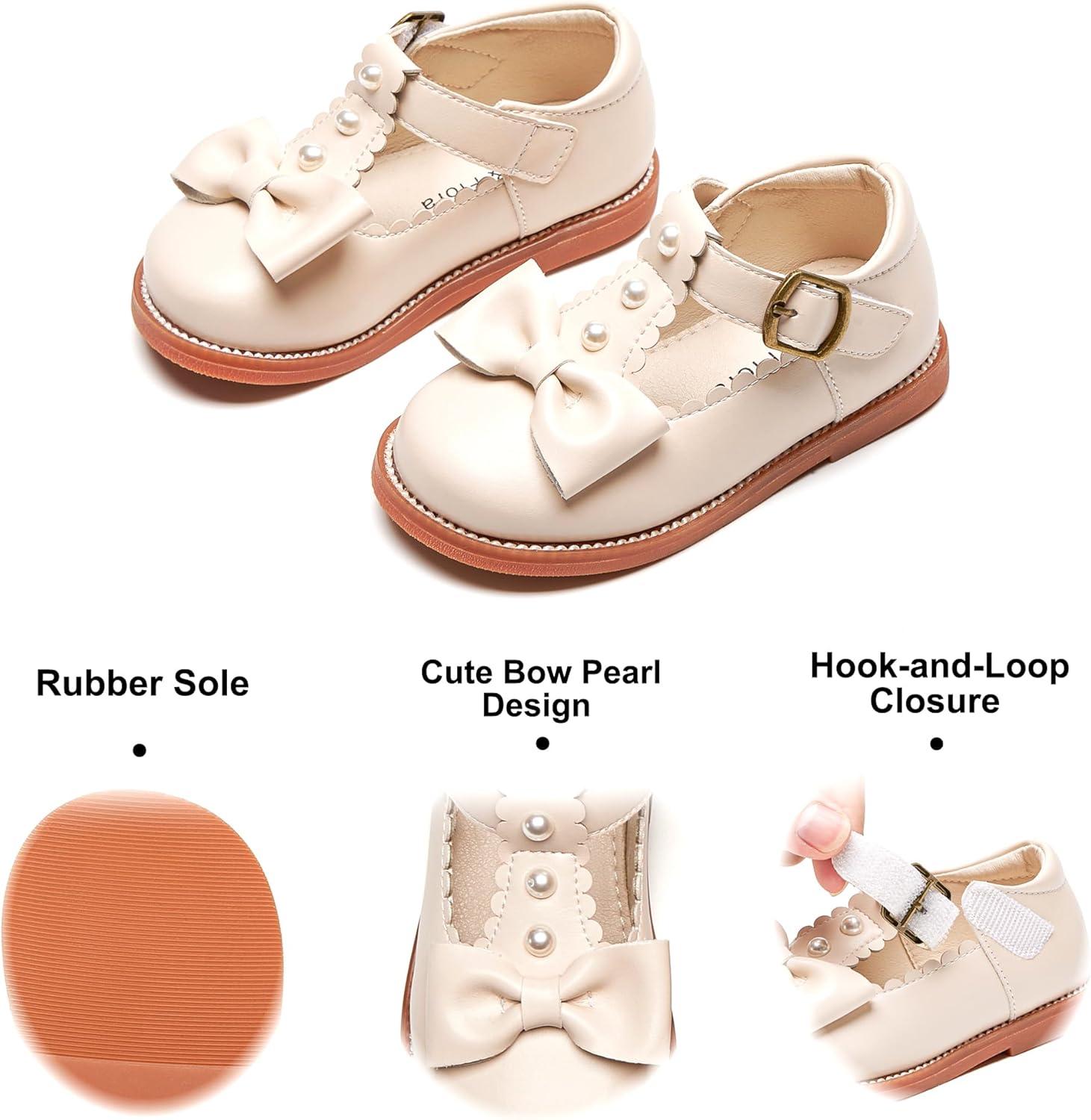 Felix & Flora Toddler Little Girl Princess Dress Shoes-Mary Jane Flats for Girl Party School Shoes(B420-beige)