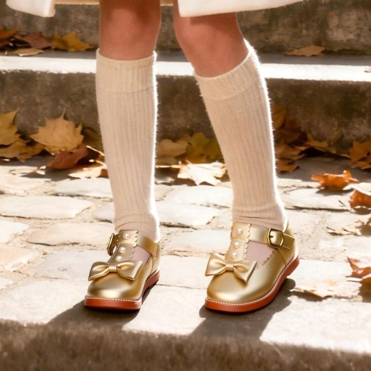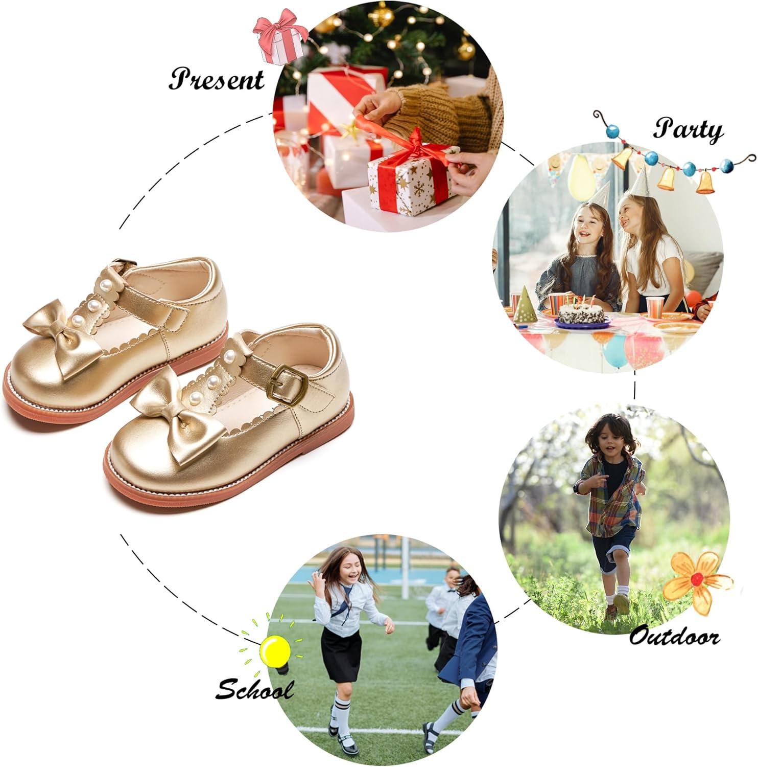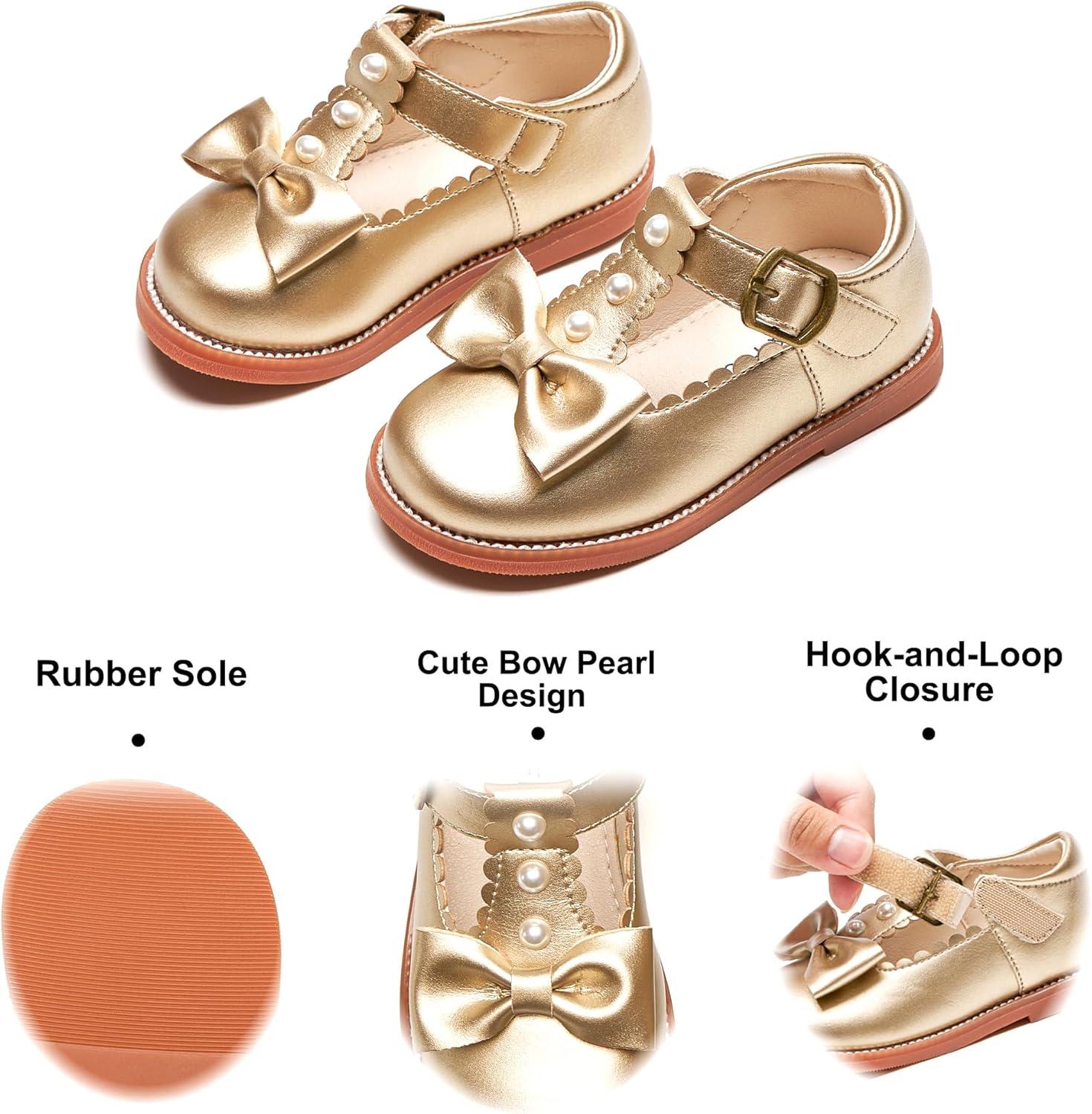 Felix & Flora Toddler Little Girl Princess Dress Shoes-Mary Jane Flats for Girl Party School Shoes(B420-gold)