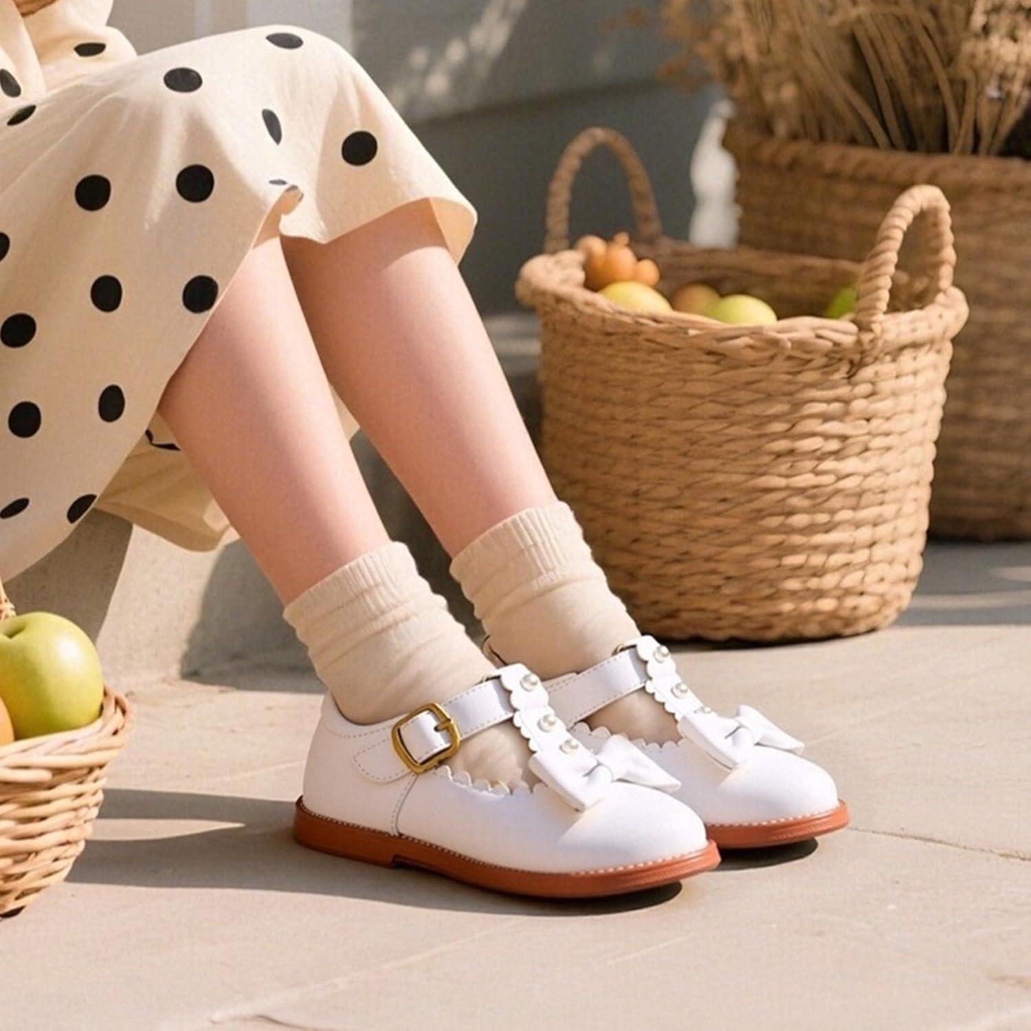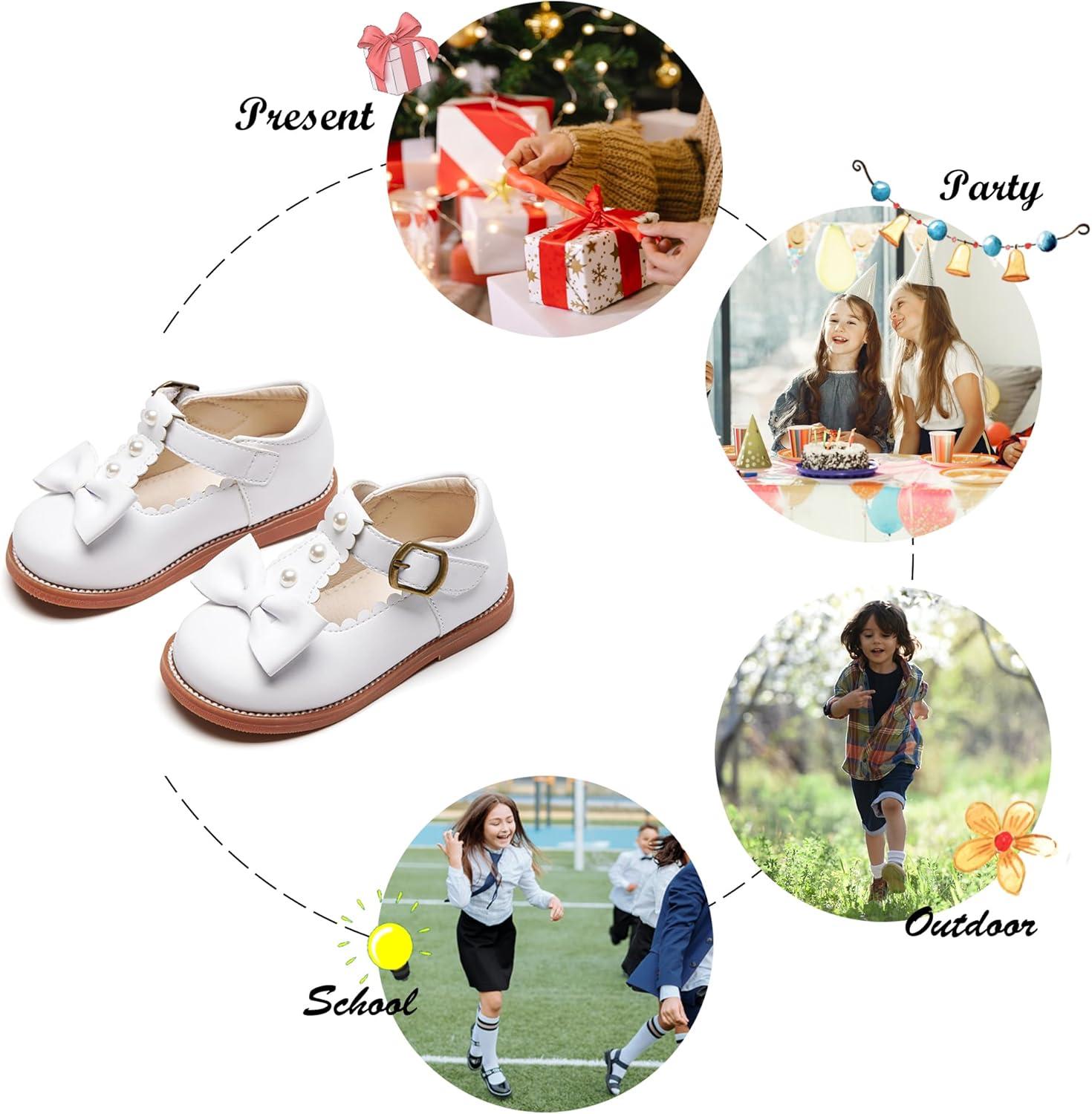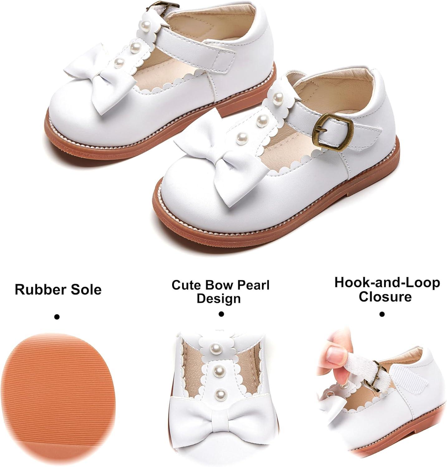 Felix & Flora Toddler Little Girl Princess Dress Shoes-Mary Jane Flats for Girl Party School Shoes(B420-white)