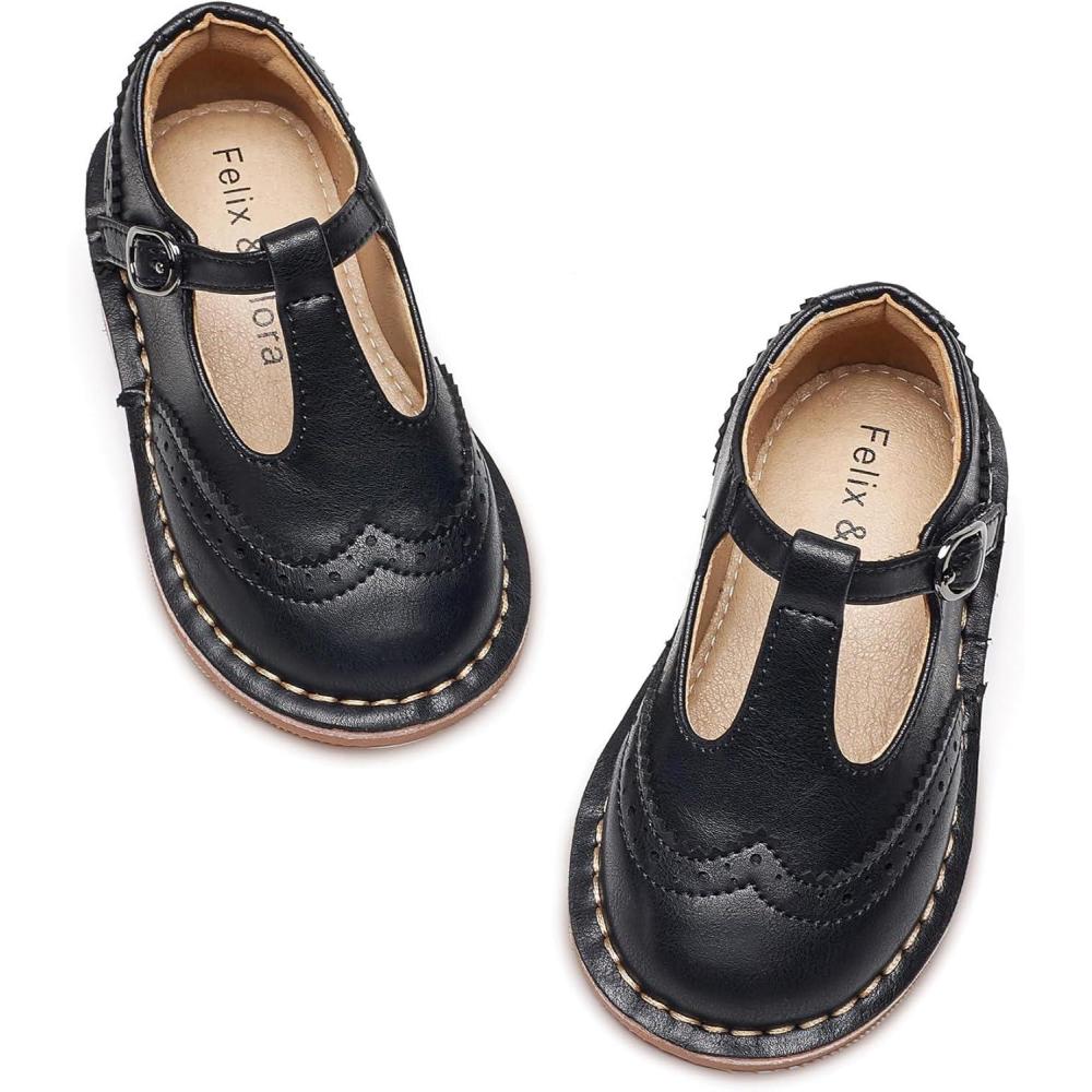 Felix & Flora Toddler Little Girl Princess Dress Shoes-Mary Jane Flats for Girl Party School Shoes(B422-black)