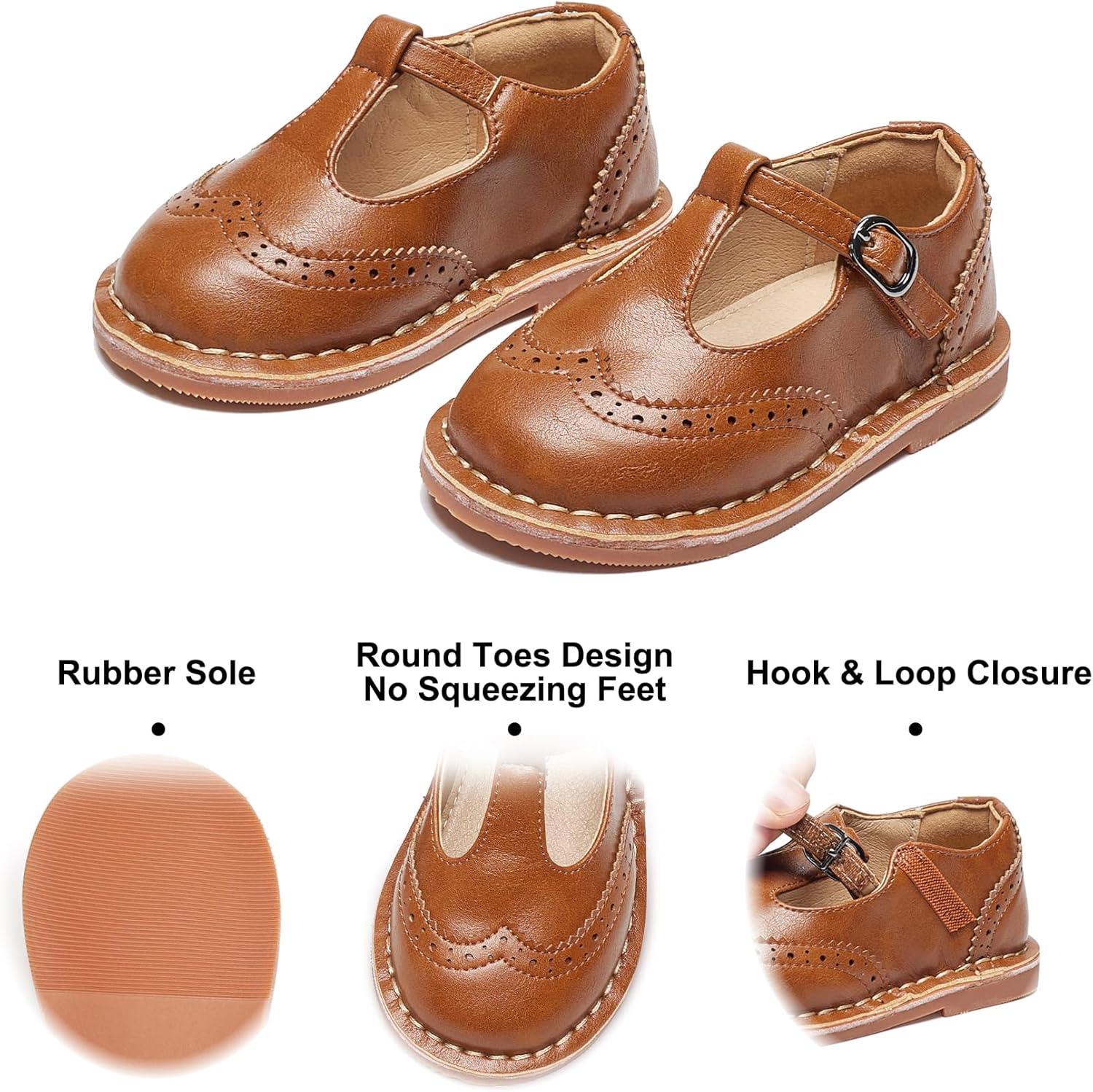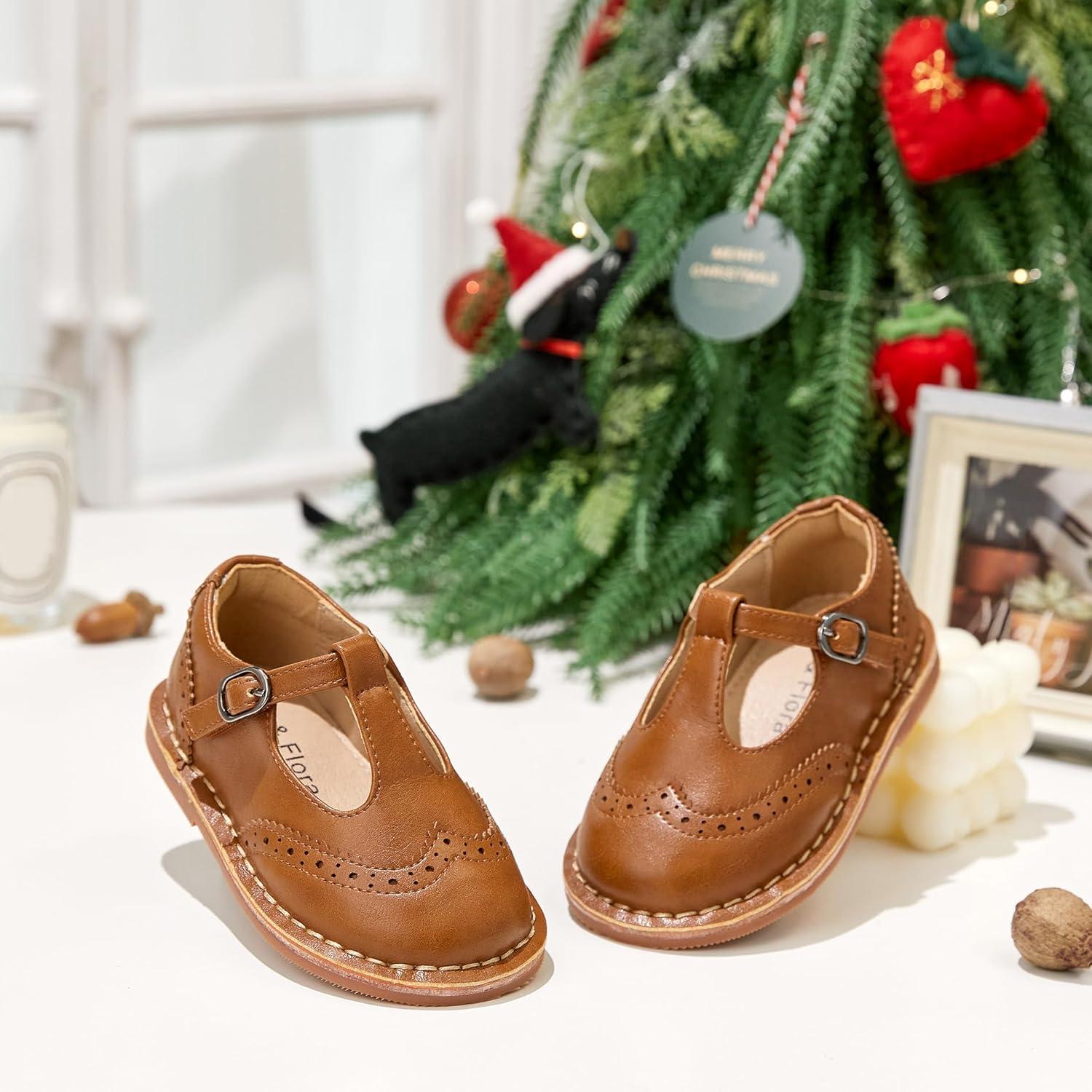 Felix & Flora Toddler Little Girl Princess Dress Shoes-Mary Jane Flats for Girl Party School Shoes(B422-brown)