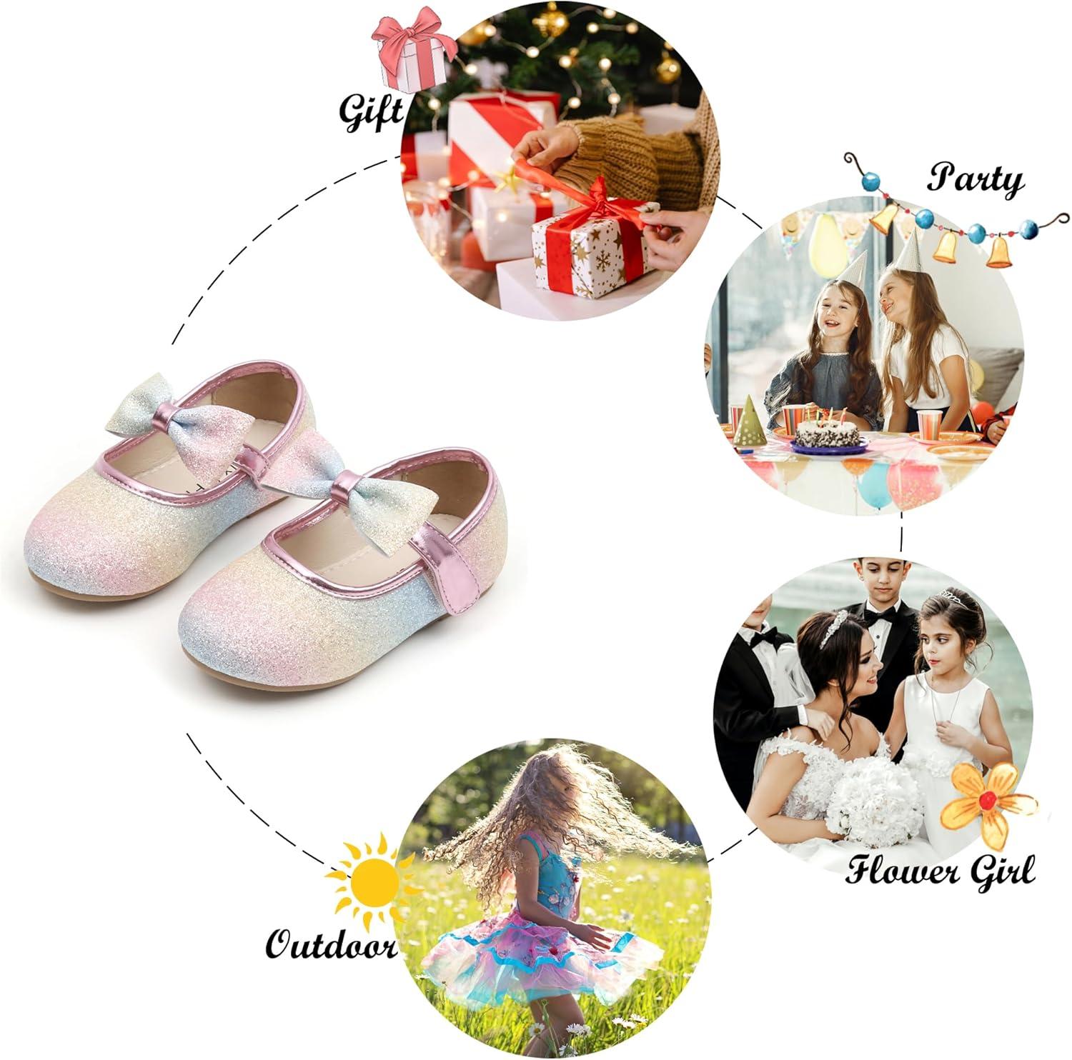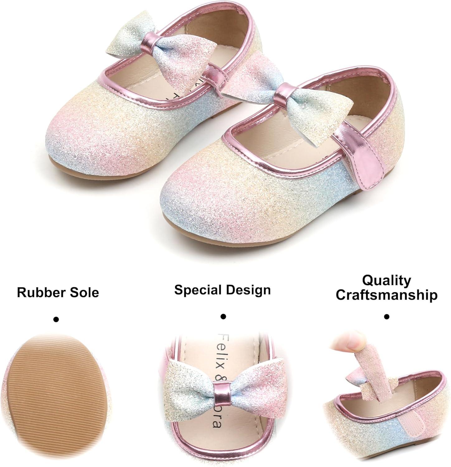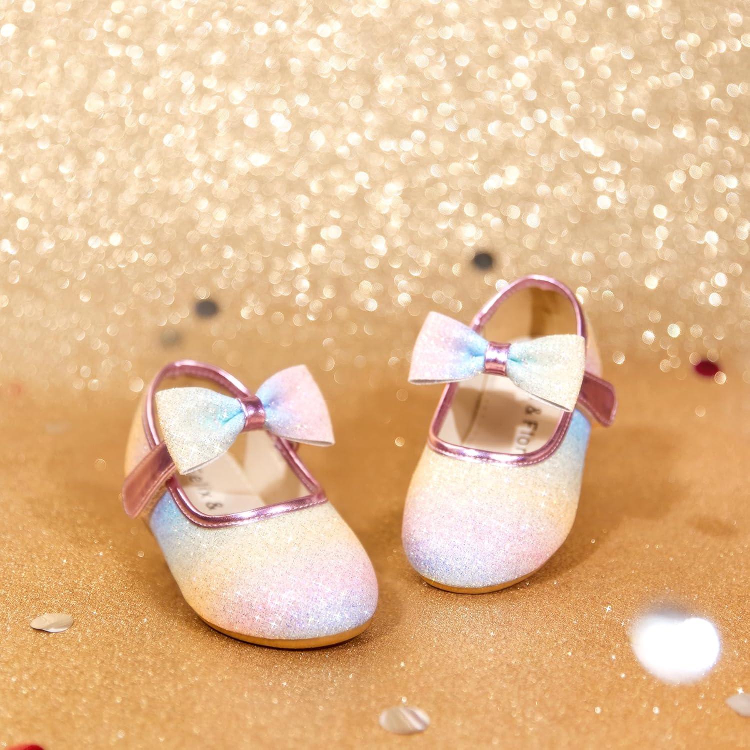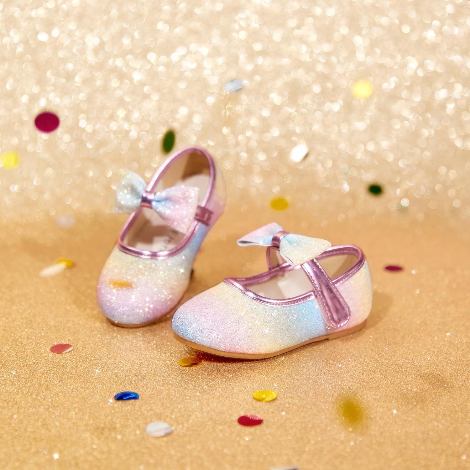 Felix & Flora Toddler Little Girls Dress Shoes – Flower Girls Mary Jane Flats Ballet Shoes Party Wedding(B810-gl Rainbow)
