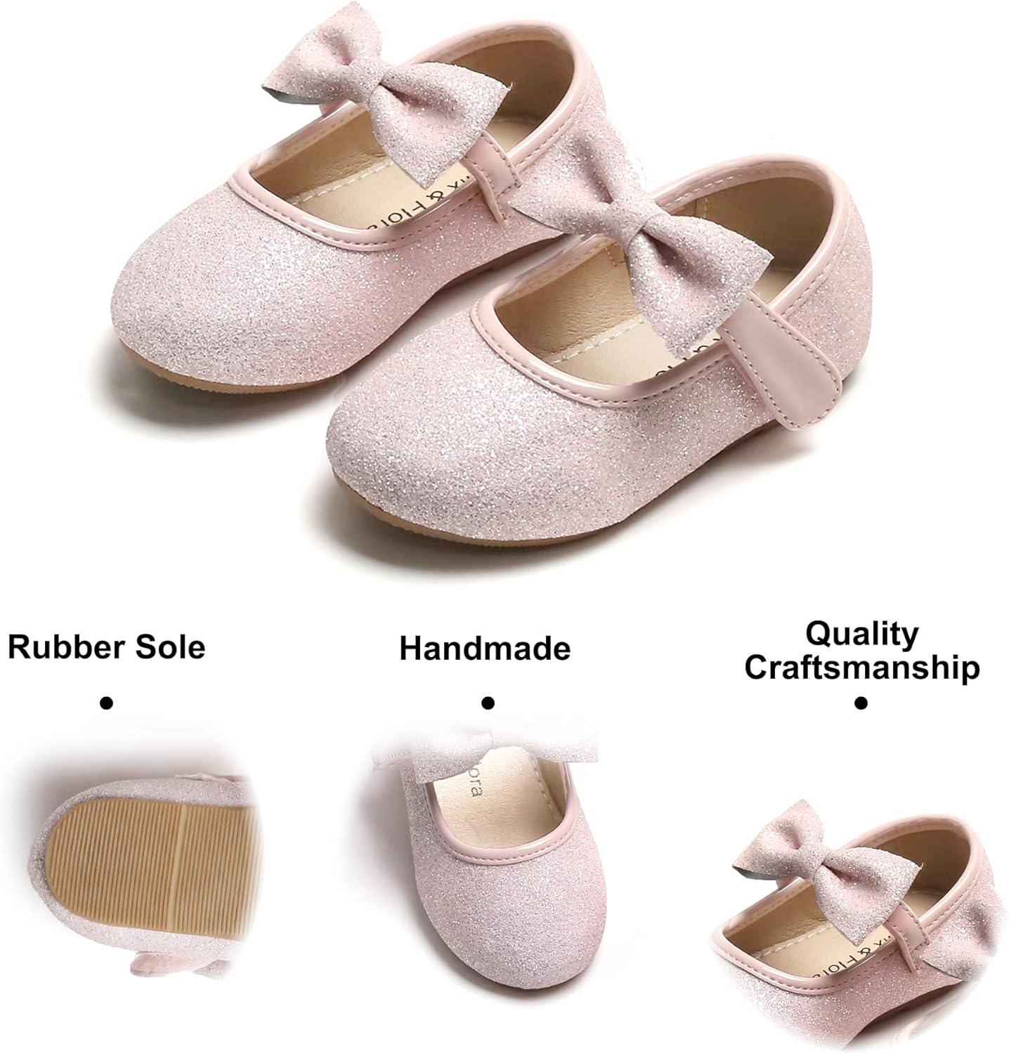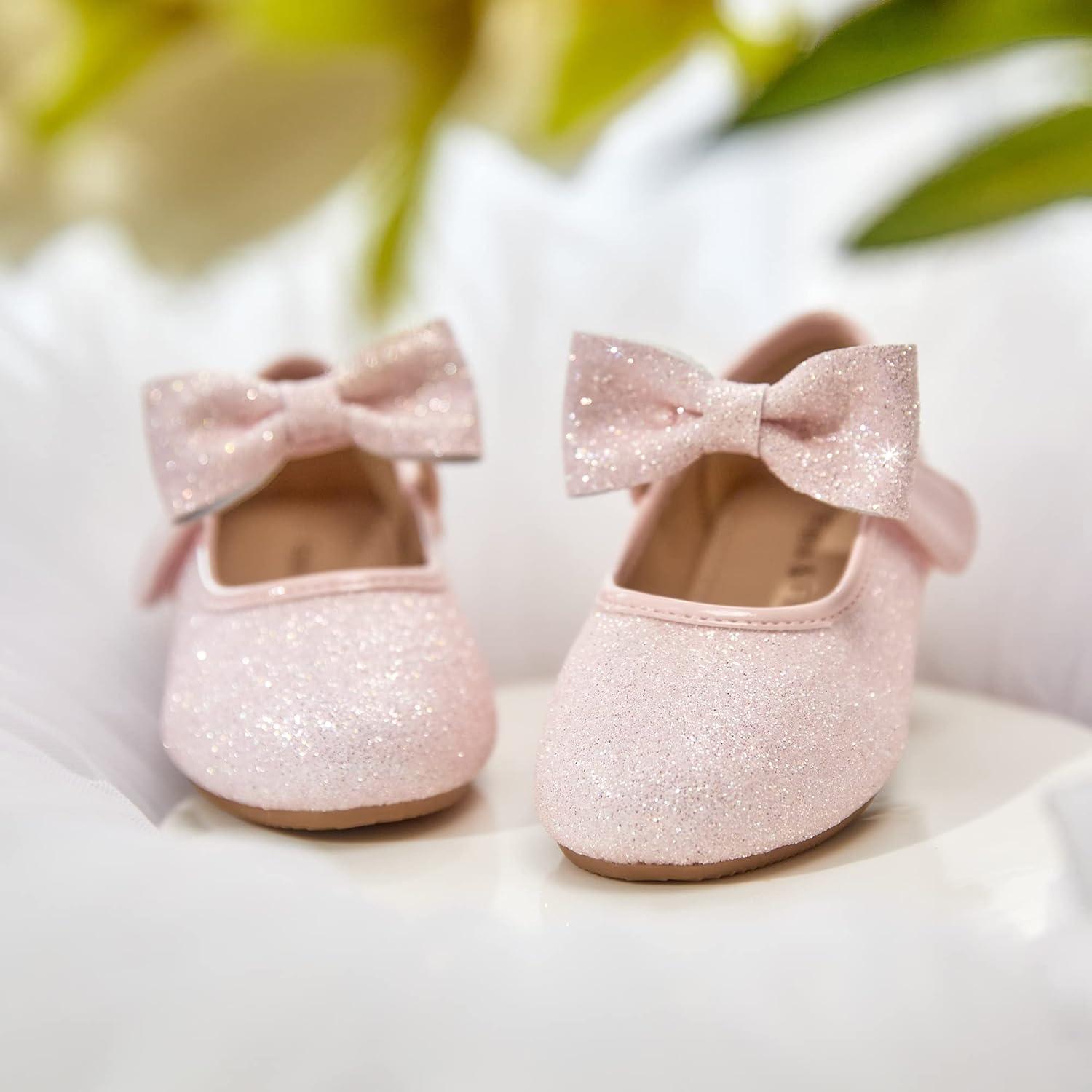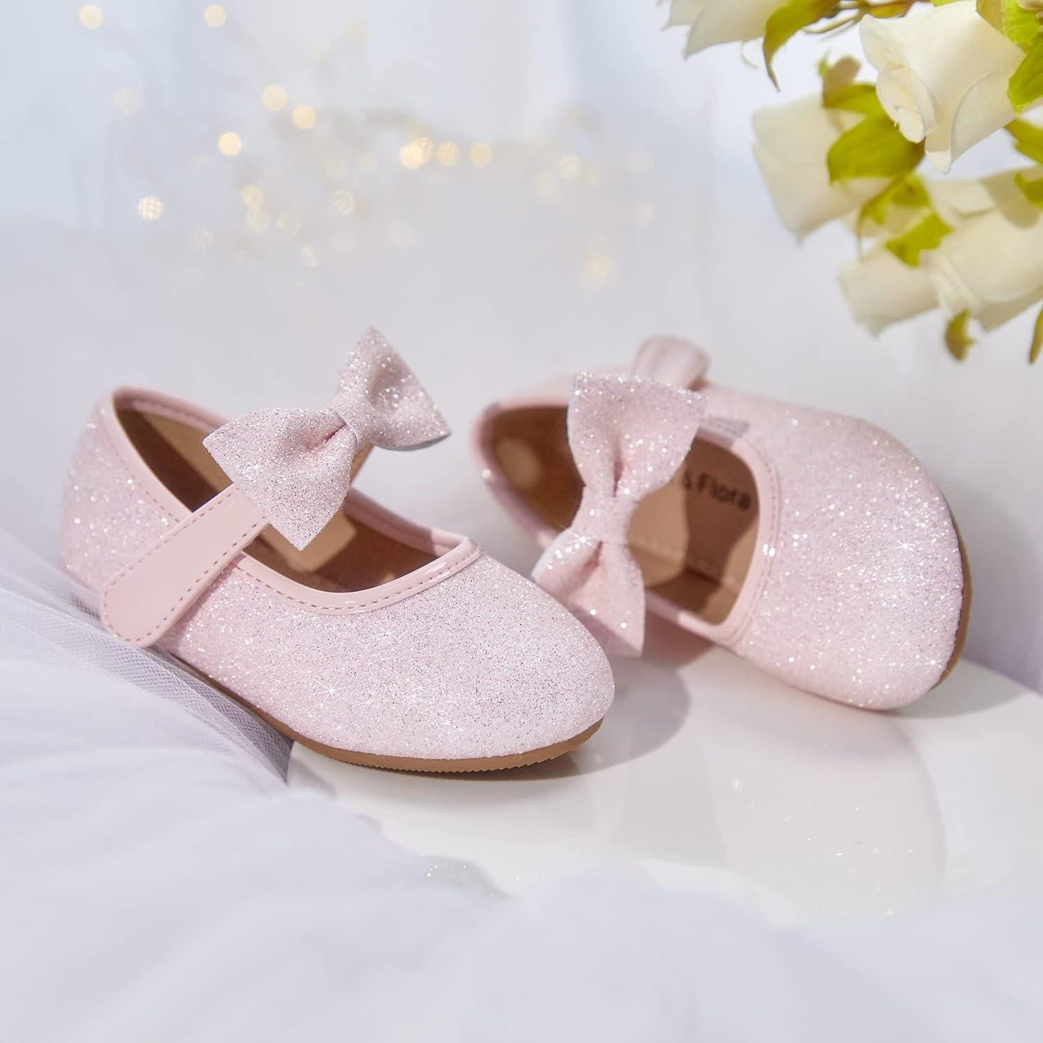 Felix & Flora Toddler Little Girls Dress Shoes – Flower Girls Mary Jane Flats Ballet Shoes Party Wedding(B810-glitter Pink)
