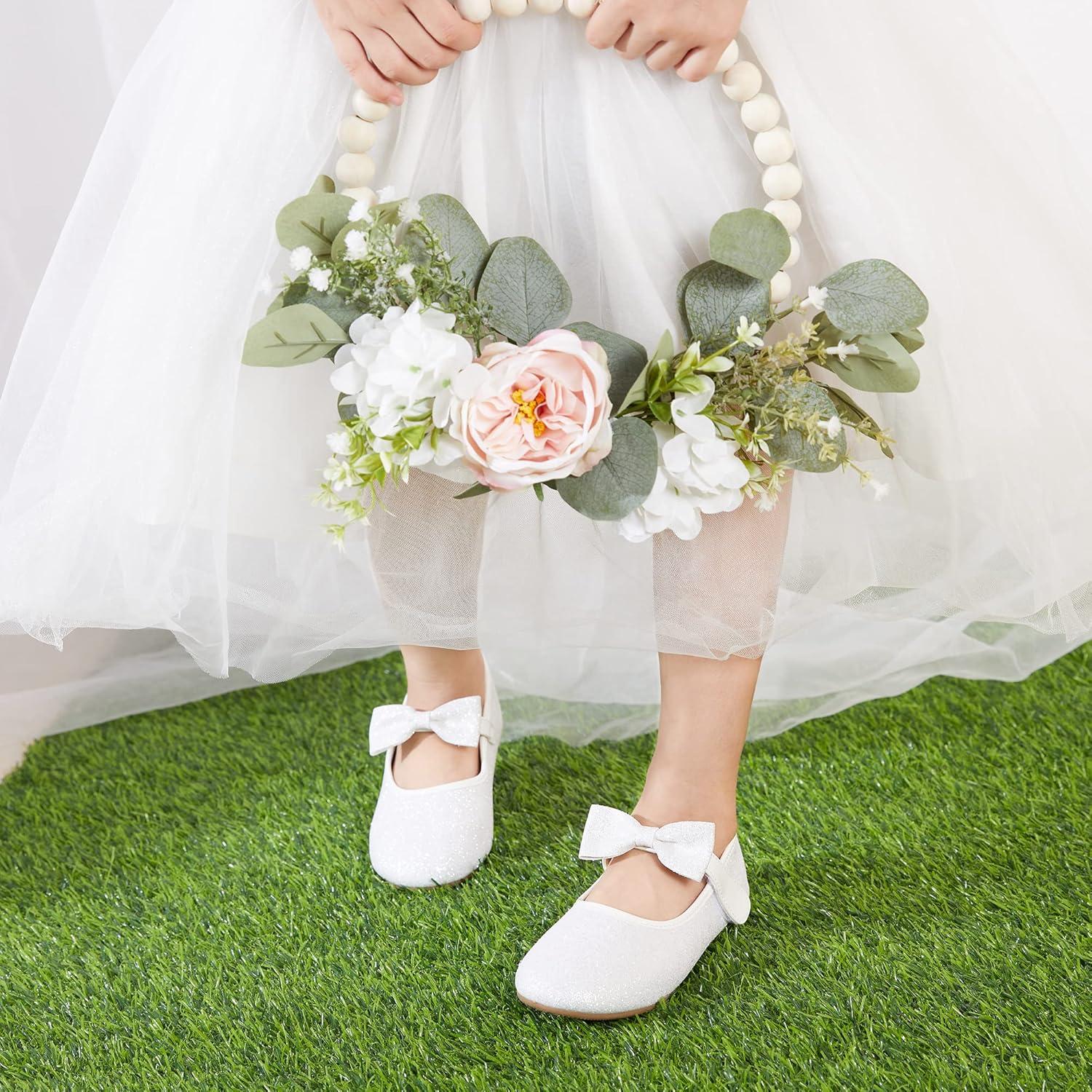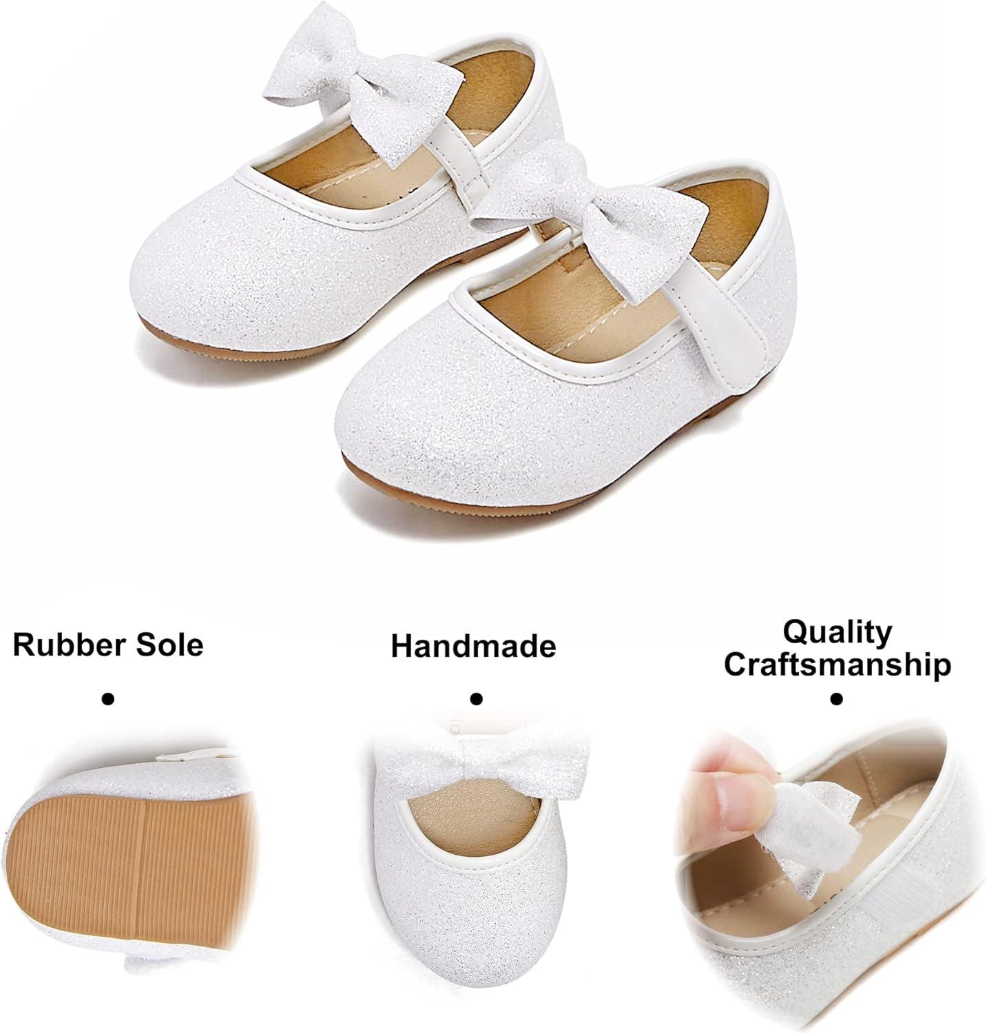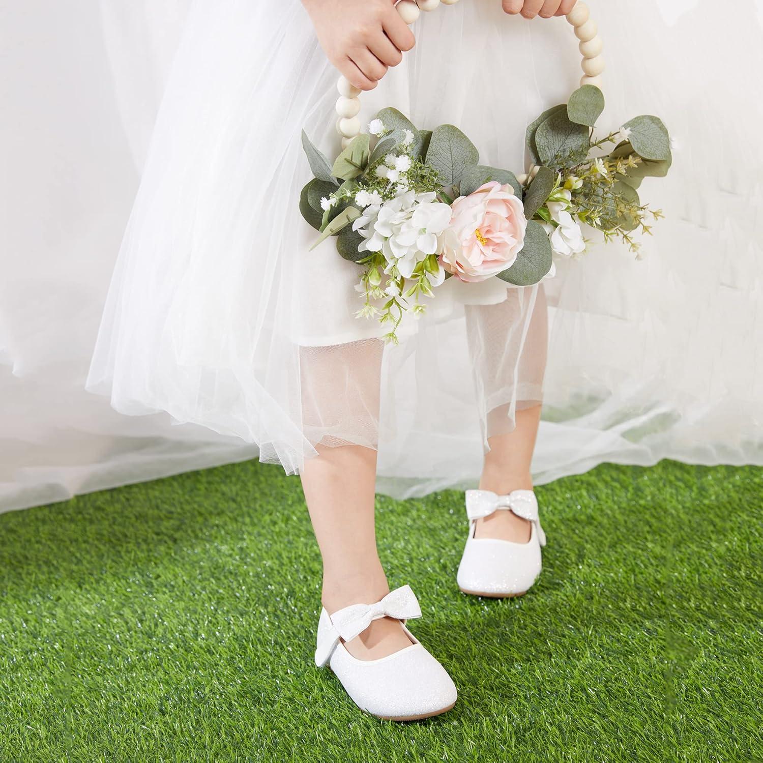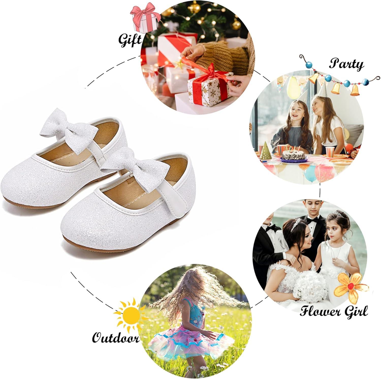 Felix & Flora Toddler Little Girls Dress Shoes – Flower Girls Mary Jane Flats Ballet Shoes Party Wedding(B810-glitter White)