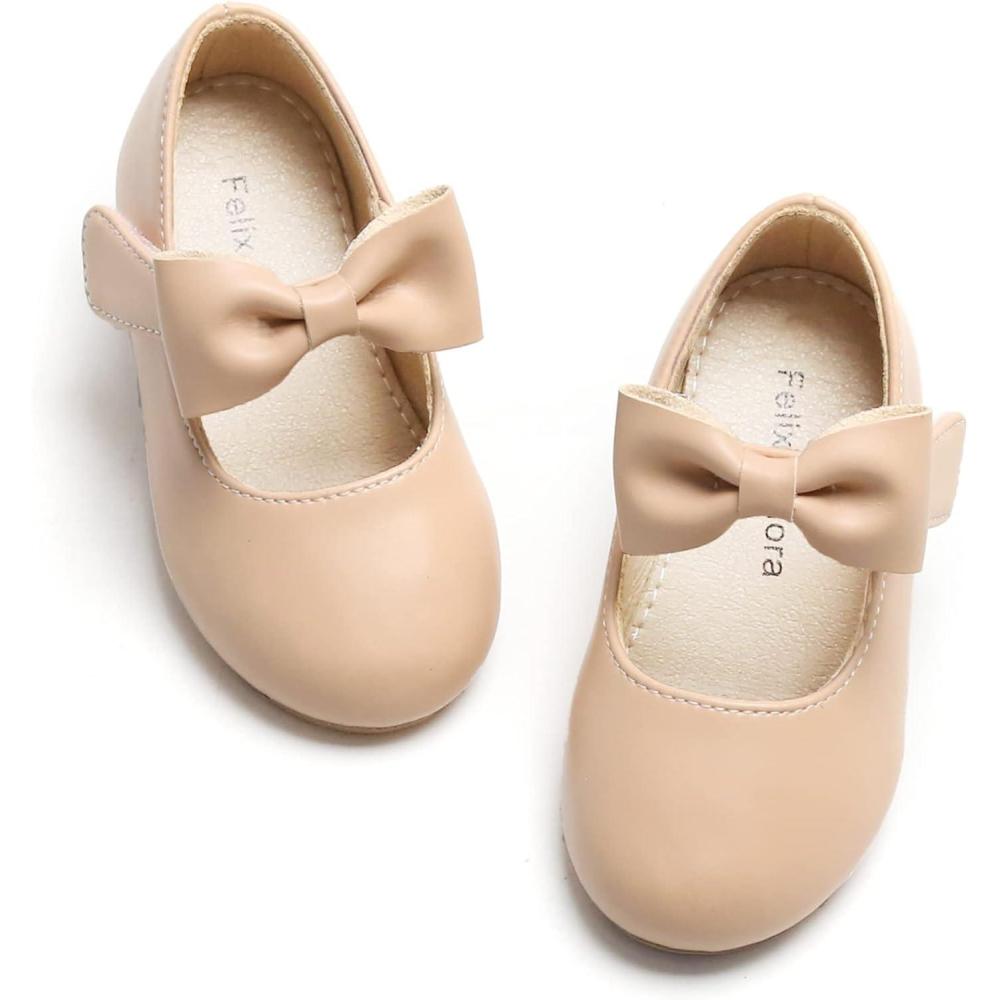 Felix & Flora Toddler Little Girls Dress Shoes – Flower Girls Mary Jane Flats Ballet Shoes Party Wedding(B810-nude)