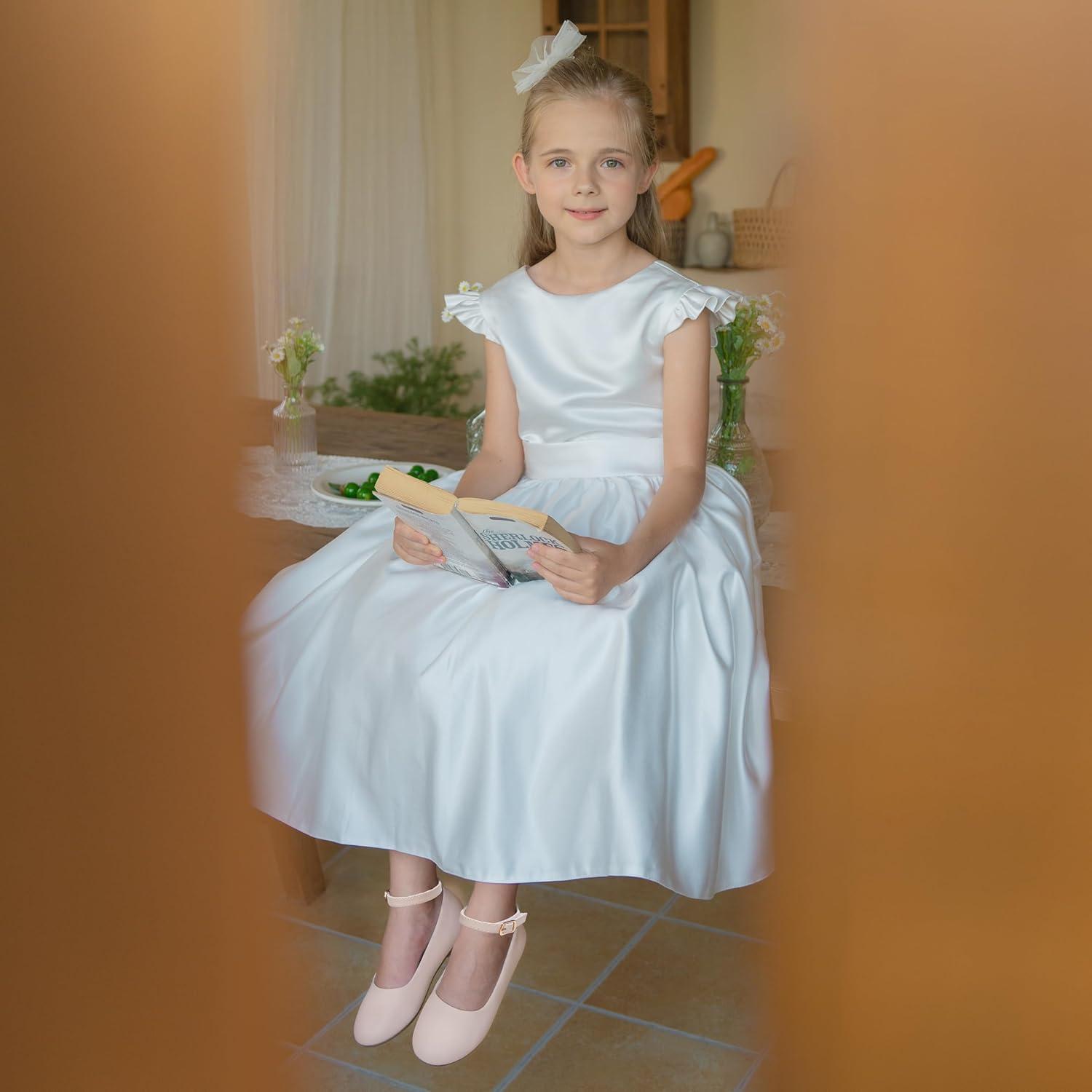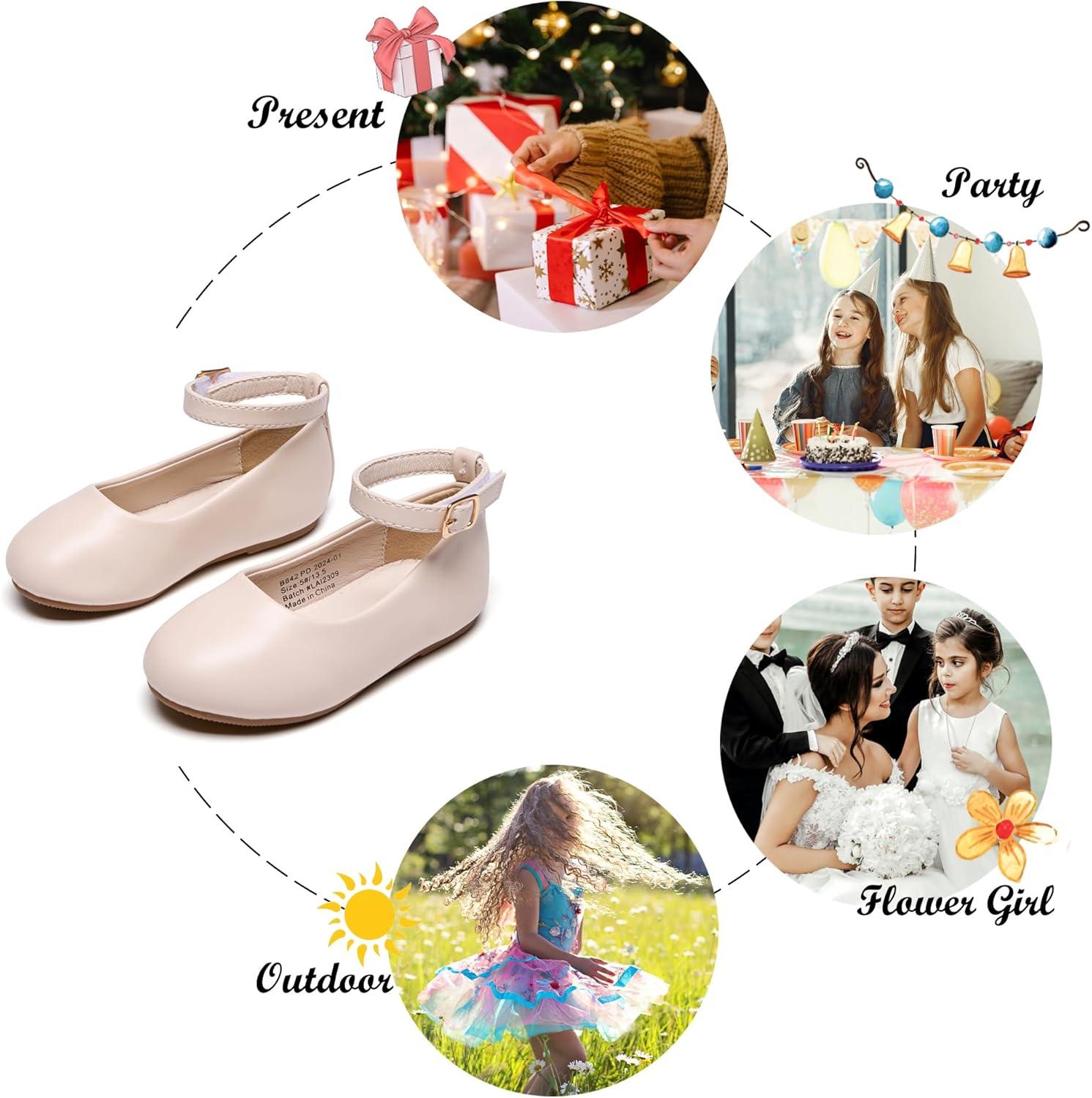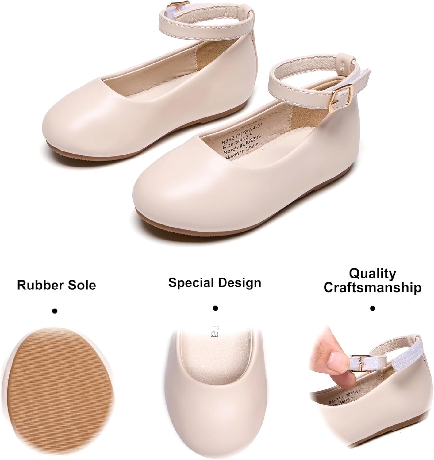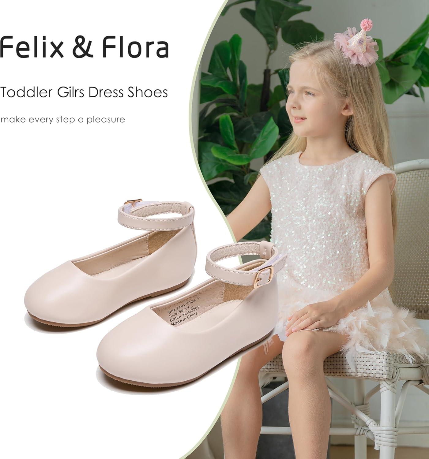 Felix & Flora Toddler Little Girls Dress Shoes – Flower Girls Mary Jane Flats Ballet Shoes Party Wedding(B892-fl Beige)