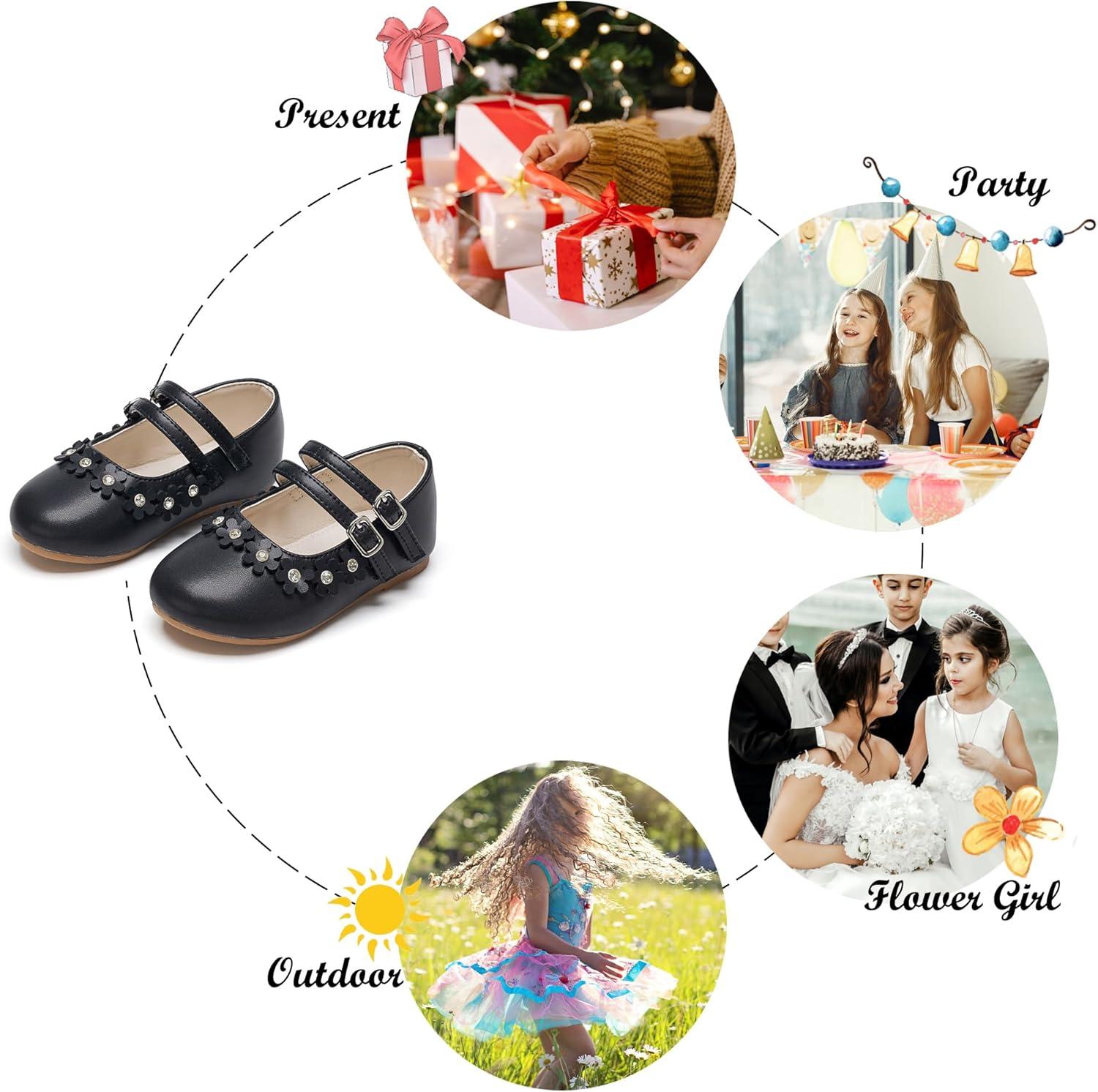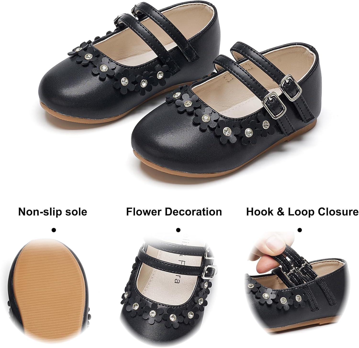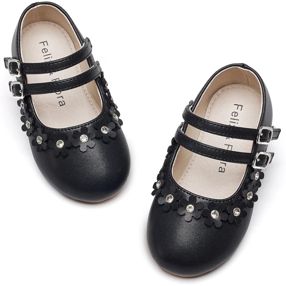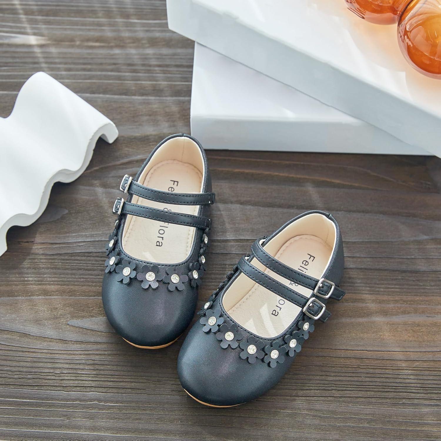 Felix & Flora Toddler Little Girls Dress Shoes – Flower Girls Mary Jane Flats Ballet Shoes Party Wedding(B893-black)