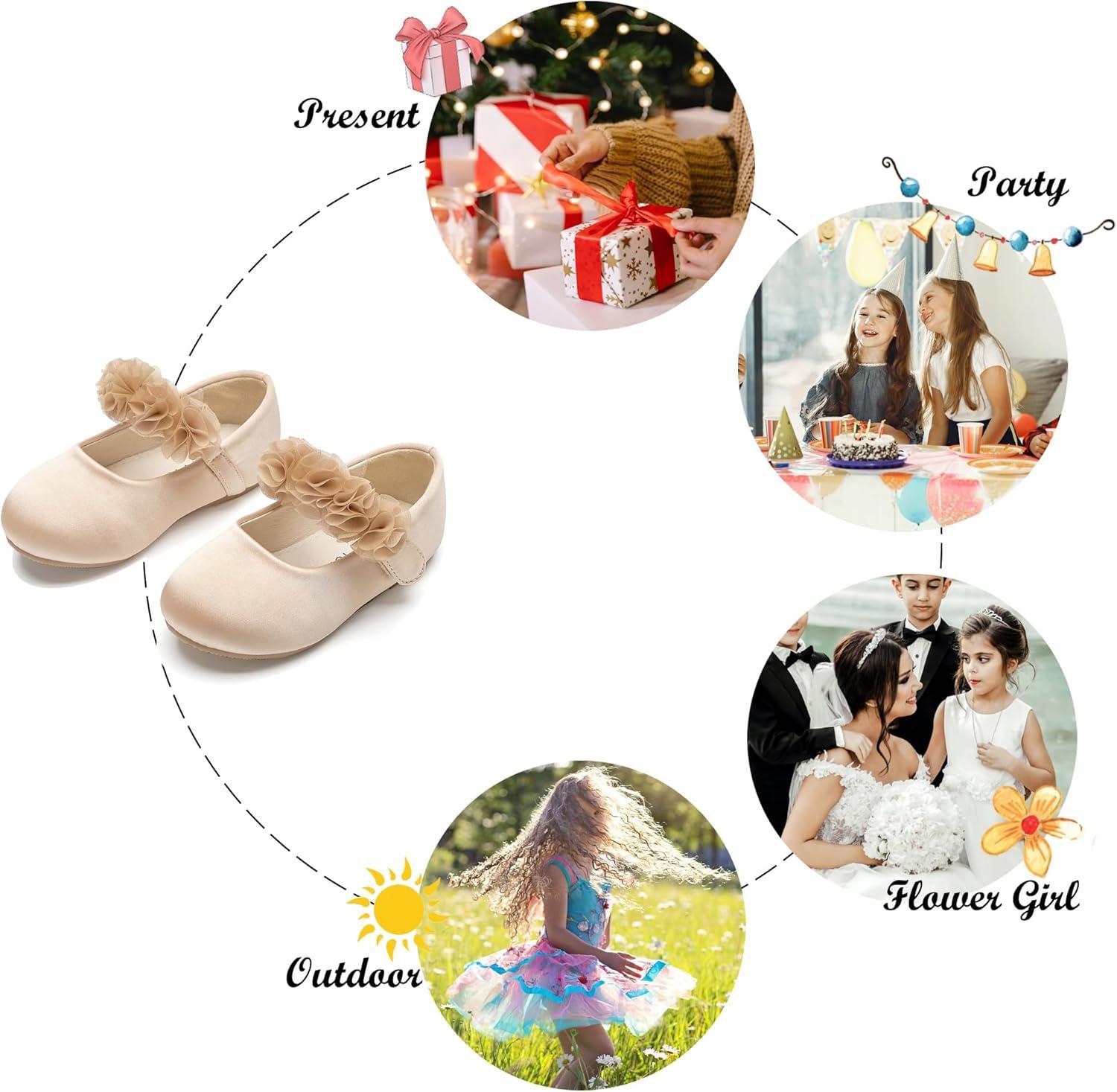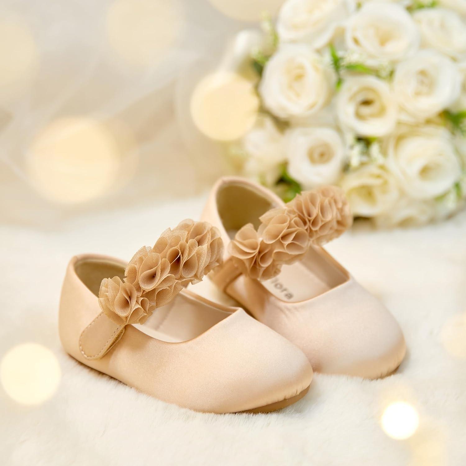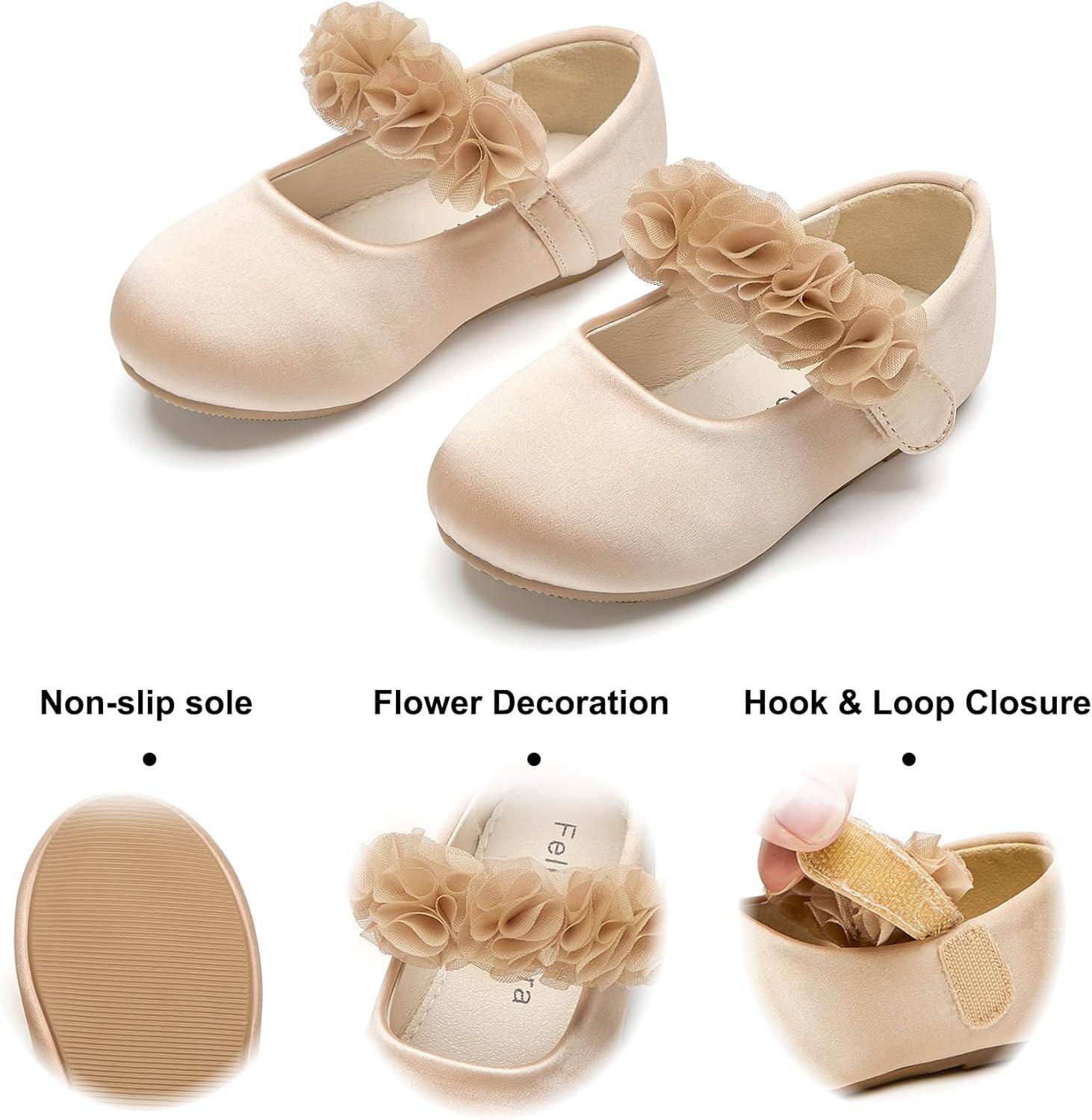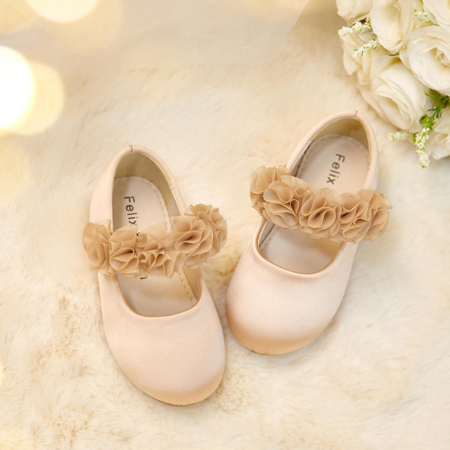 Felix & Flora Toddler Little Girls Dress Shoes – Flower Girls Mary Jane Flats Ballet Shoes Party Wedding(B894-dark Nude)